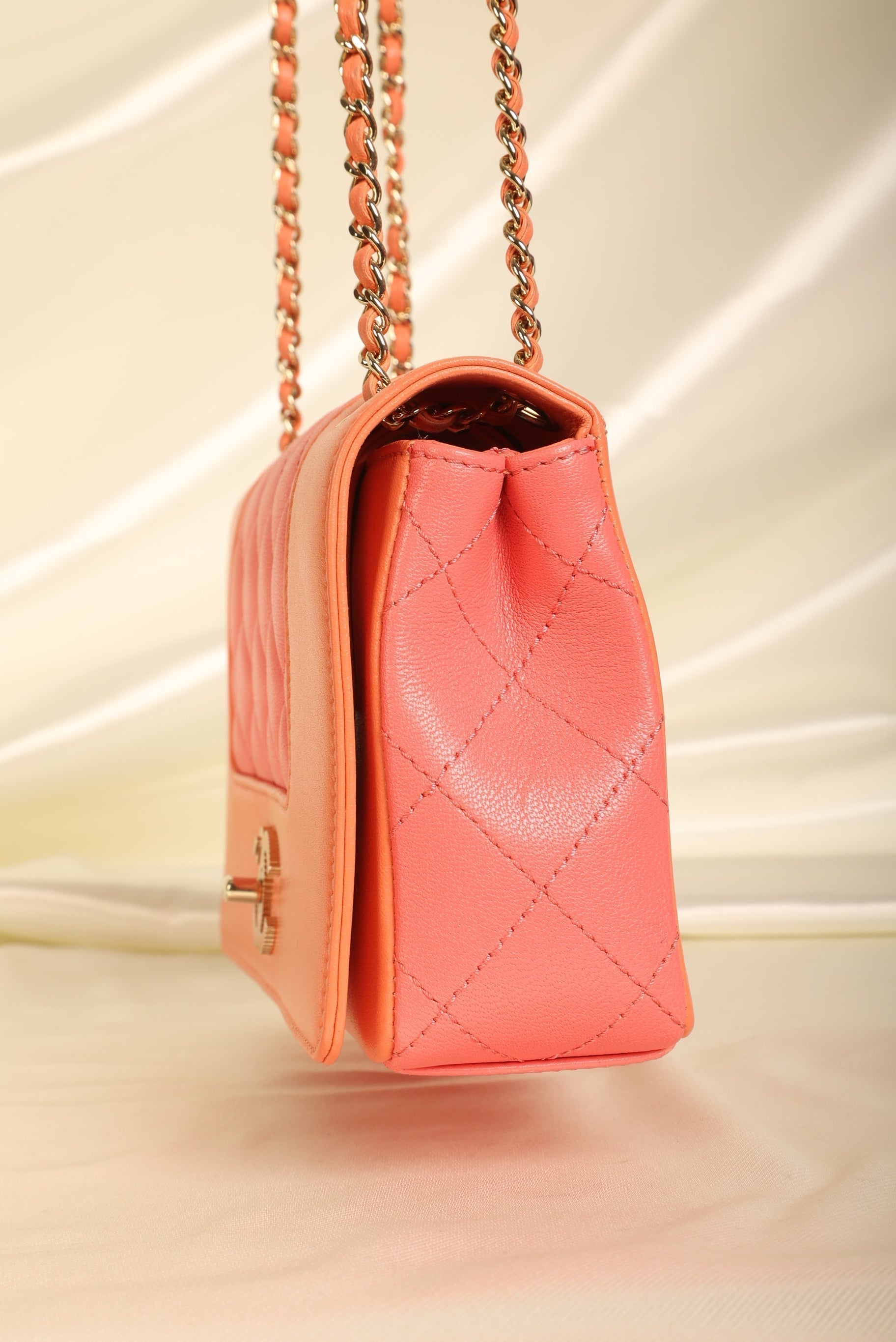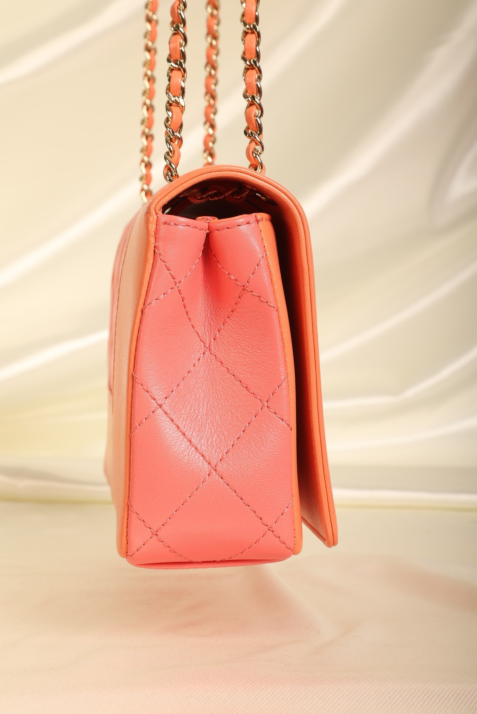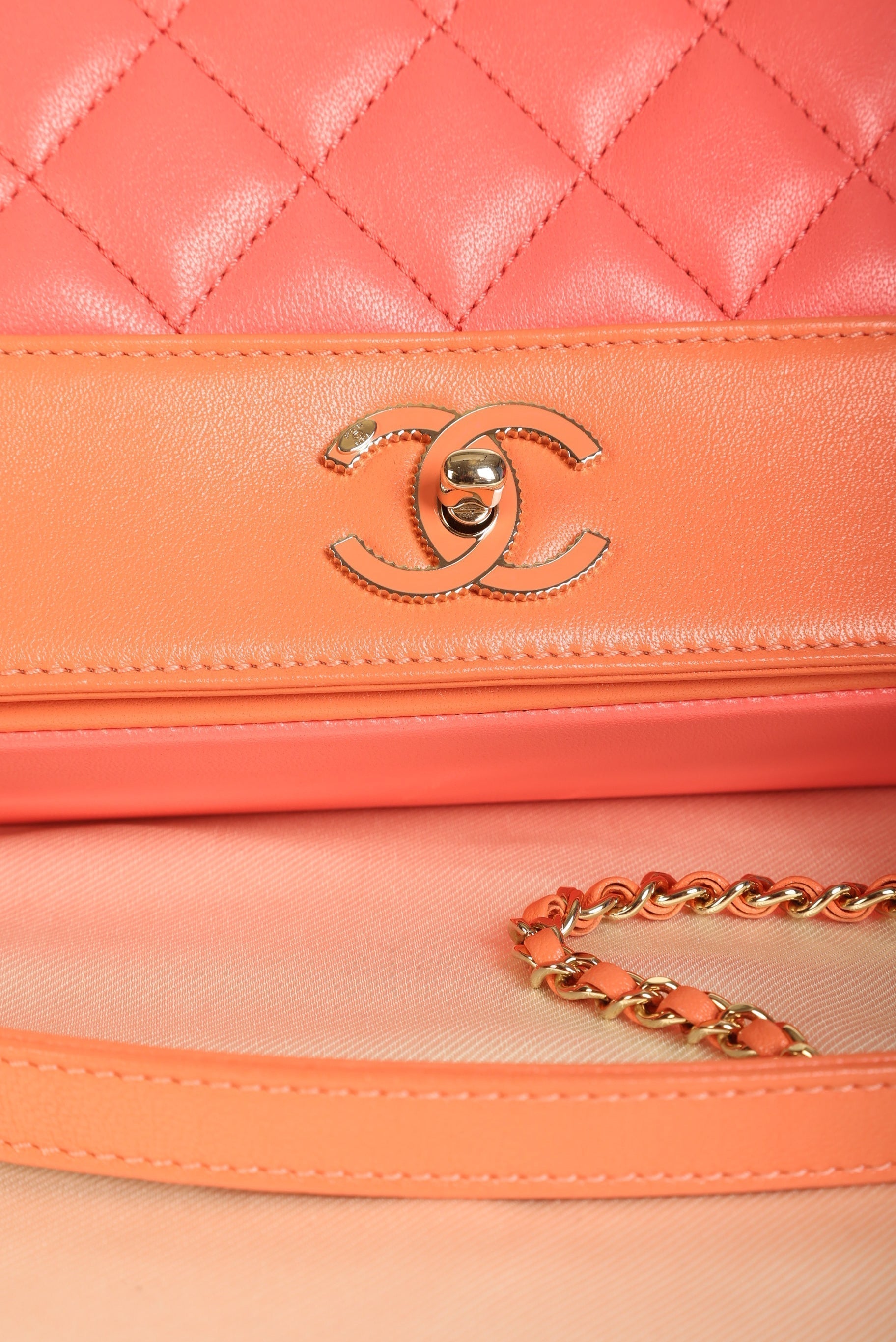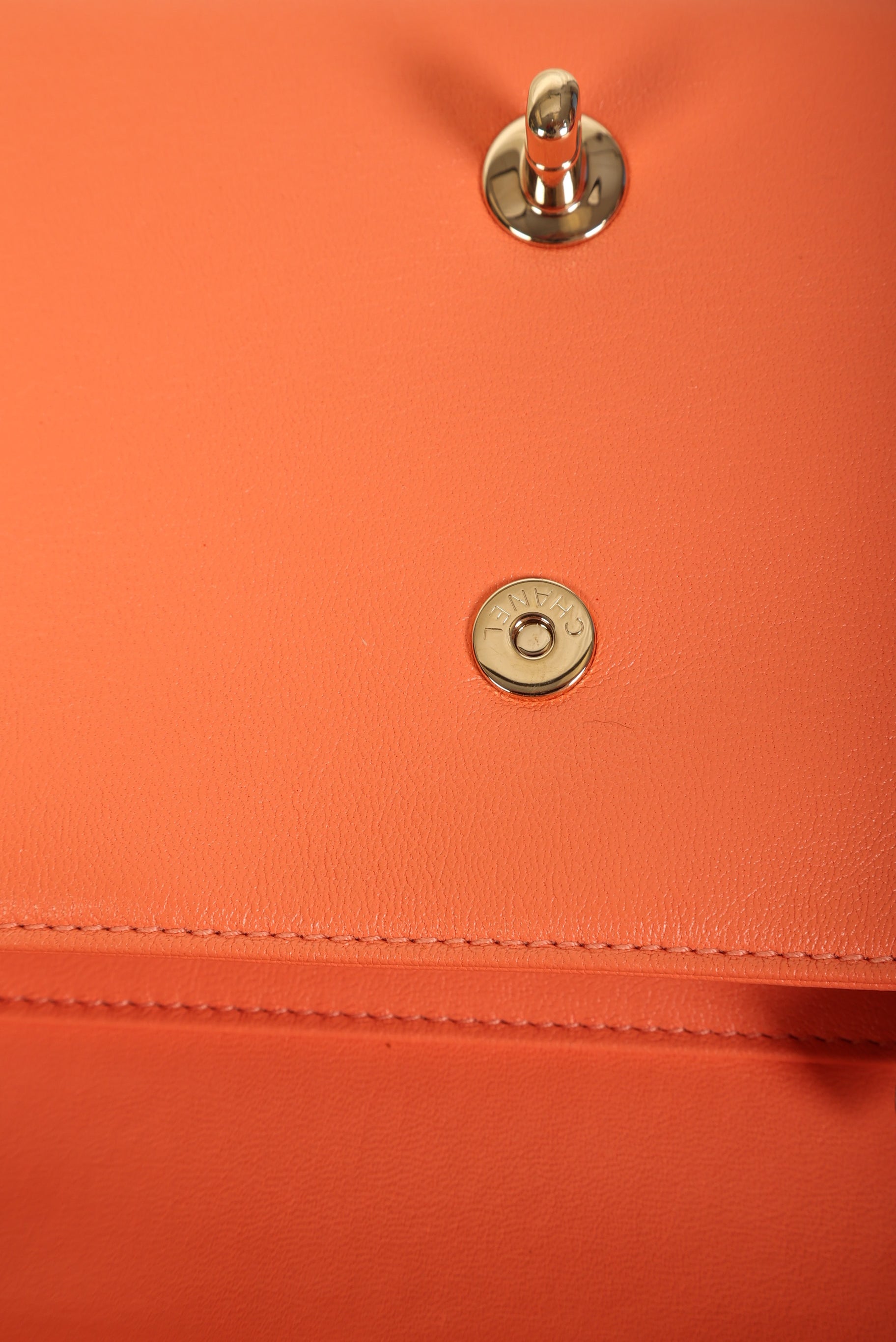 This unique Chanel piece was crafted in a beautiful yet sturdy sheepskin! Two vibrant colors collaborate to make this bag STAND OUT. Even the CC logo has some added pizzazz! The design of the bag is so special, with its extra mini flap in the interior, and is equivalent to a medium size Chanel. Definitely a piece to turn heads!?