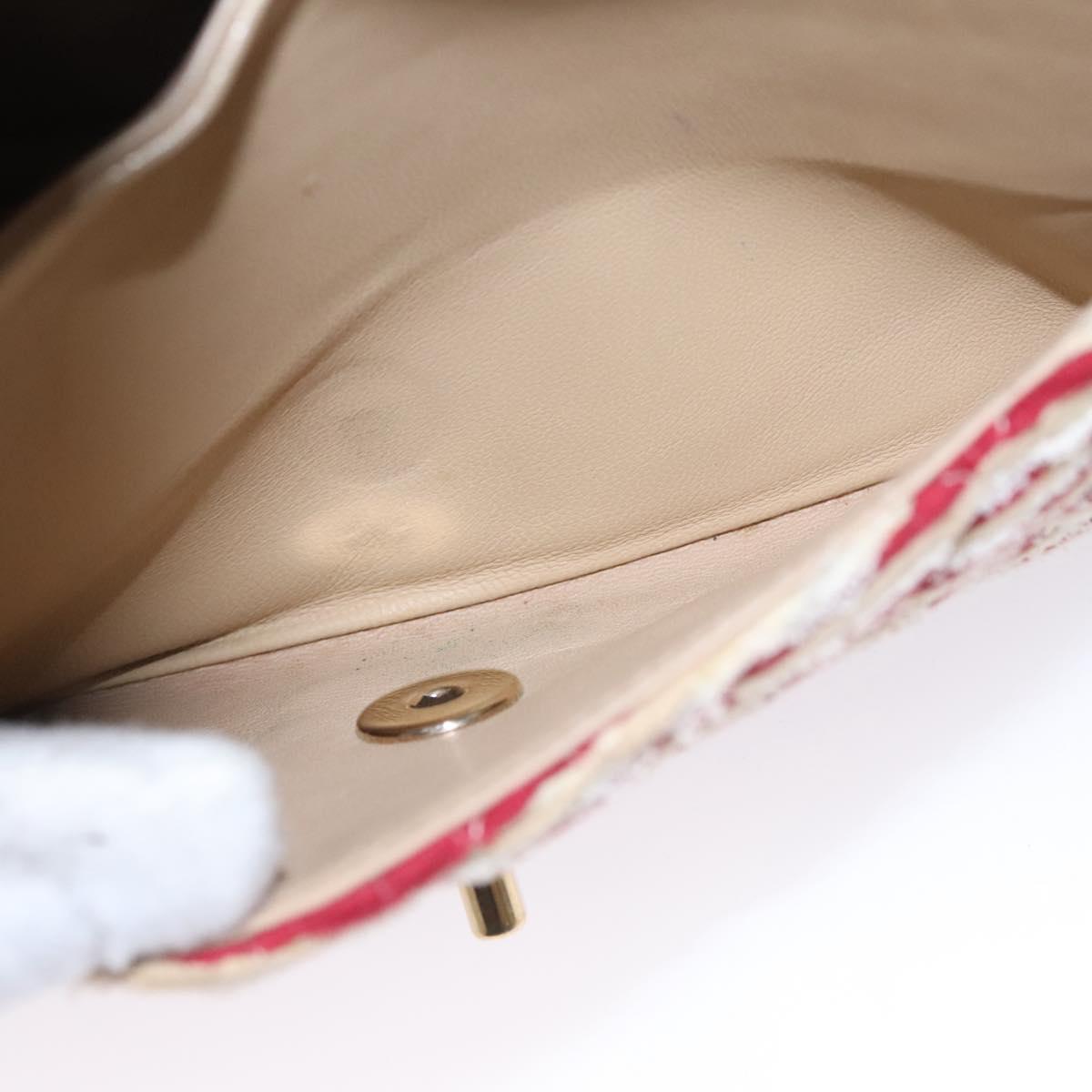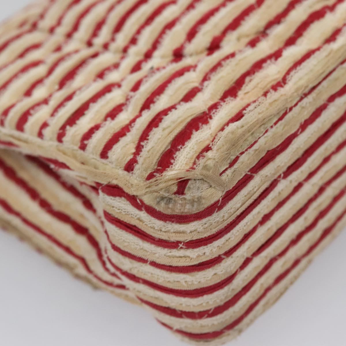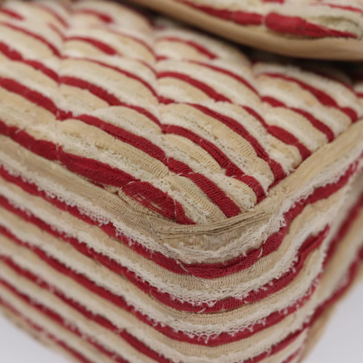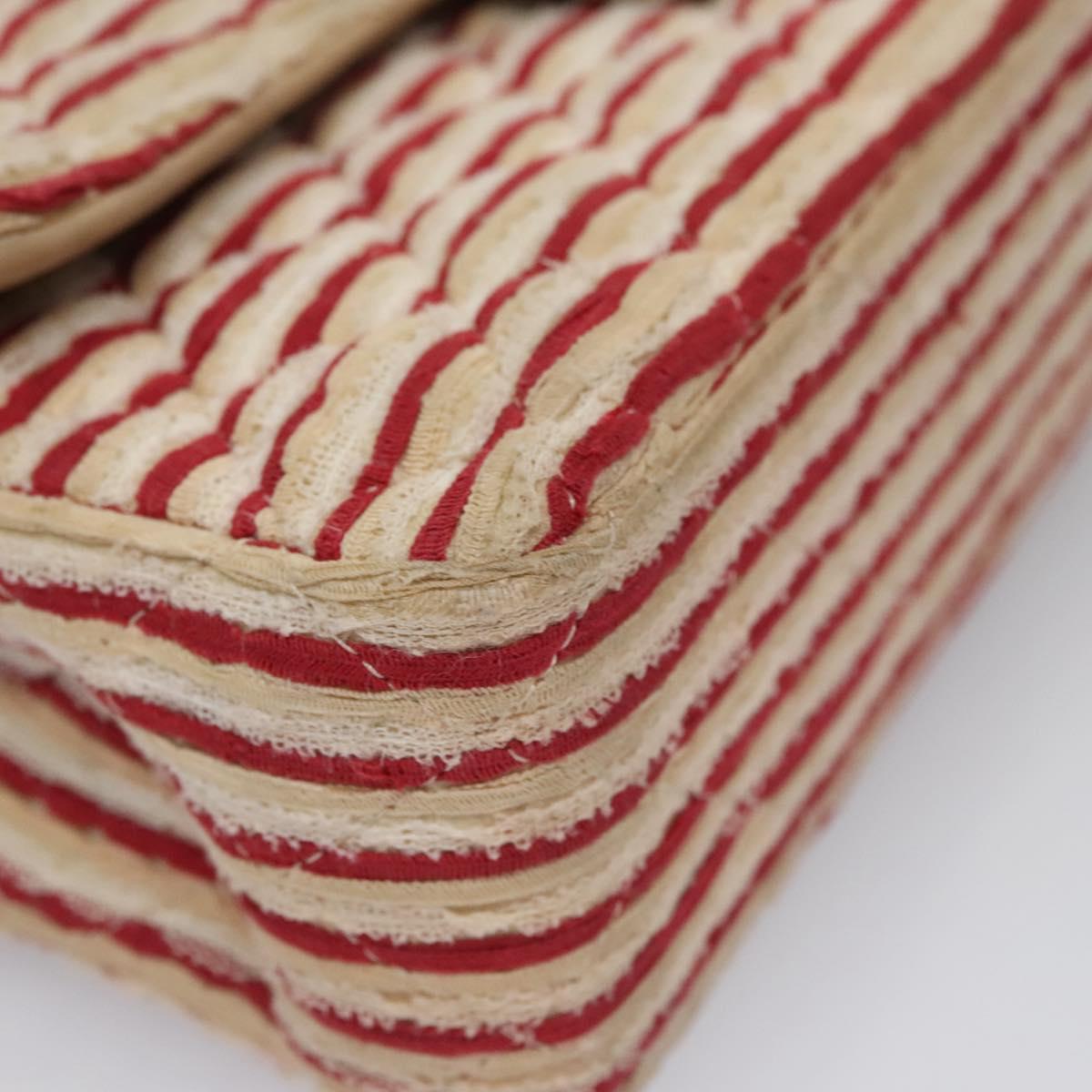 CHANEL Matelasse 25 Border Double Flap Chain Hand Cotton Red CC 112984A