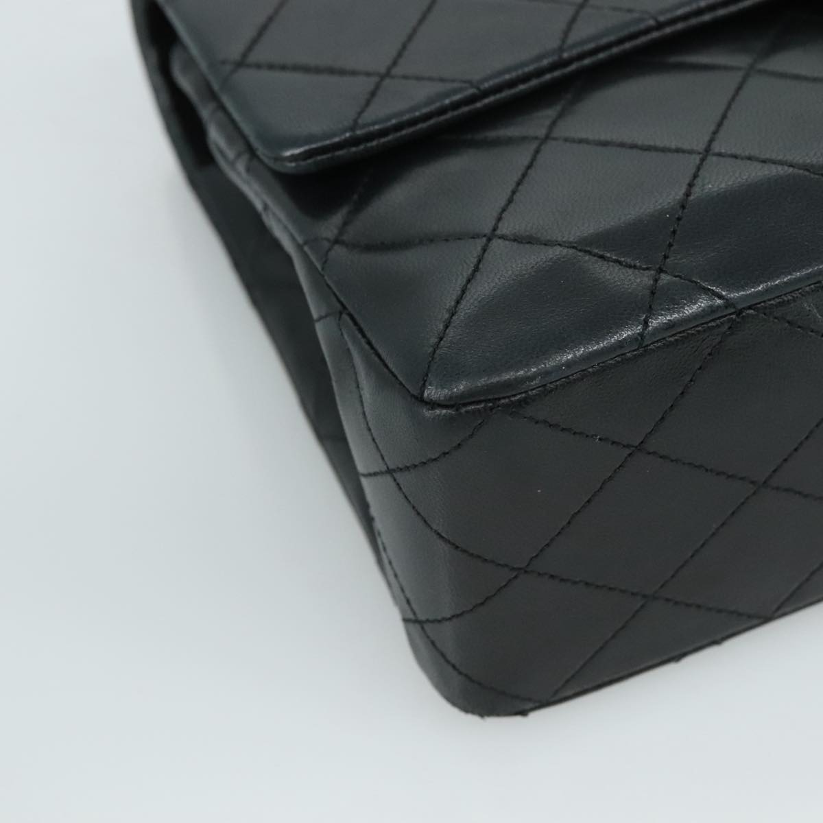 CHANEL Matelasse 25 Double Flap Chain Bag Lamb Skin Black Gold CC 109063A