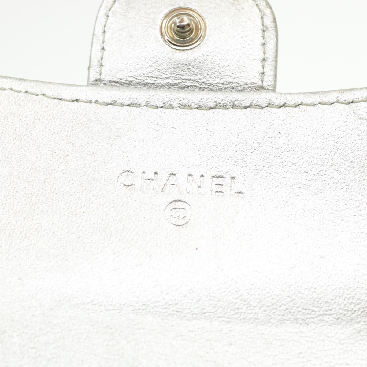 CHANEL Matelasse Bifold Wallet Silver CC cr620