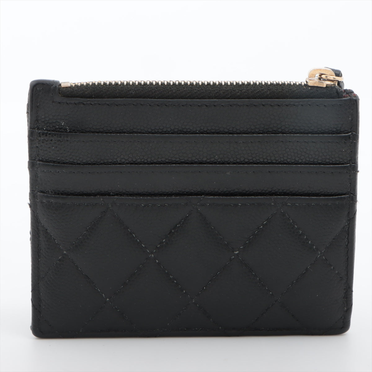 Measuring compactly, the coin case is perfect for keeping your loose change and small essentials organized. The classic black color exudes elegance and versatility, allowing it to effortlessly complement any handbag or outfit in your collection. The front of the coin case features Chanel's iconic CC logo in gold-tone hardware, adding a touch of glamour to the overall design. The zip-around closure ensures the security of your belongings, making it a reliable accessory for your daily life. At the back you'll find slots for your cards and I.D's.