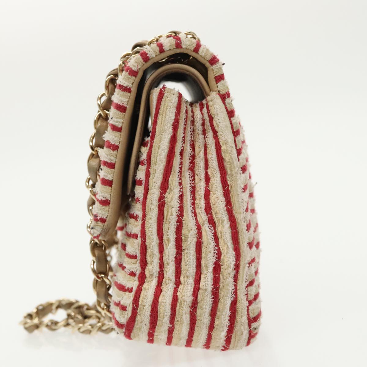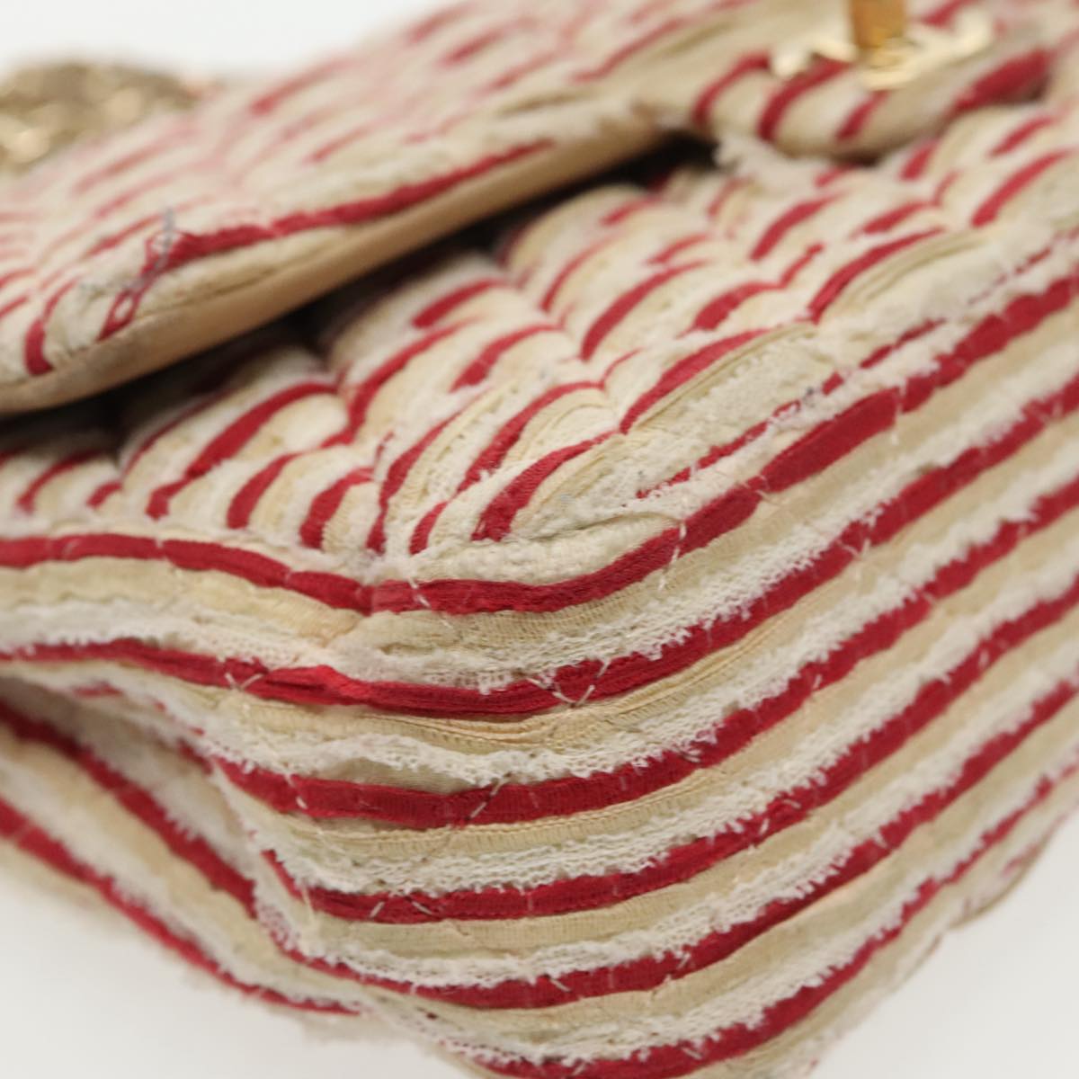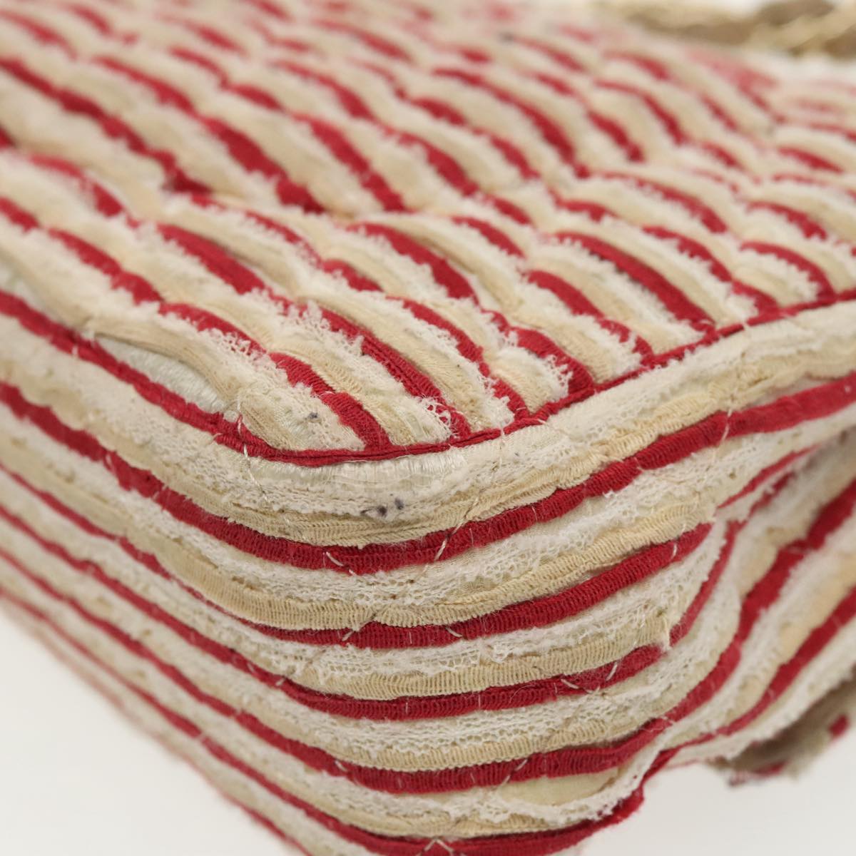 CHANEL Matelasse Chain Border Shoulder Bag Canvas Red Gold beige CC 98535