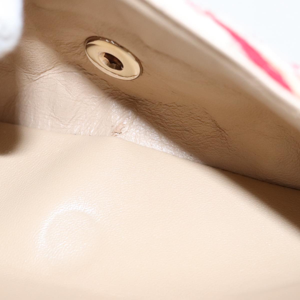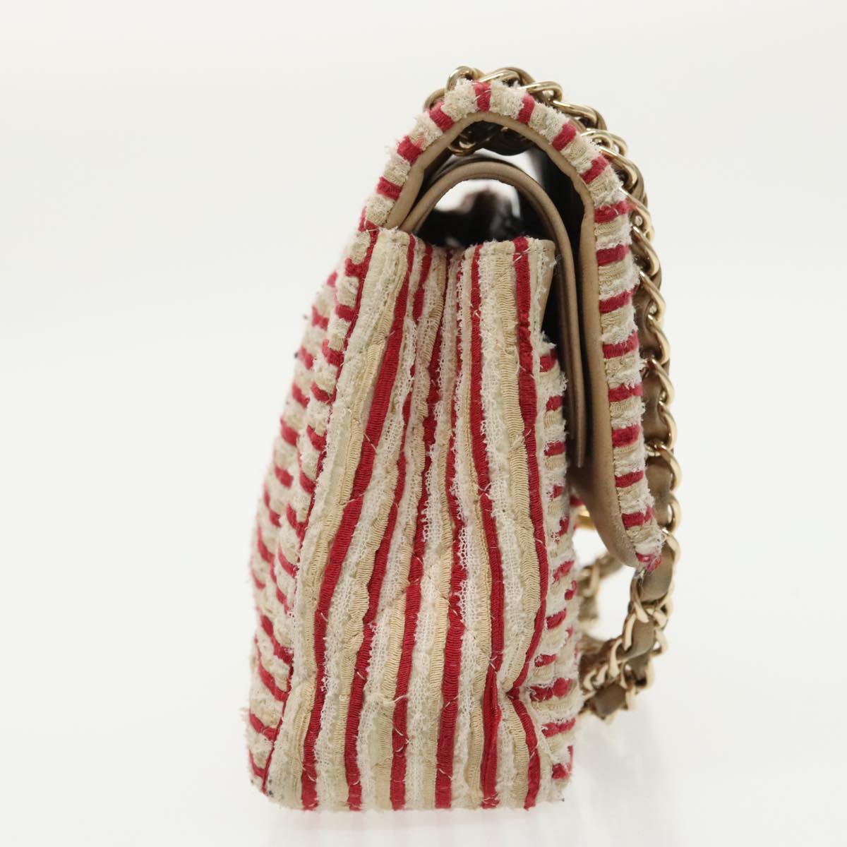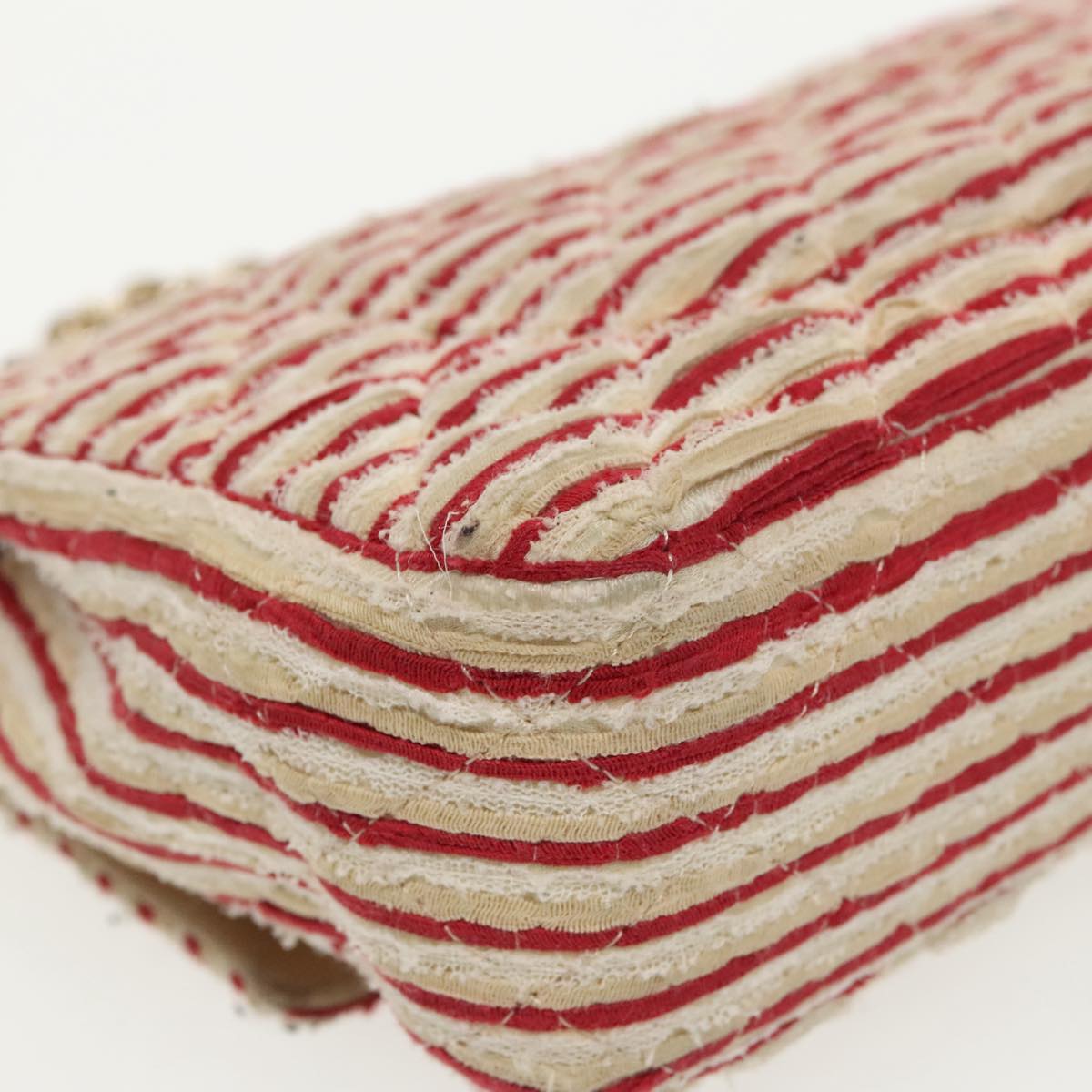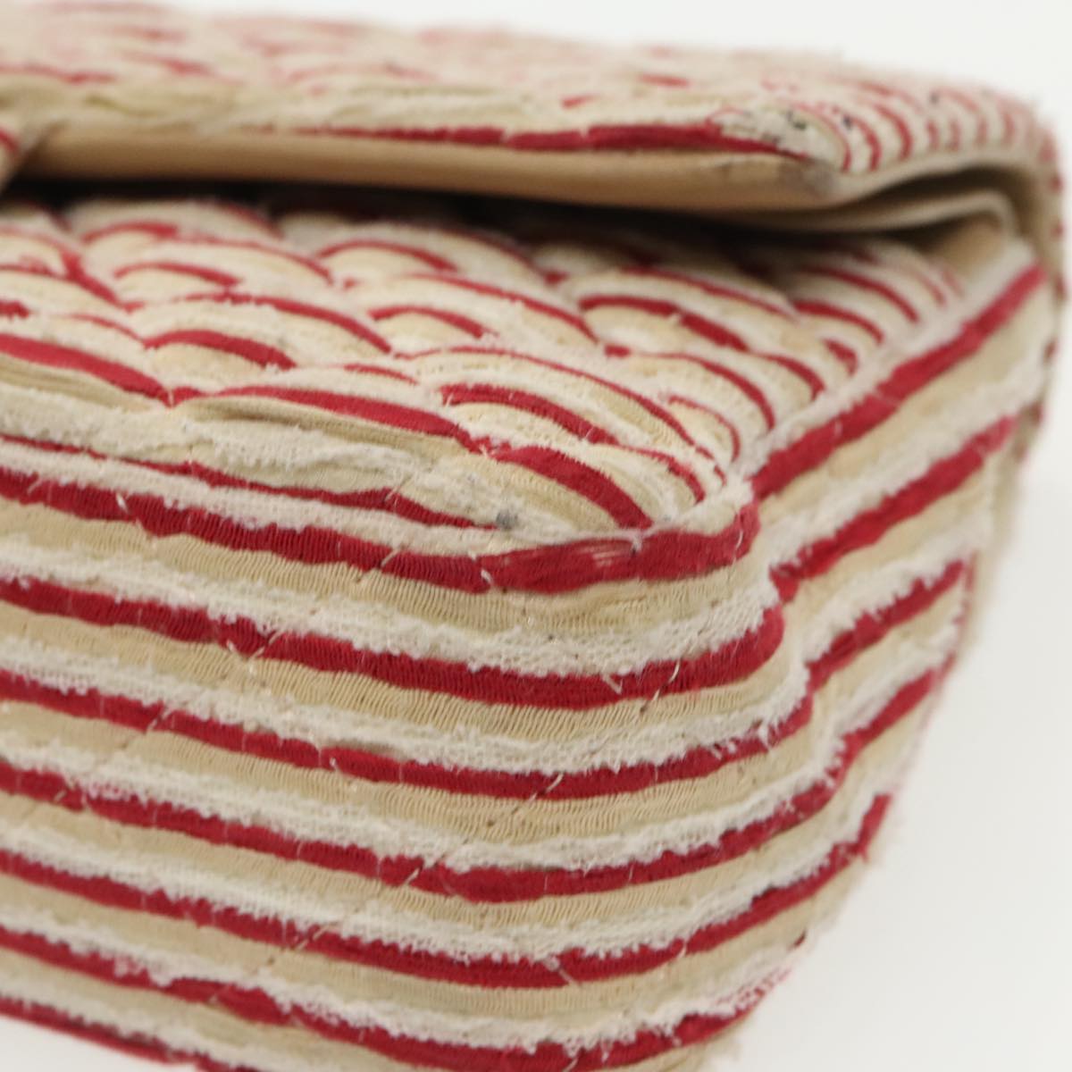 CHANEL Matelasse Chain Border Shoulder Bag Canvas Red Gold beige CC 98535
