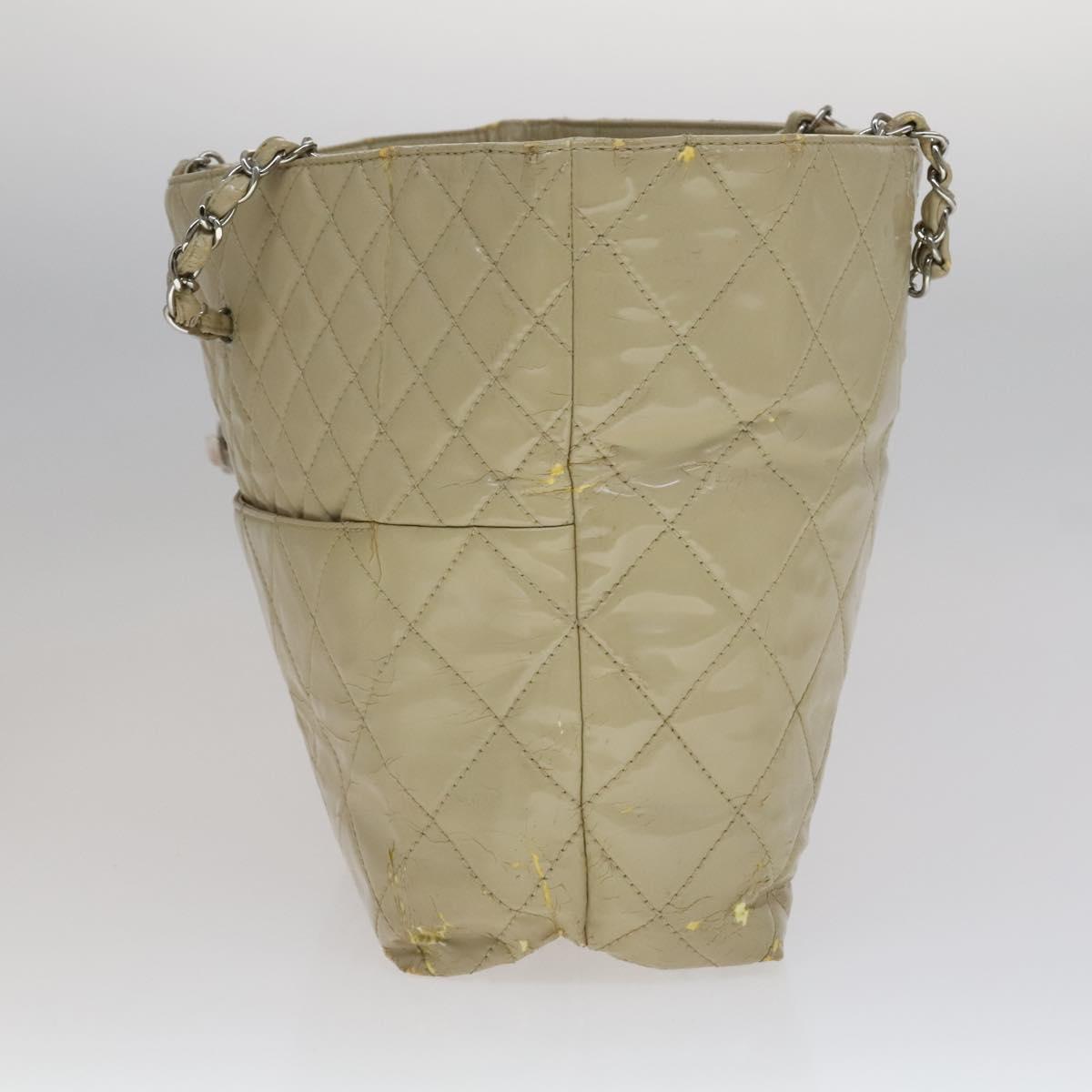 CHANEL Matelasse Chain COCO Mark Tote Bag Enamel Beige CC 110216