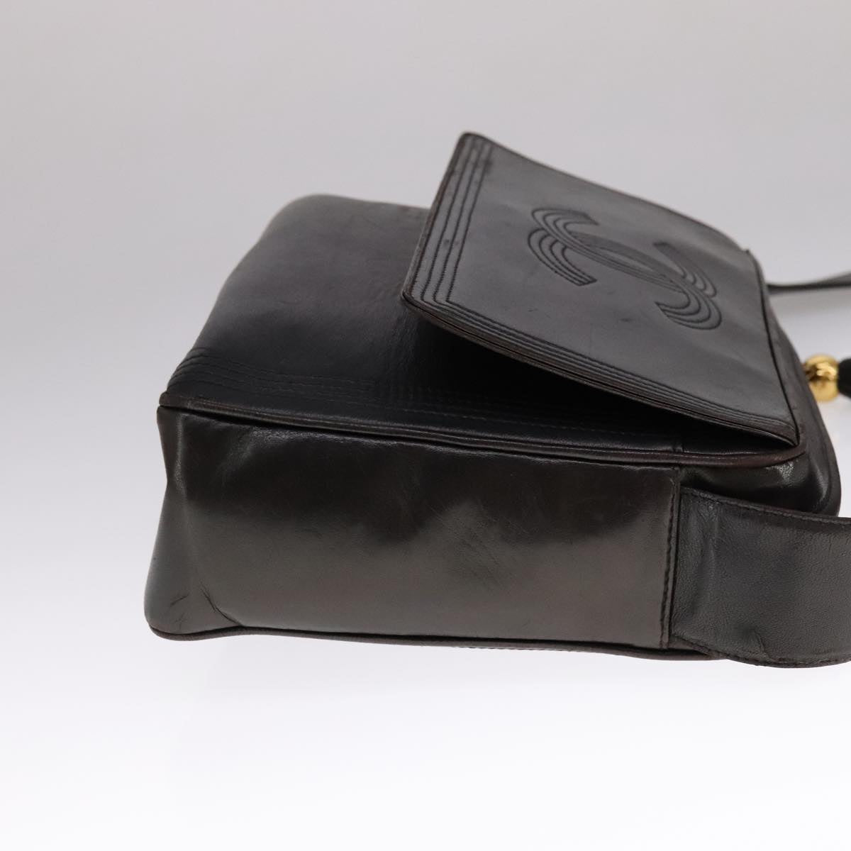 CHANEL Matelasse Chain Hand Bag Lamb Skin Black CC 107642