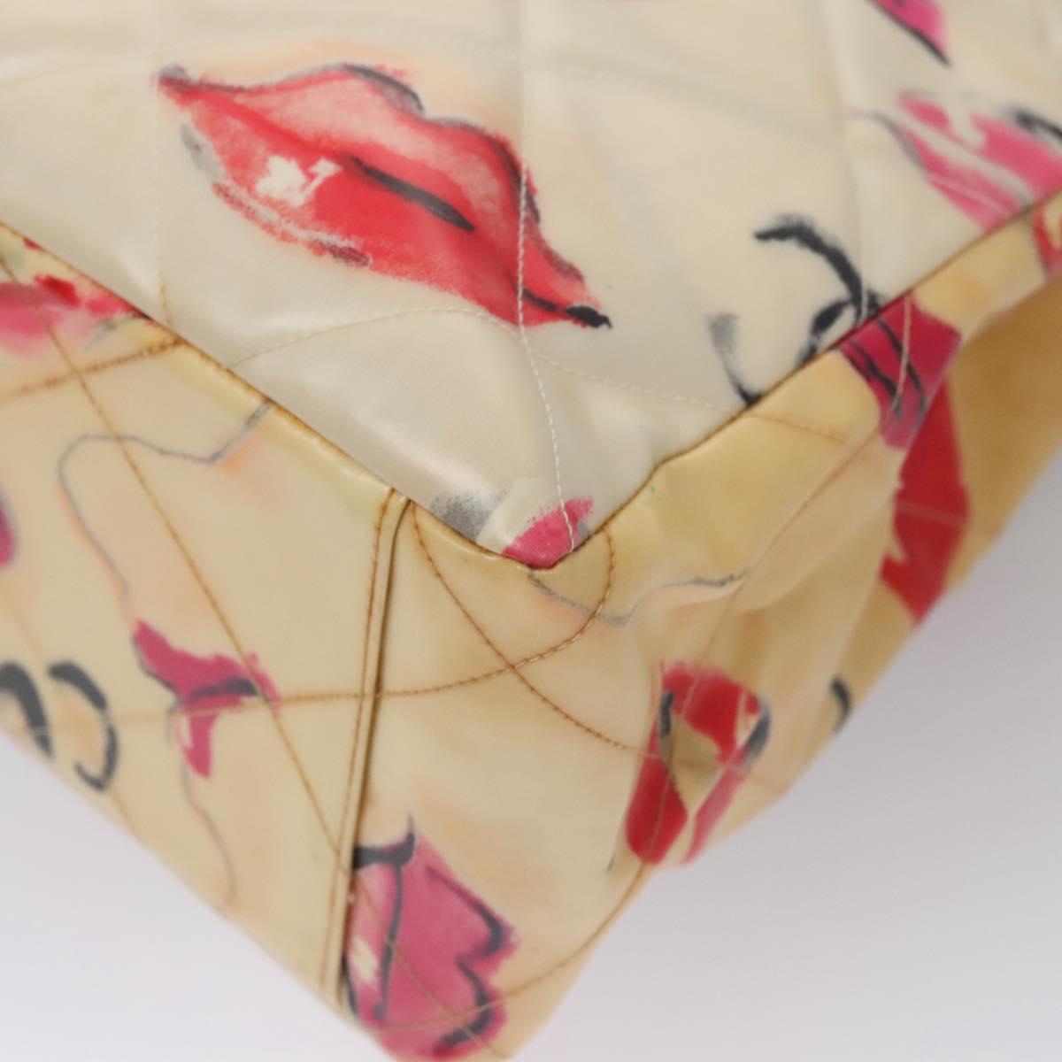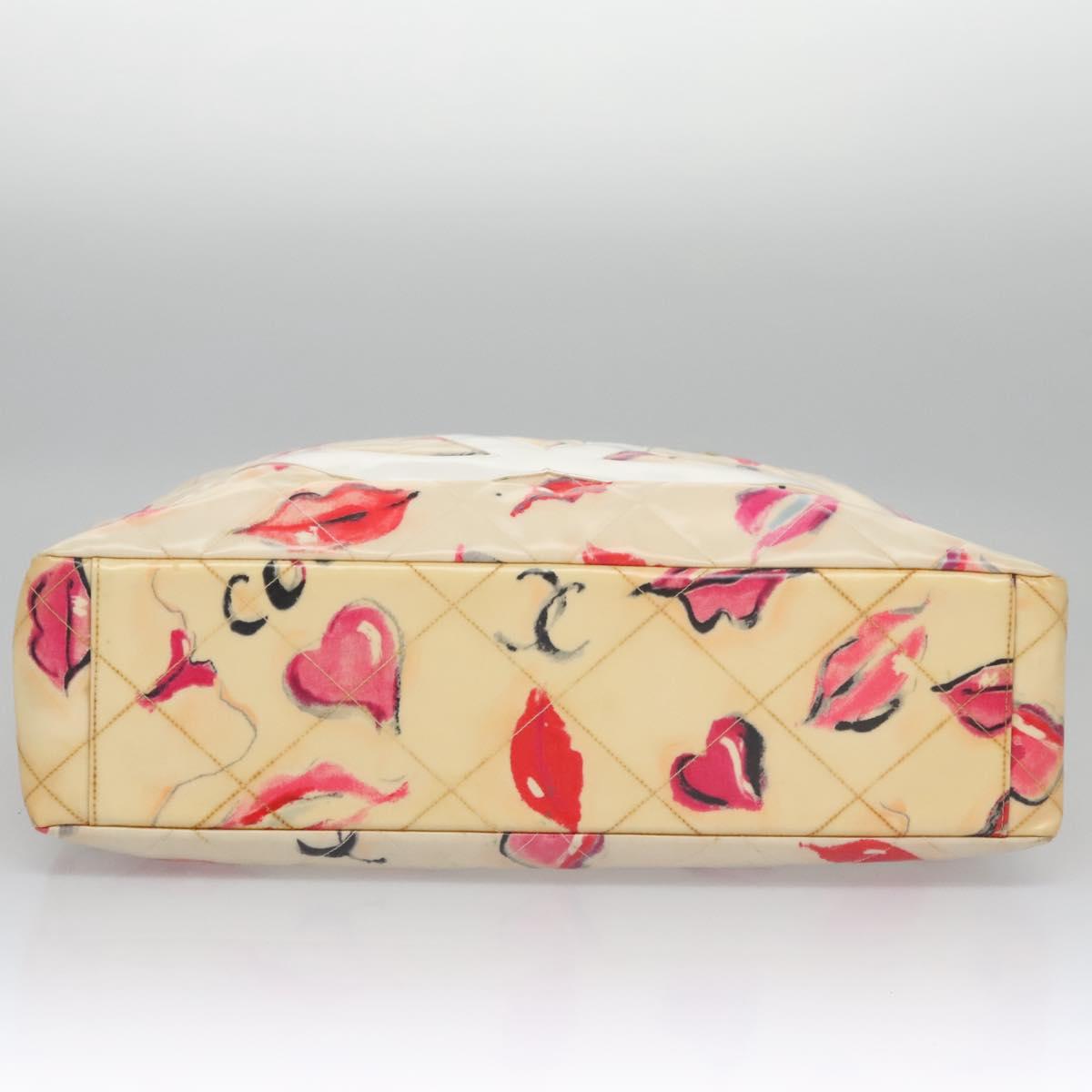 CHANEL Matelasse Chain Lip Tote Bag Enamel Beige CC 115470A
