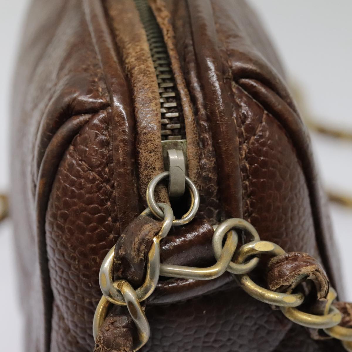 CHANEL Matelasse Chain Shoulder Bag Caviar Skin Brown Gold CC bs18534