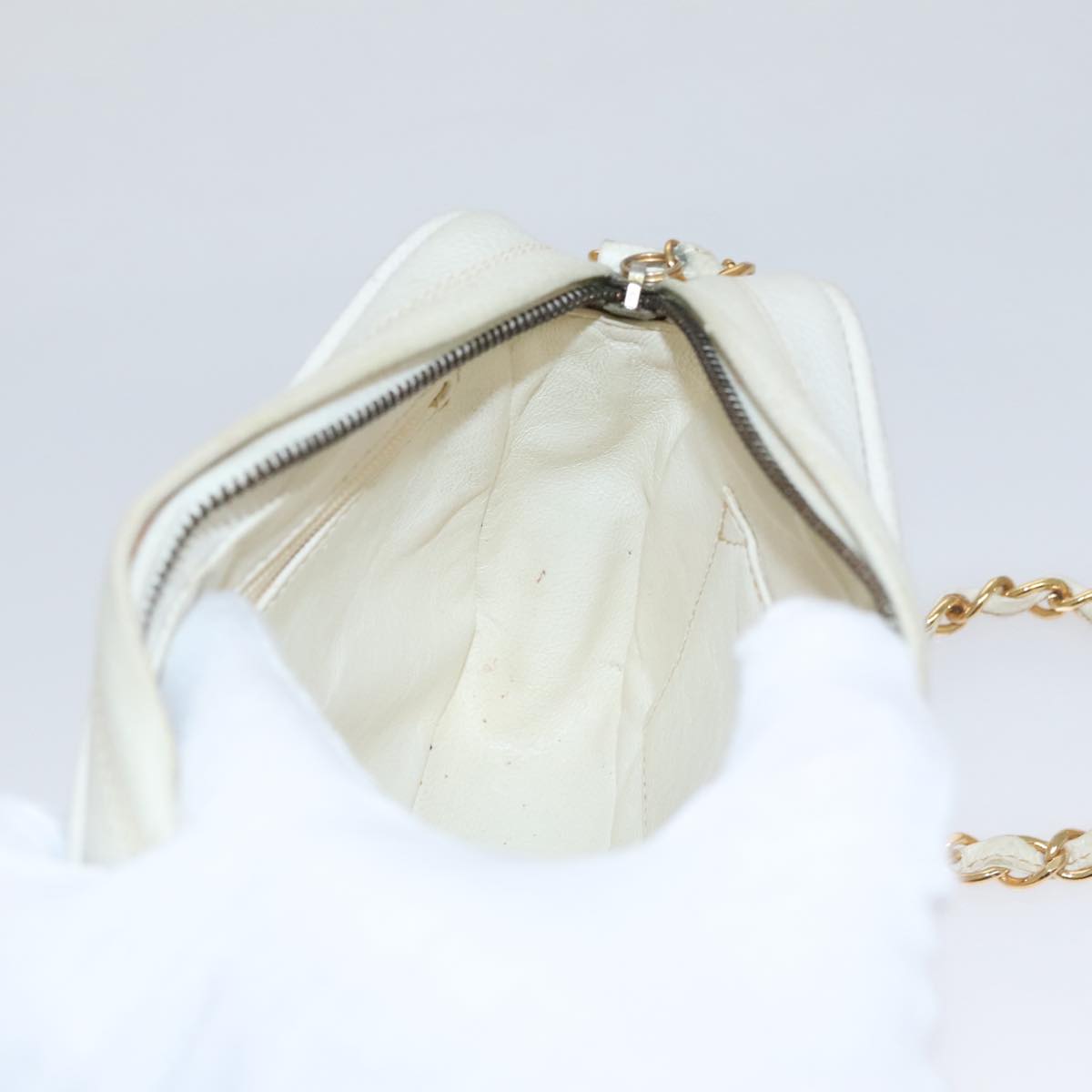 CHANEL Matelasse Chain Shoulder Bag Caviar Skin White Gold CC 107702