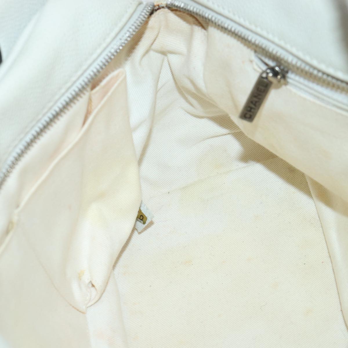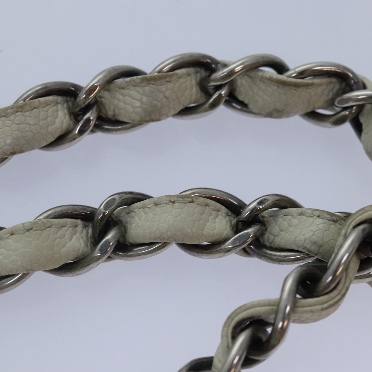 CHANEL Matelasse Chain Shoulder Bag Caviar Skin White Silver CC yk14601