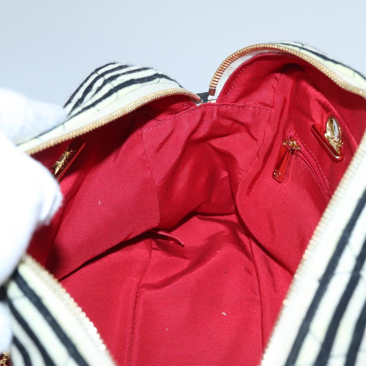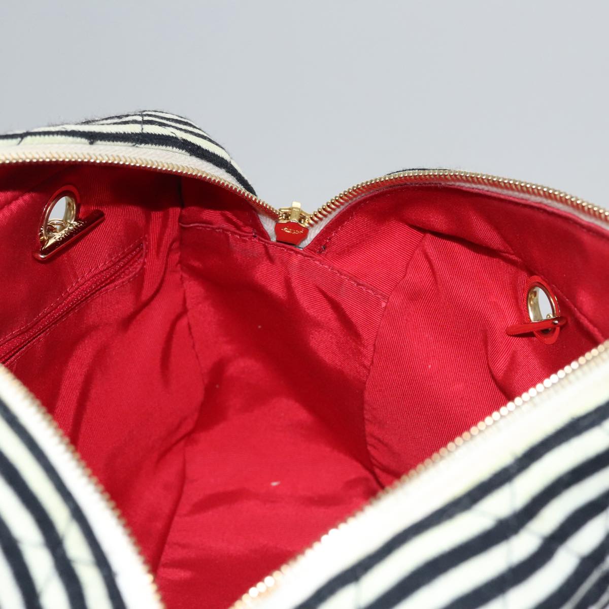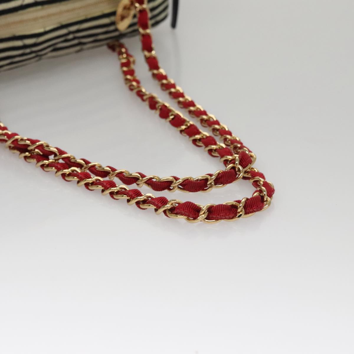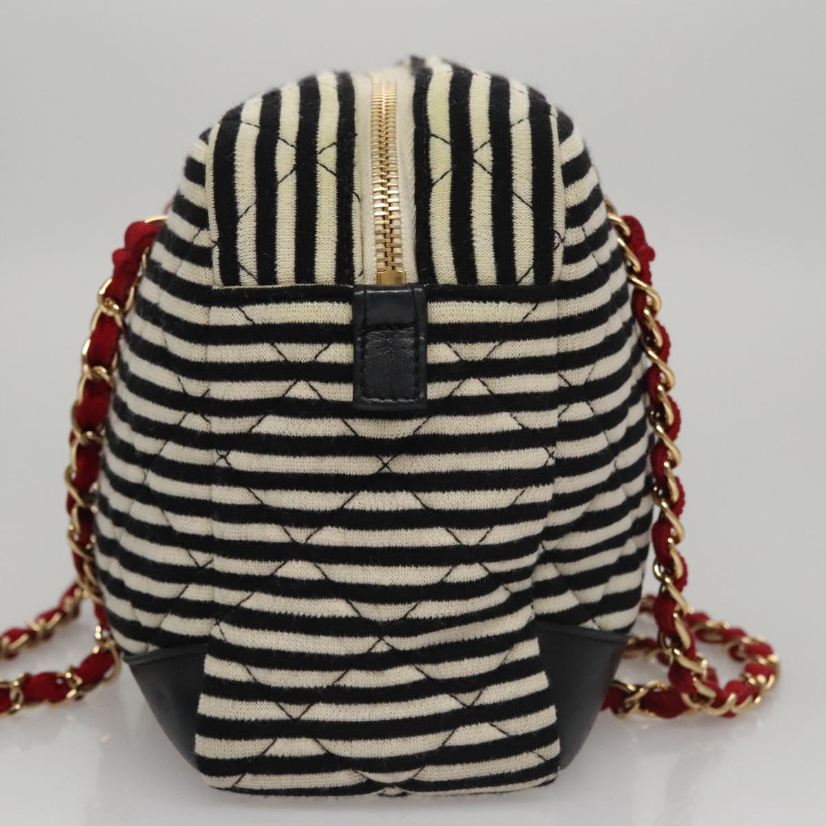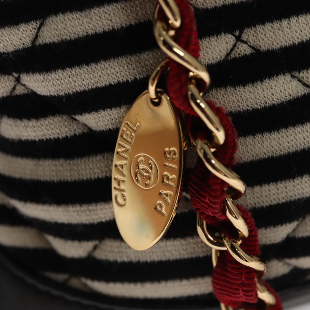 CHANEL Matelasse Chain Shoulder Bag Cotton Black White gold CC 108666