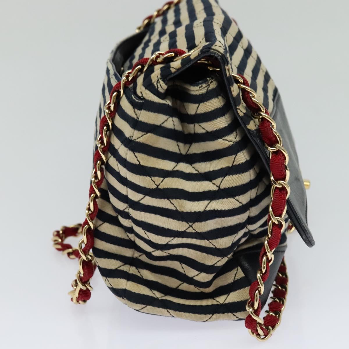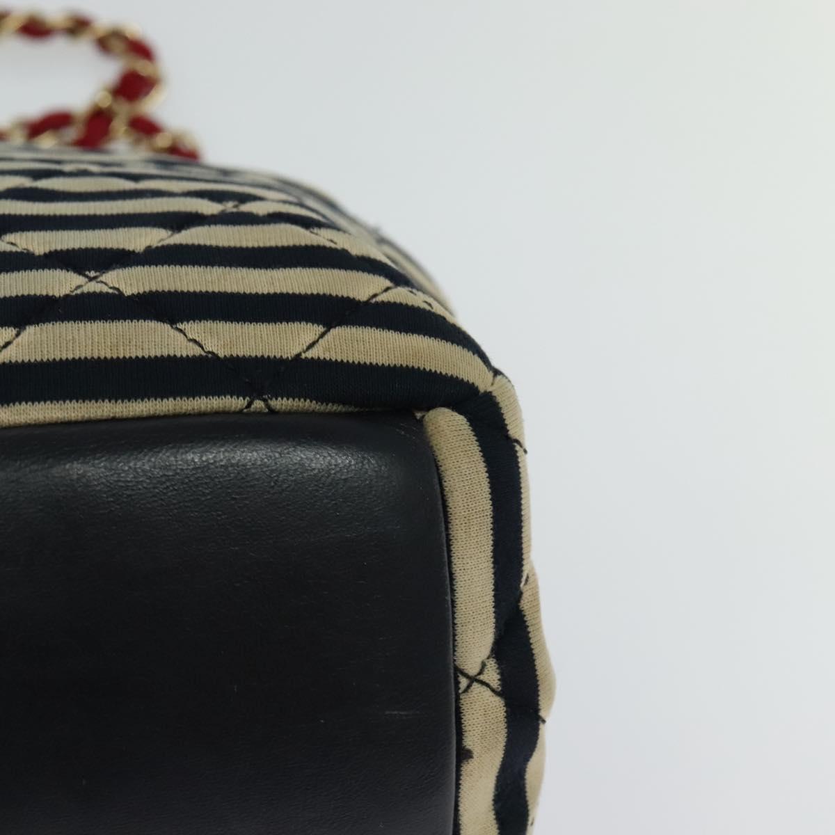 CHANEL Matelasse Chain Shoulder Bag Cotton Navy CC 113826