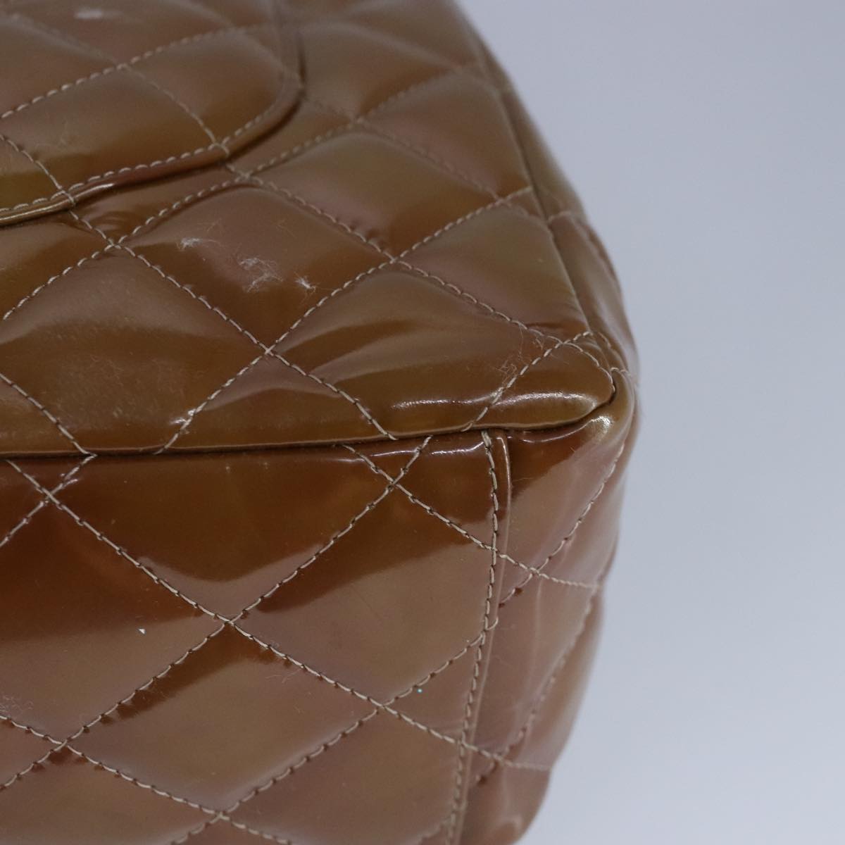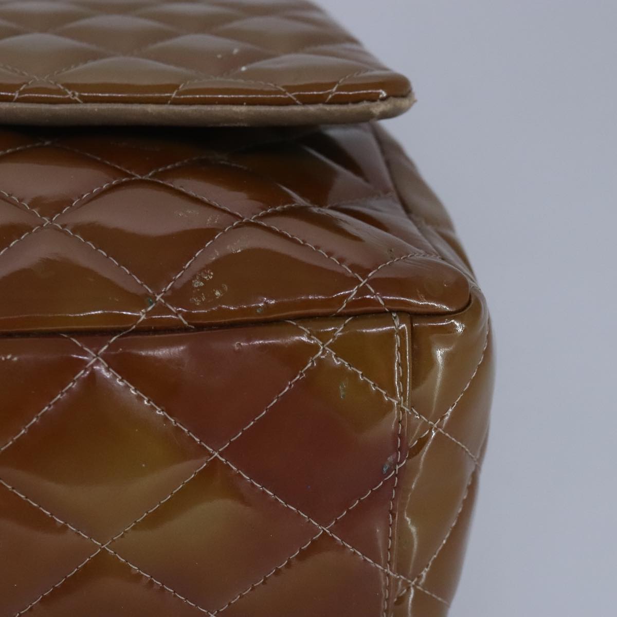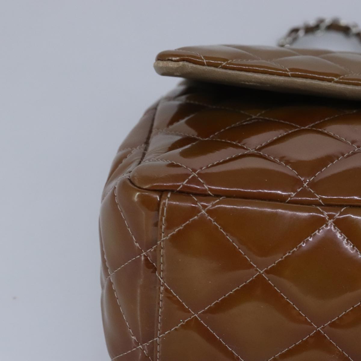 CHANEL Matelasse Chain Shoulder Bag Enamel Brown Silver CC 97455