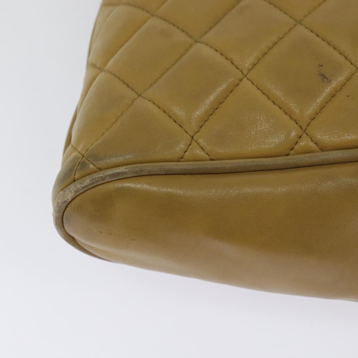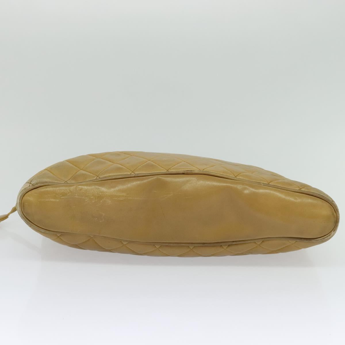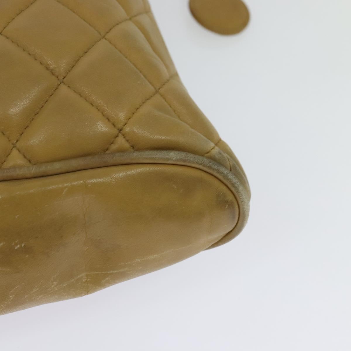 CHANEL Matelasse Chain Shoulder Bag Lamb Skin Beige CC 112263