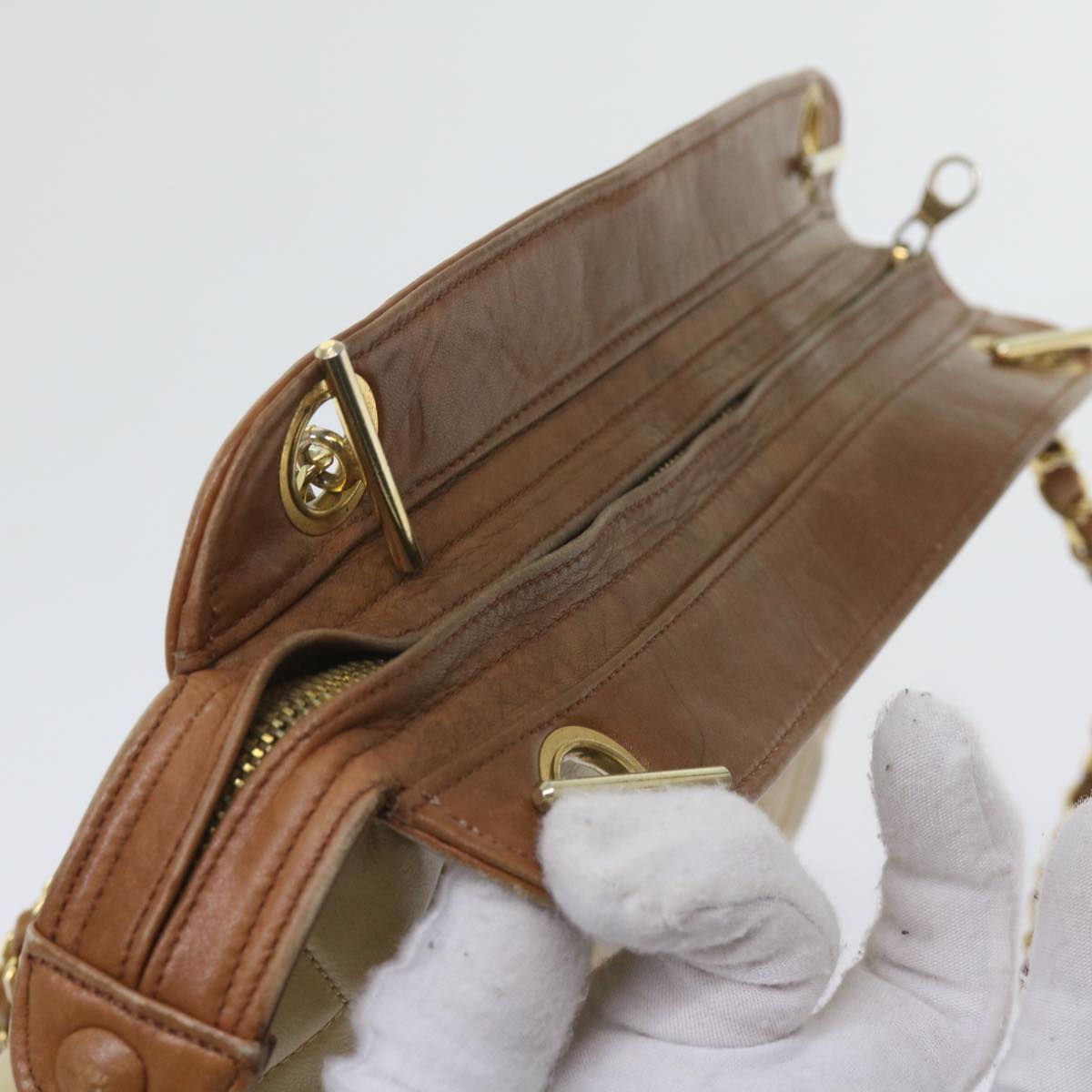 CHANEL Matelasse Chain Shoulder Bag Lamb Skin Beige CC 59907A