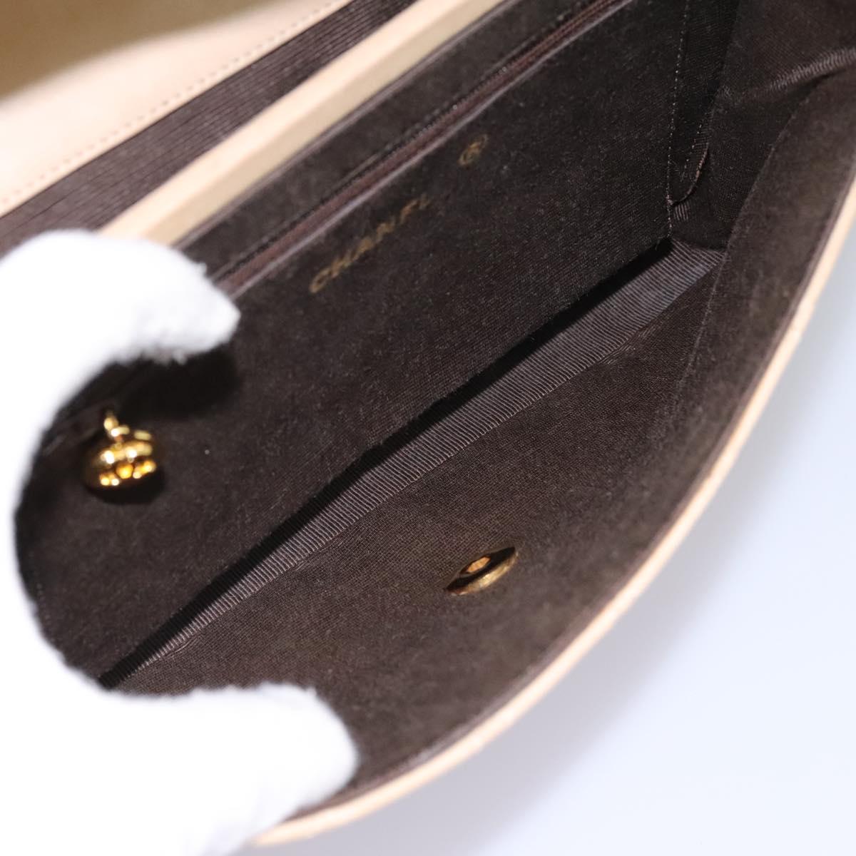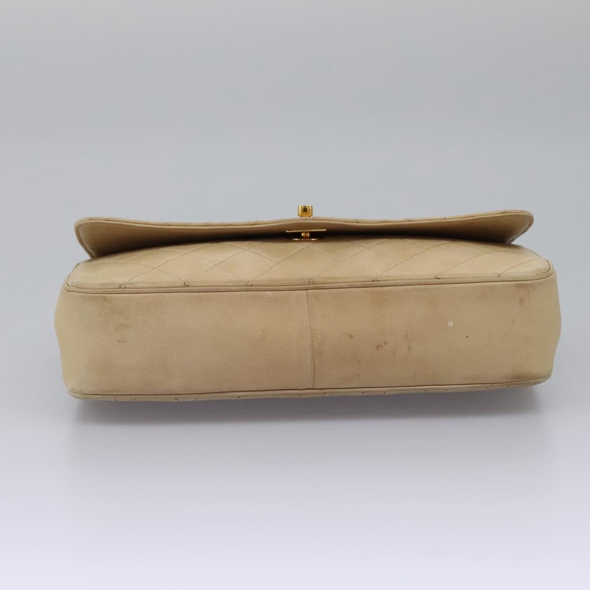 CHANEL Matelasse Chain Shoulder Bag Lamb Skin Beige Gold CC 110167