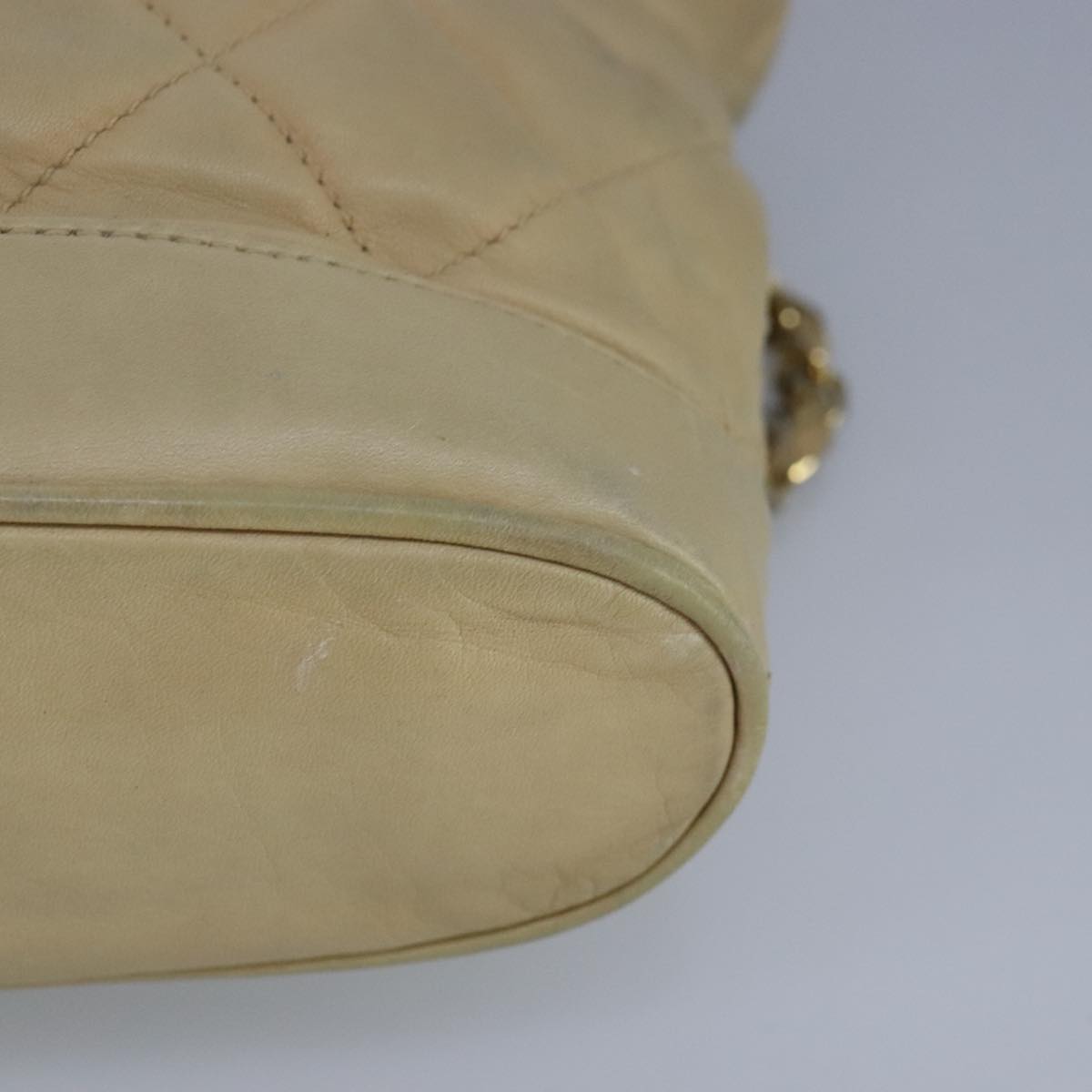 CHANEL Matelasse Chain Shoulder Bag Lamb Skin Beige Gold CC bs19648