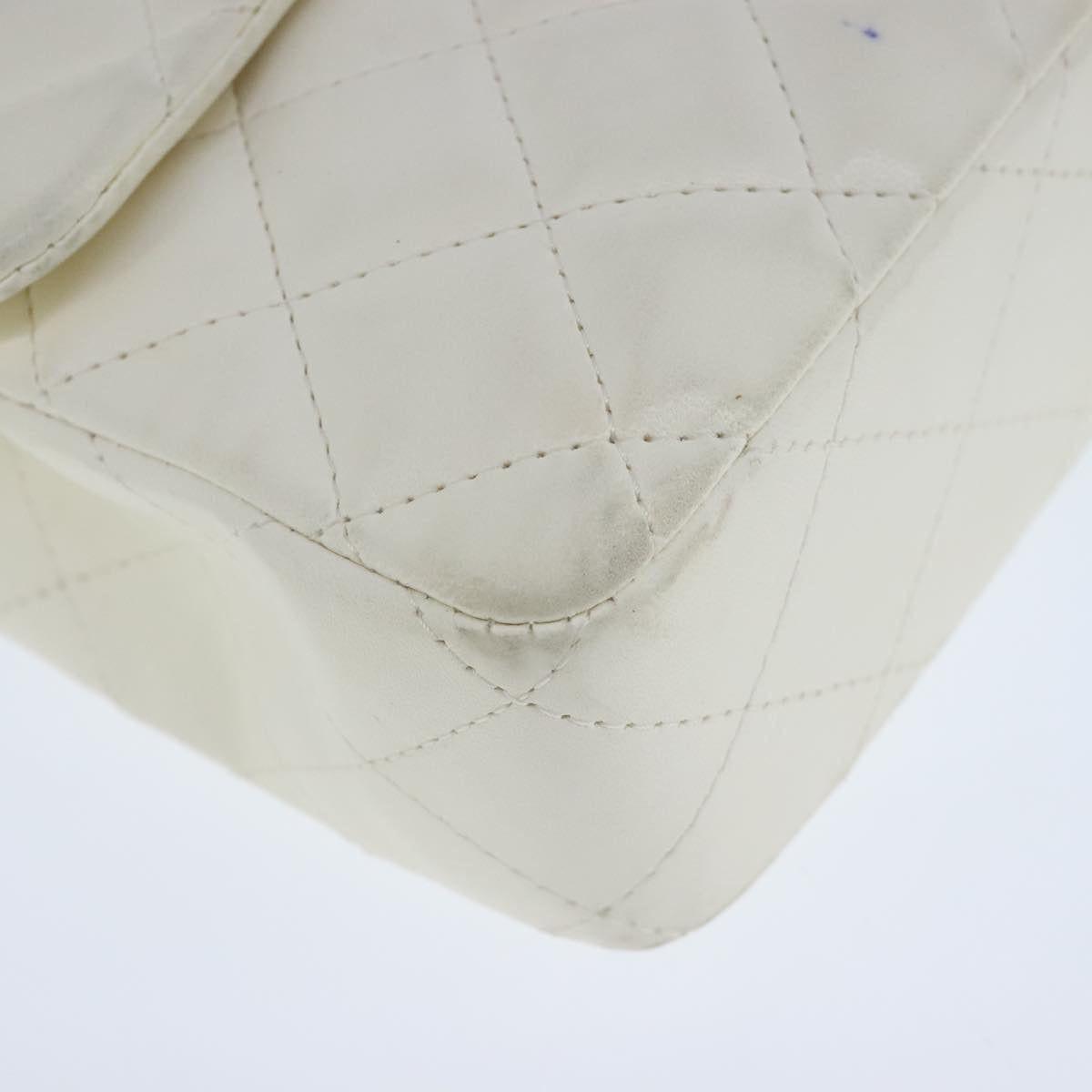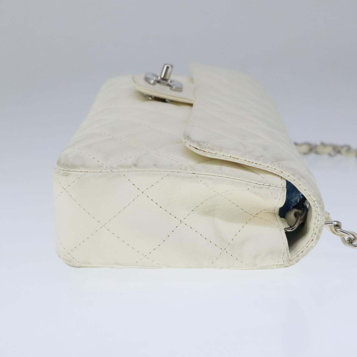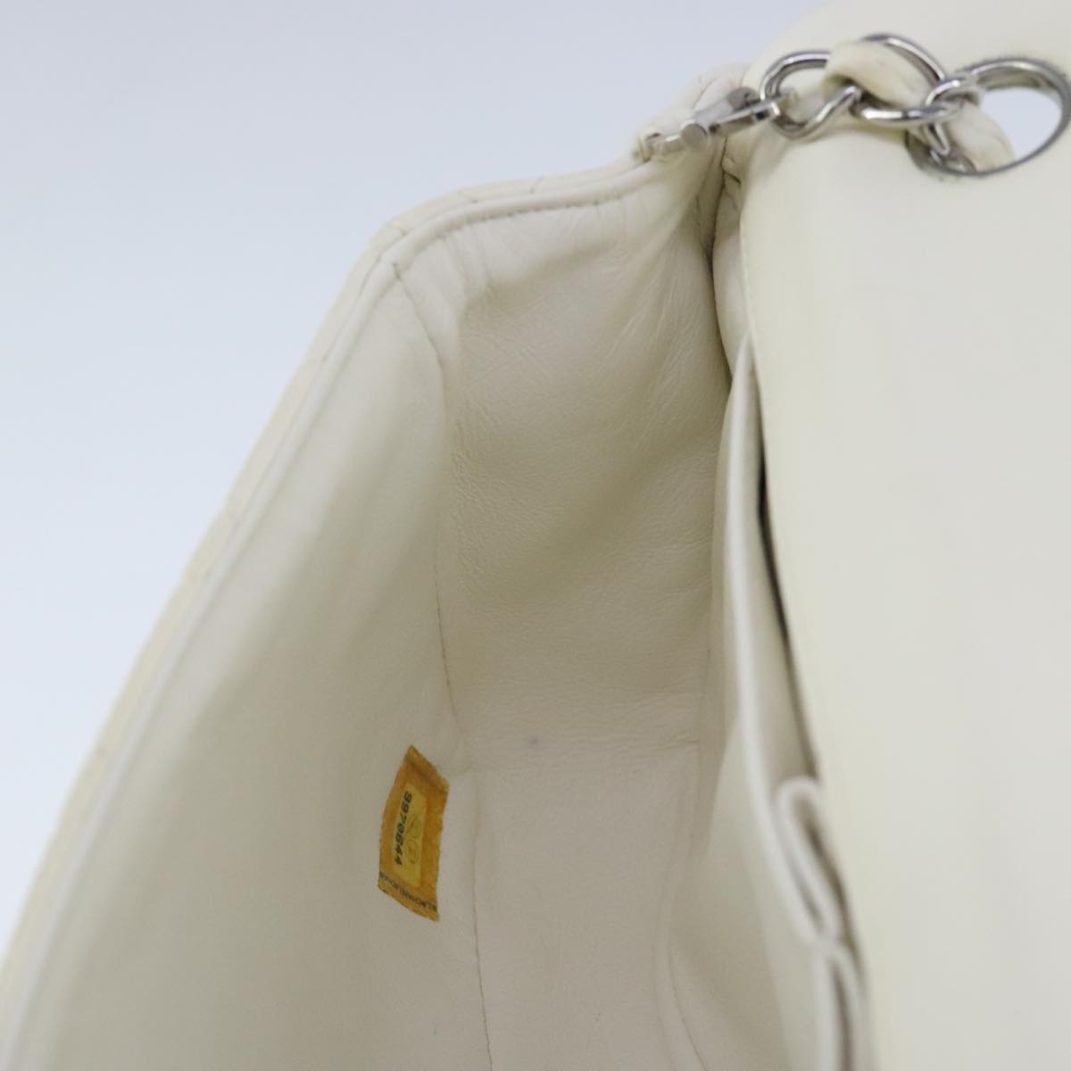 CHANEL Matelasse Chain Shoulder Bag Lamb Skin White Silver CC PP036