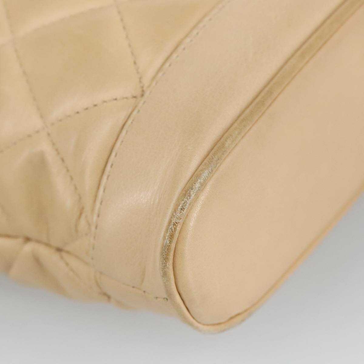 CHANEL Matelasse Chain Shoulder Bag Leather Beige CC yb718
