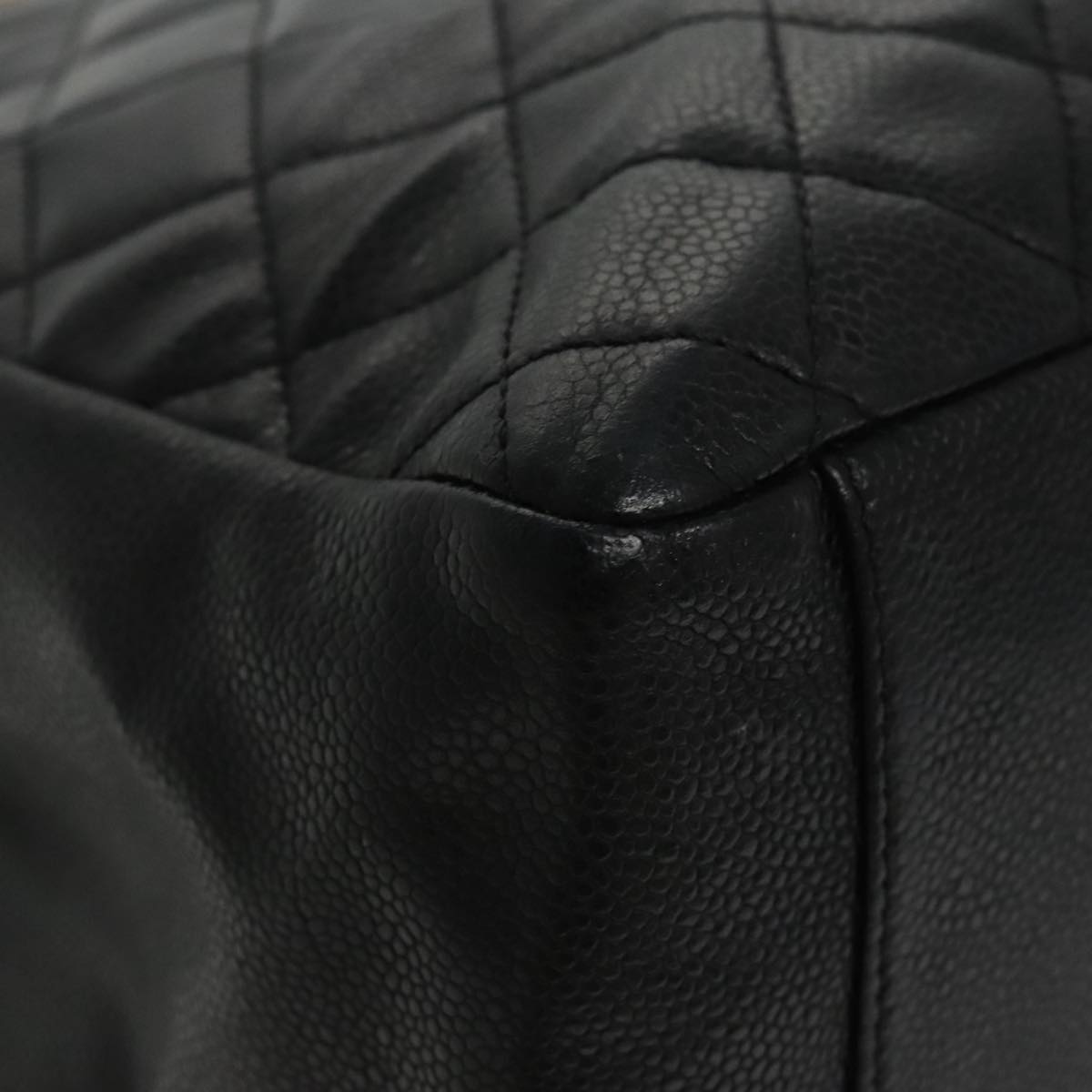 CHANEL Matelasse Chain Tote Bag Caviar Skin GST Black CC yk15656A