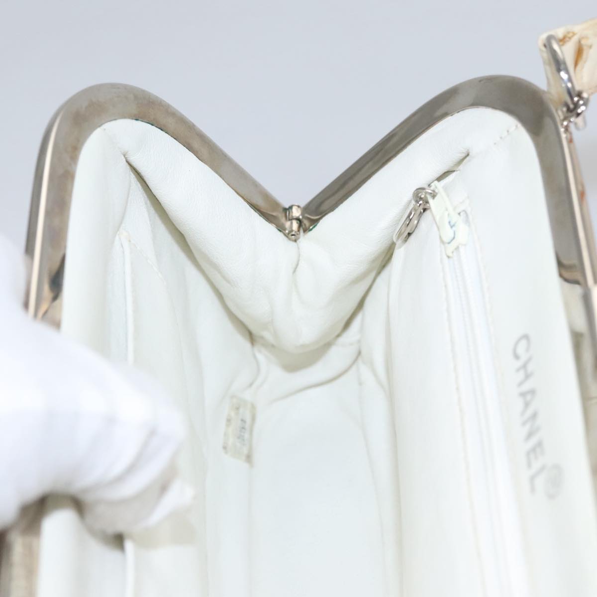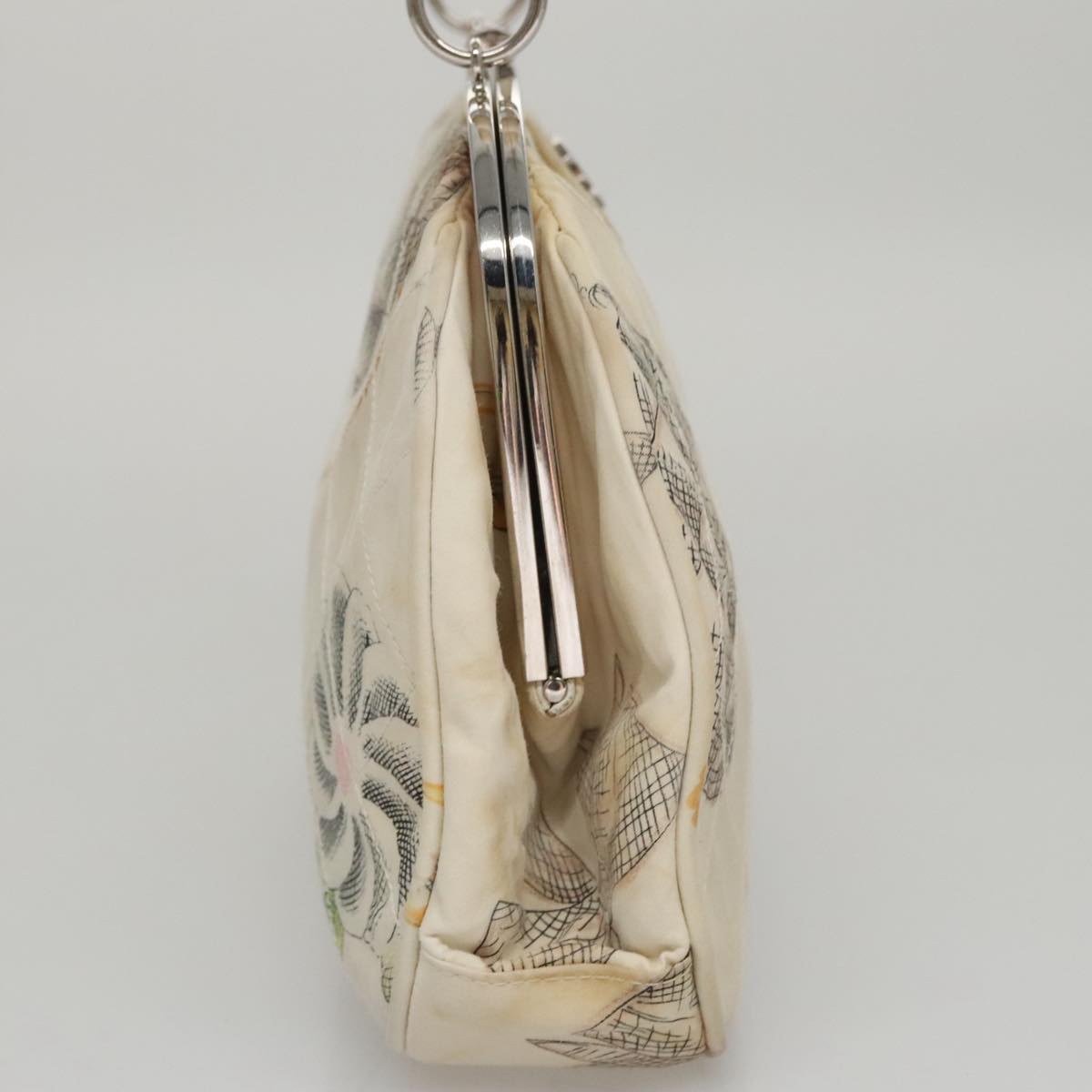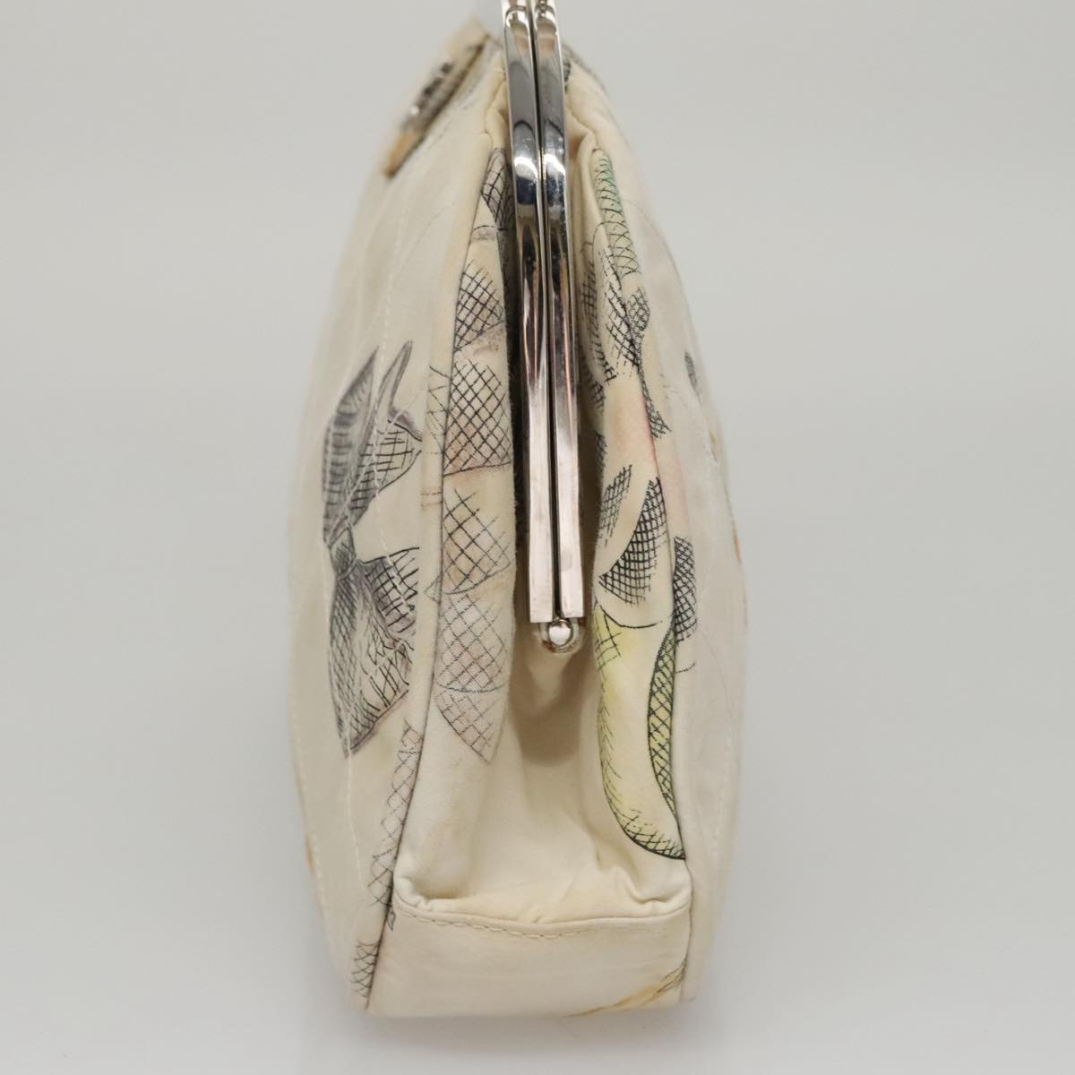 CHANEL Matelasse Hand Bag Canvas White CC 107506
