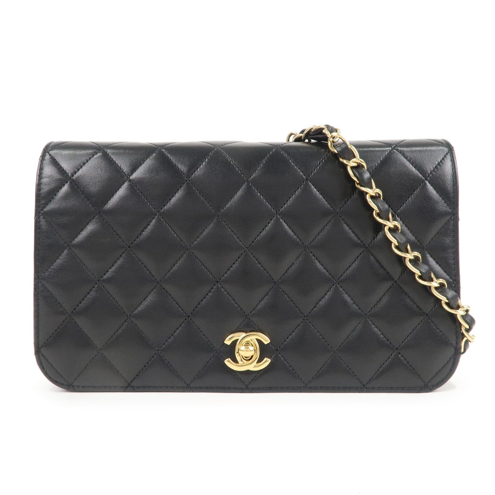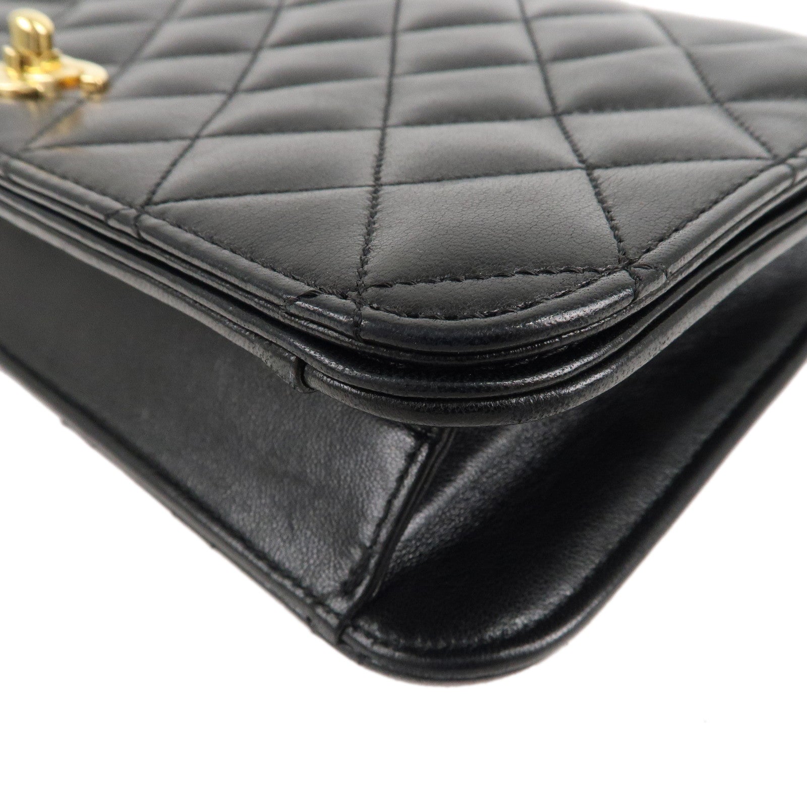 CHANEL Matelasse Lamb Skin Chain Shoulder Bag Black Gold HDW