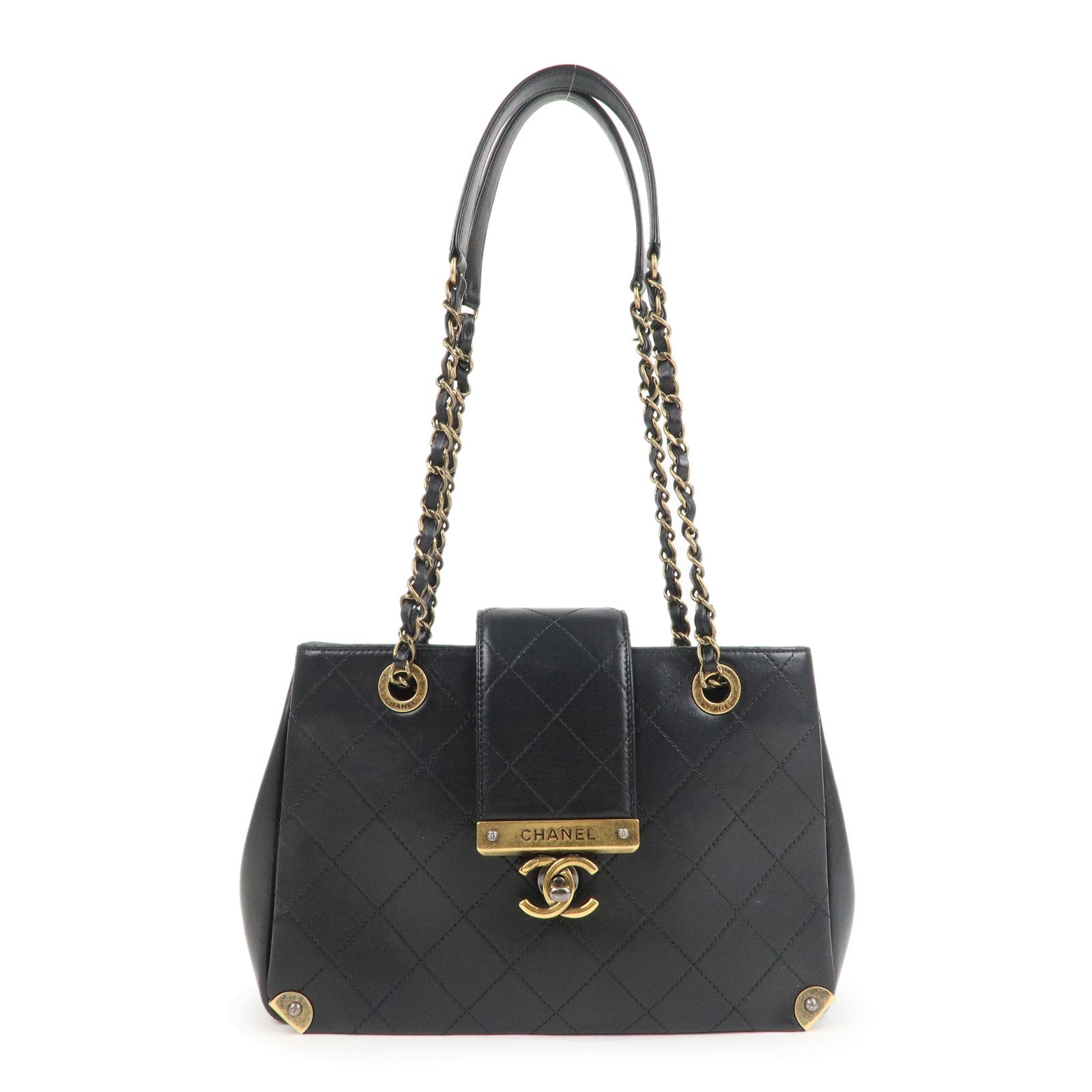 CHANEL Matelasse Lamb Skin Vintage Chain Shoulder Bag Black