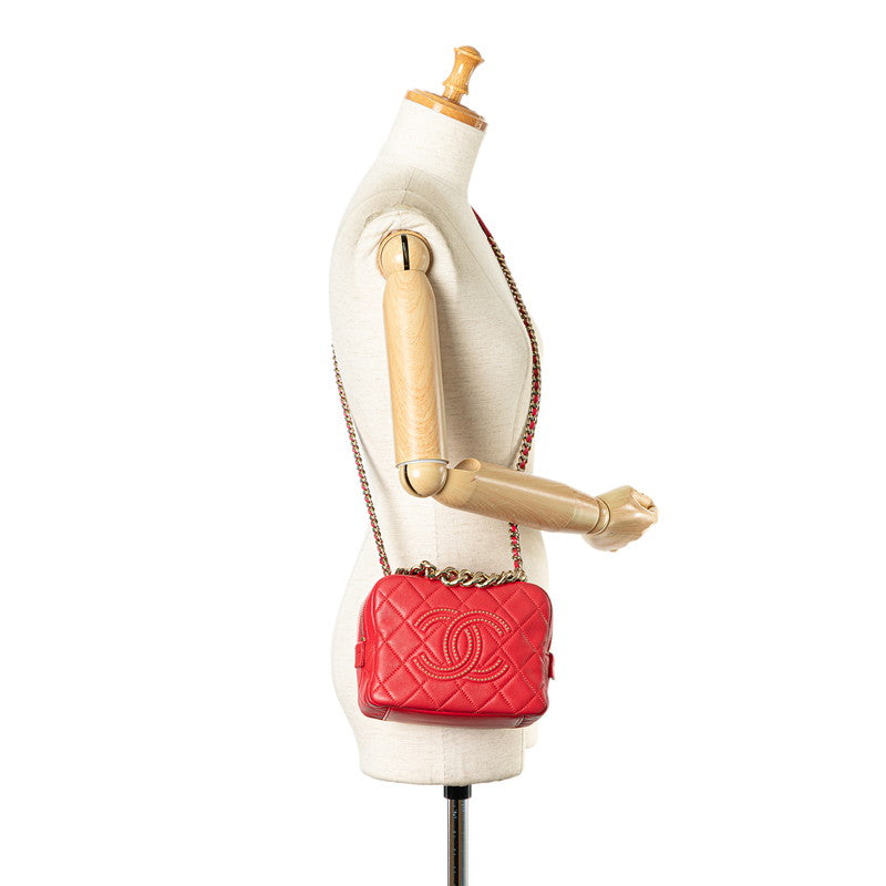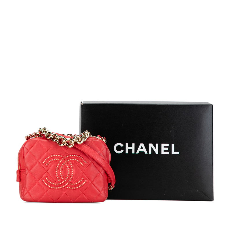 Chanel Matelasse Lambskin Handbag Shoulder Bag Red
