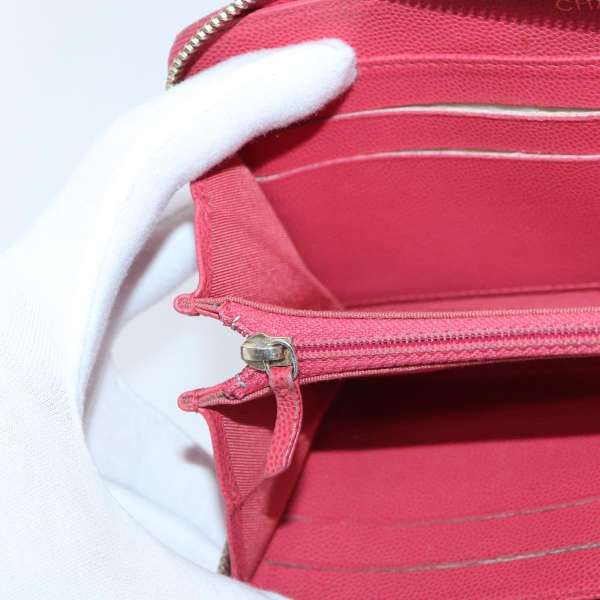 CHANEL Matelasse Long Wallet Caviar Skin Pink Gold CC yk15041
