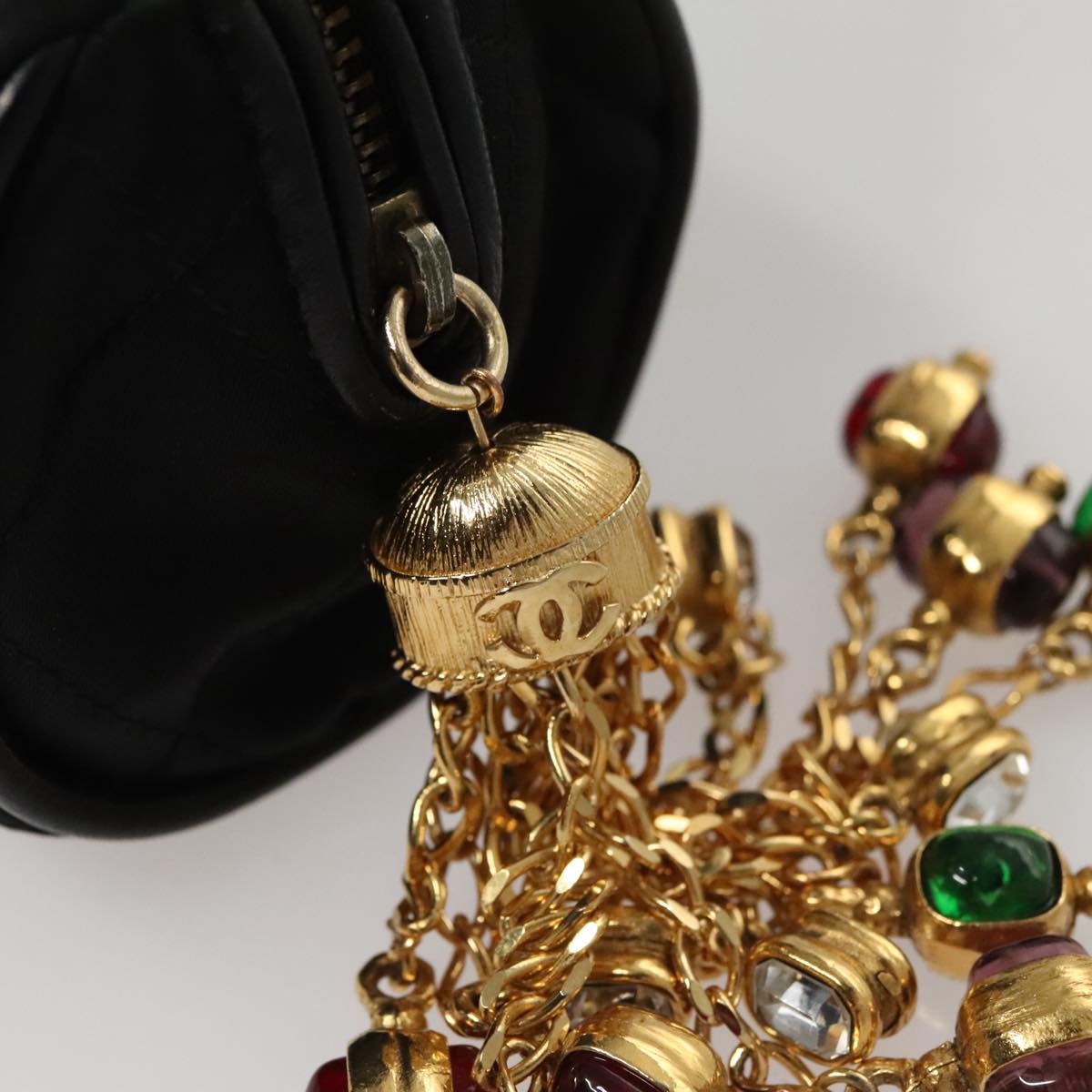CHANEL Matelasse Pouch Nylon Black Gold CC 107851