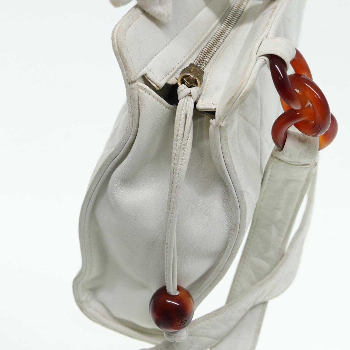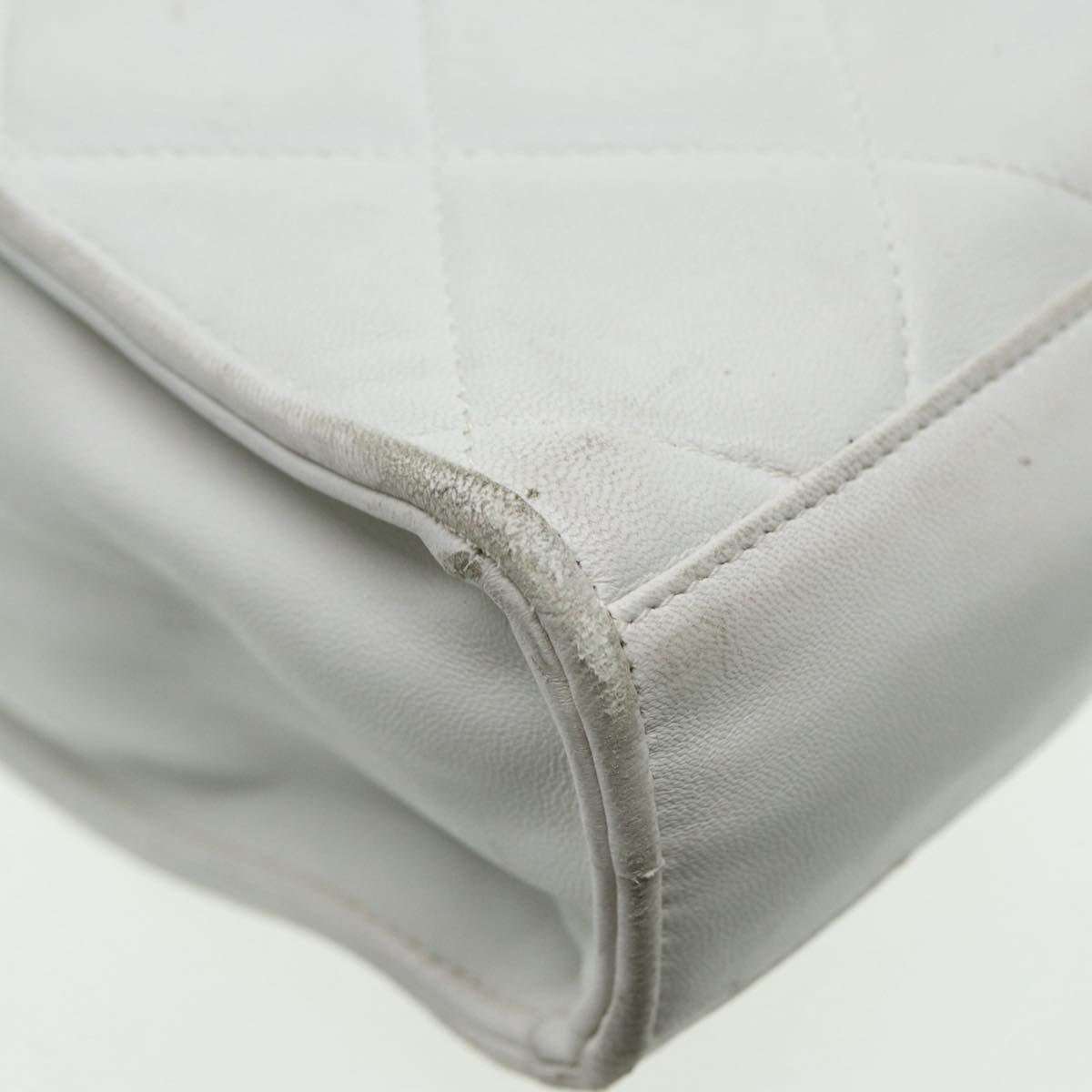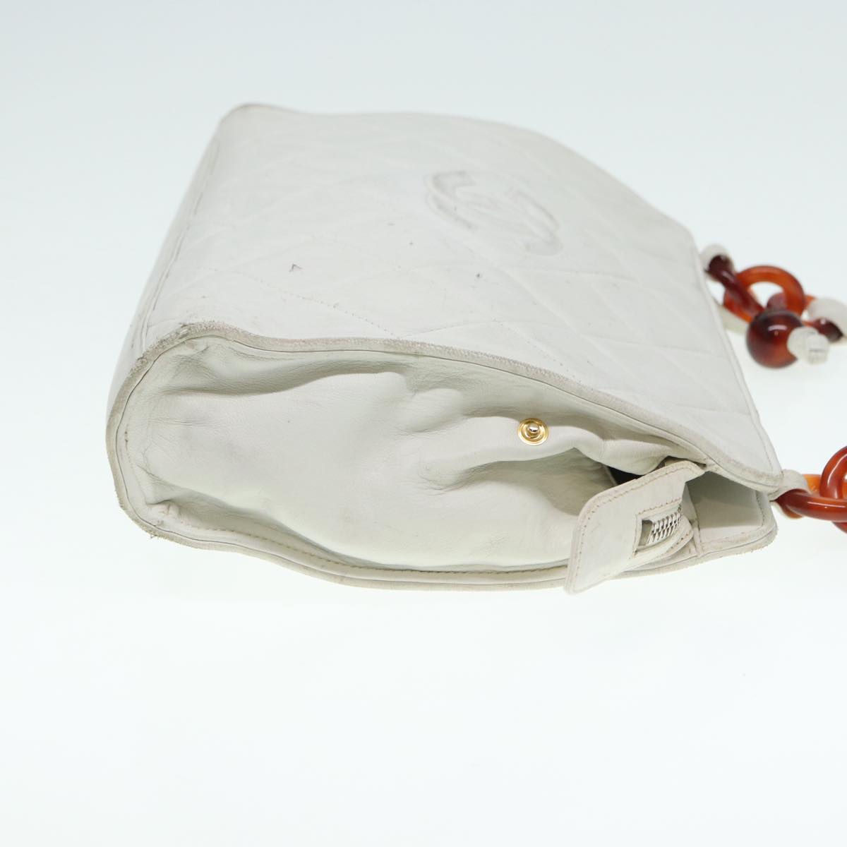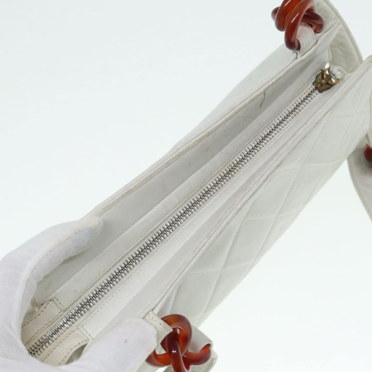 CHANEL Matelasse Shoulder Bag Lamb Skin White Gold CC bs17156