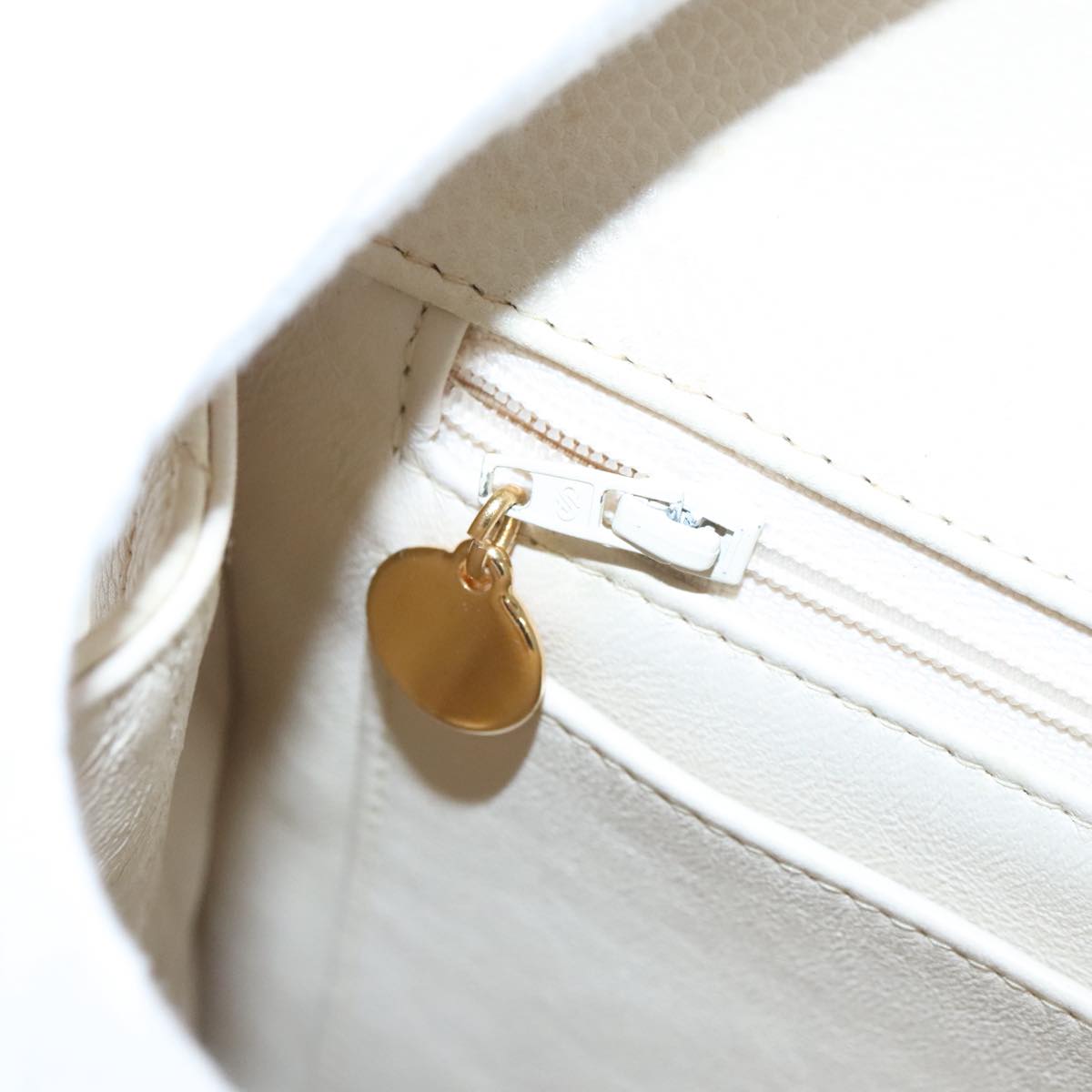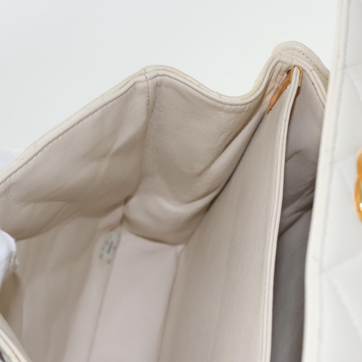 CHANEL Matelasse Shoulder Bag Lamb Skin White Gold CC yk15665A