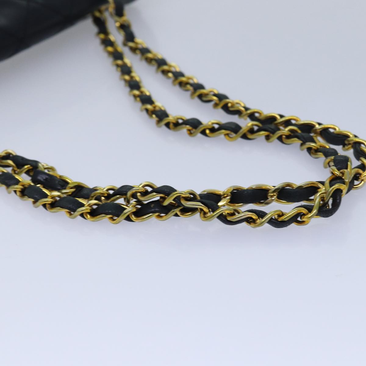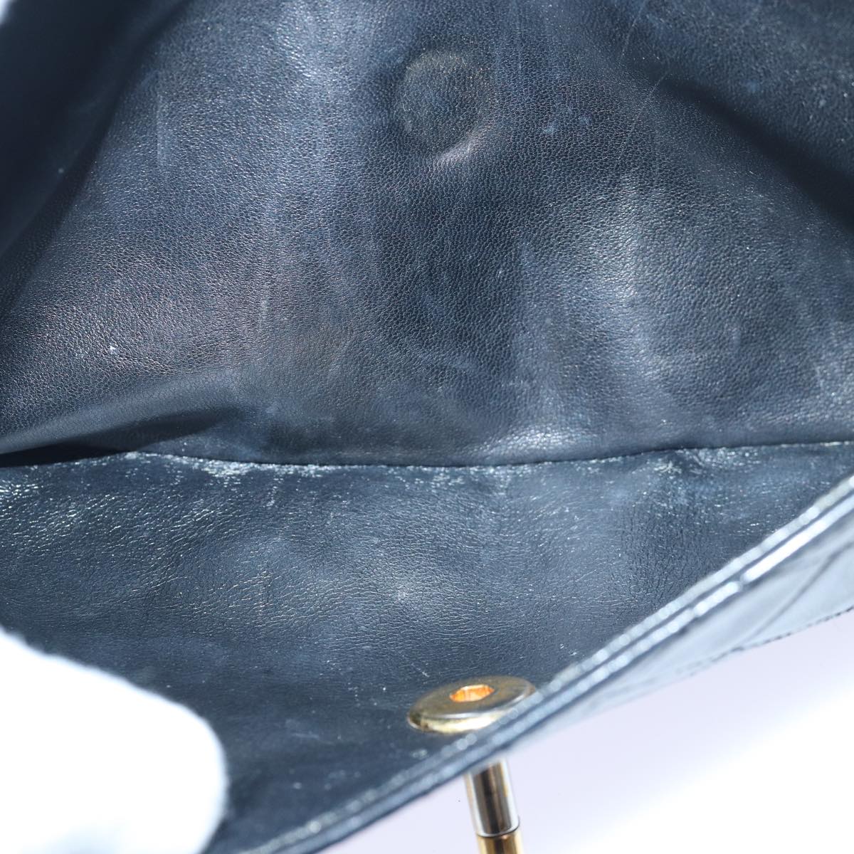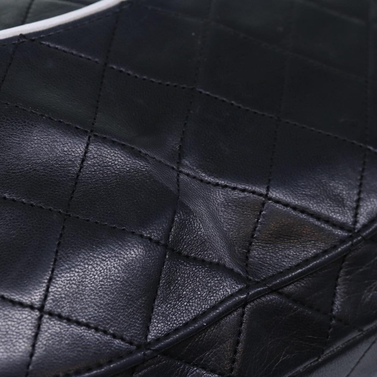 CHANEL Matelasse Turn Lock Chain Bag Lamb Skin Black White CC yk13824