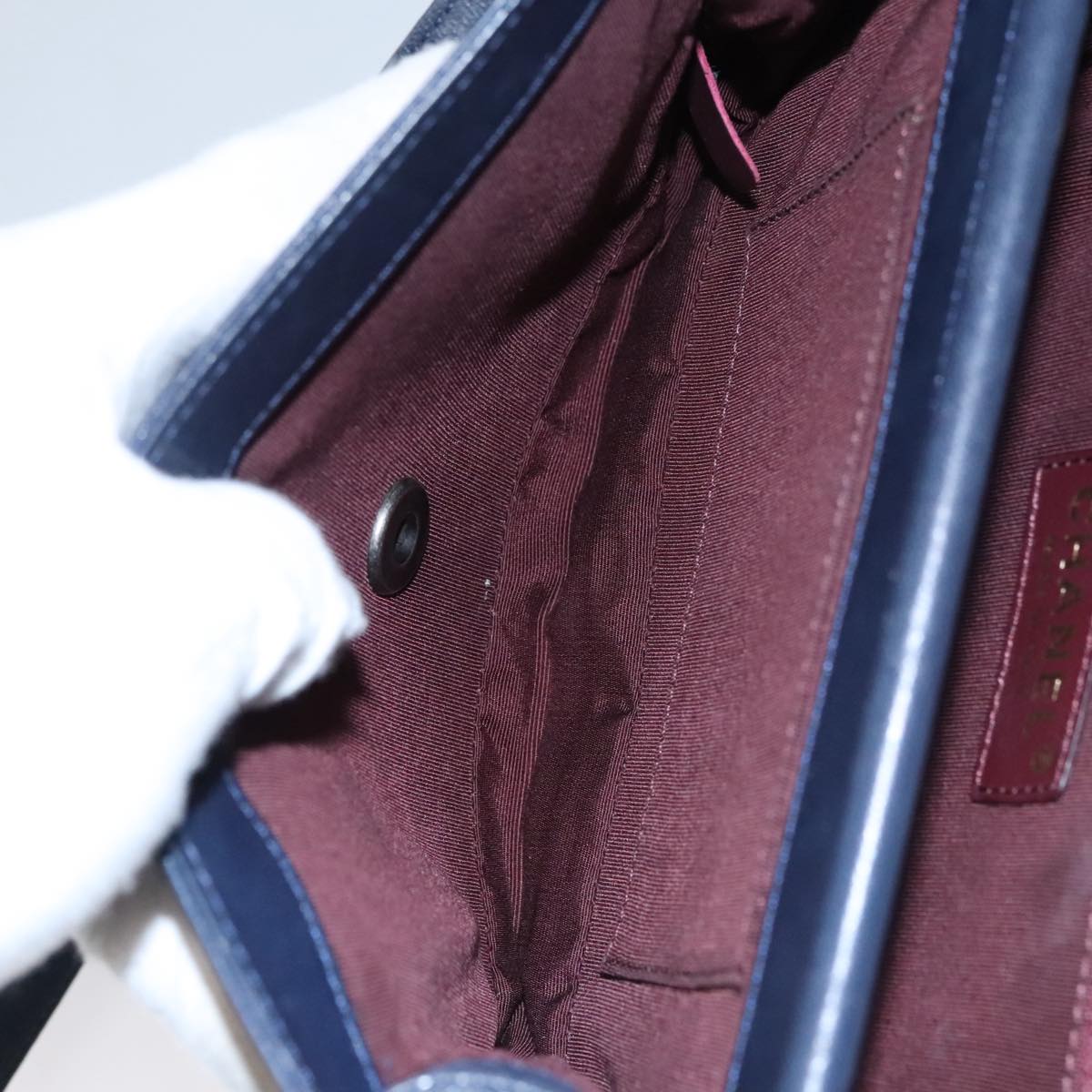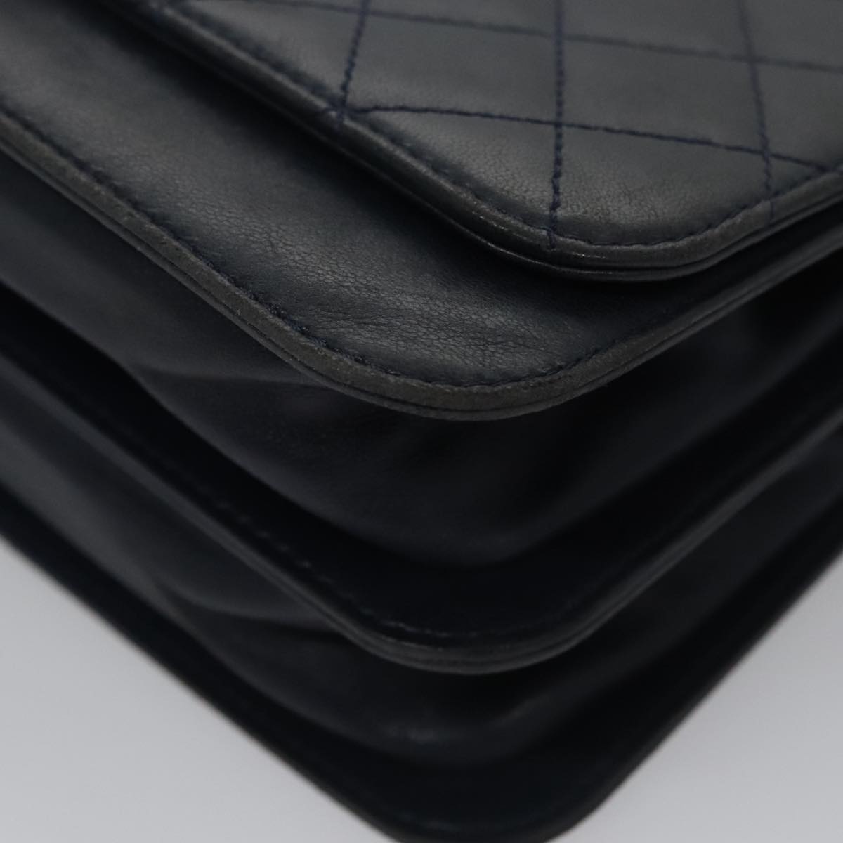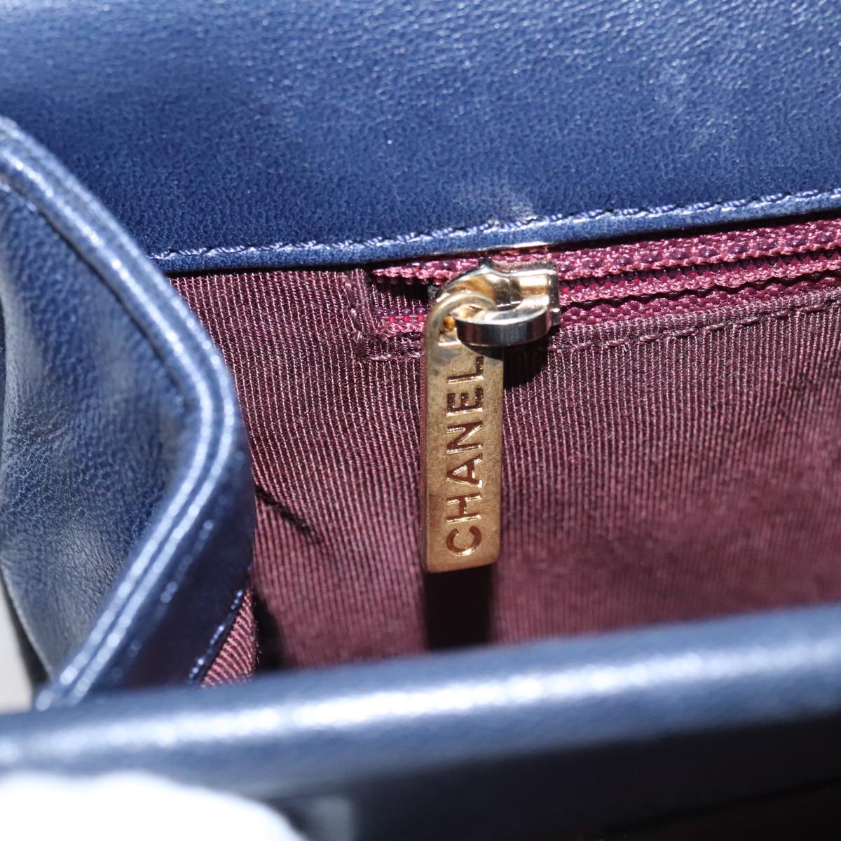 CHANEL Matelasse Turn Lock Chain Hand Bag Leather 2way Navy Gold CC yk16451