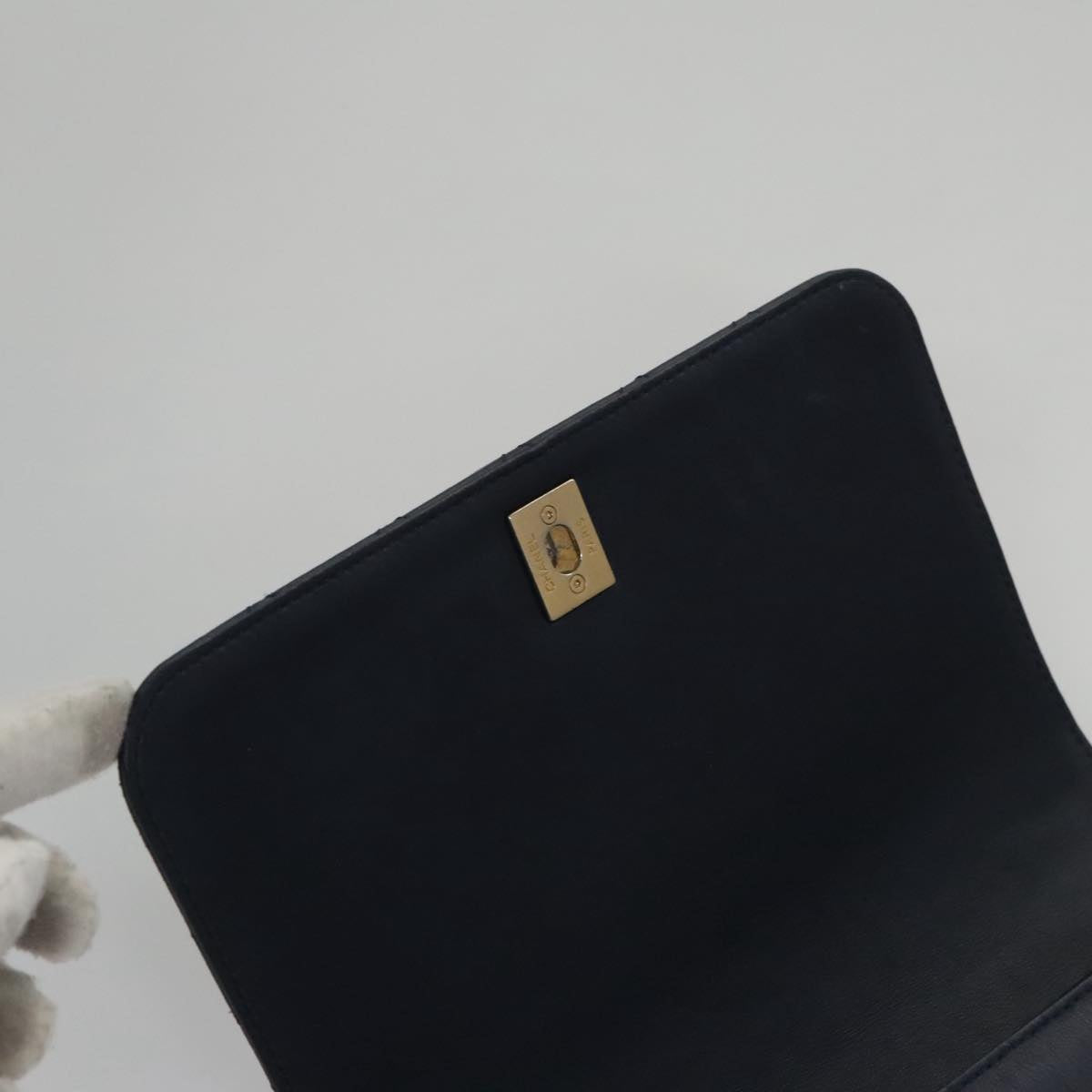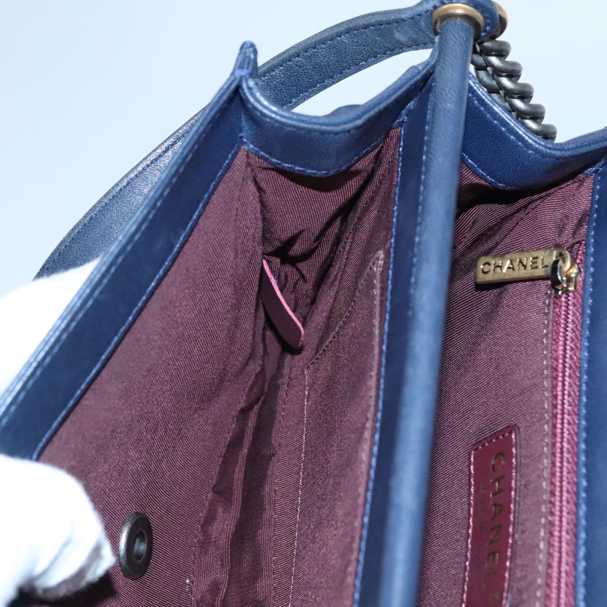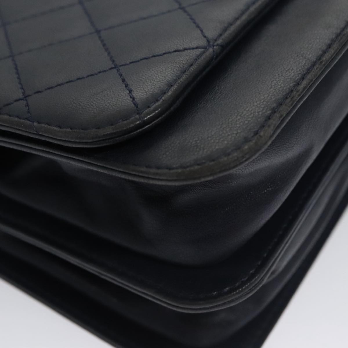 CHANEL Matelasse Turn Lock Chain Hand Bag Leather 2way Navy Gold CC yk16451