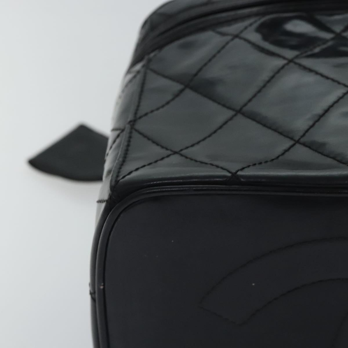 CHANEL Matelasse Vanity Cosmetic Pouch Patent leather Black Gold CC bs18324