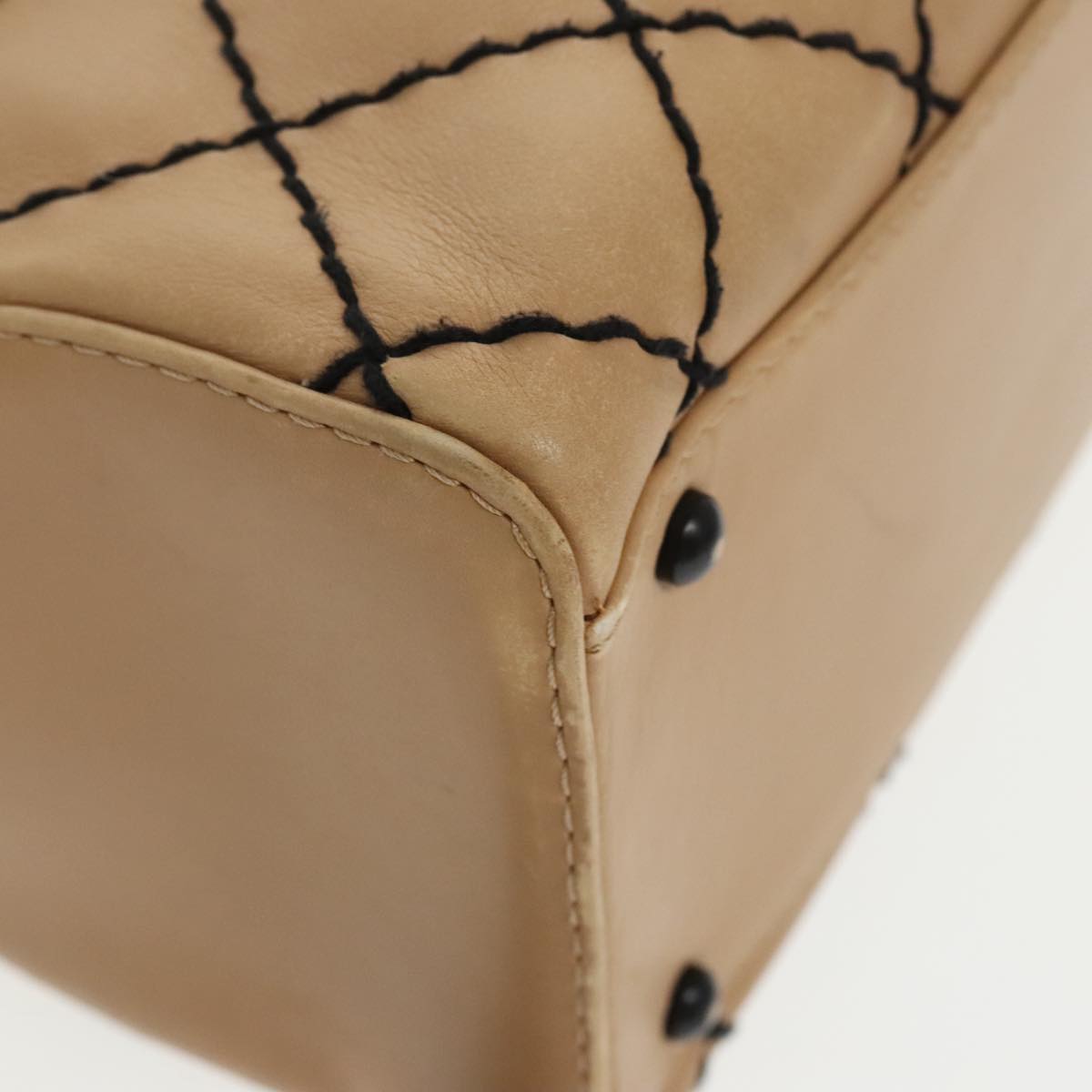 CHANEL Matelasse Wild Stitch Hand Bag Leather Beige CC bs19424