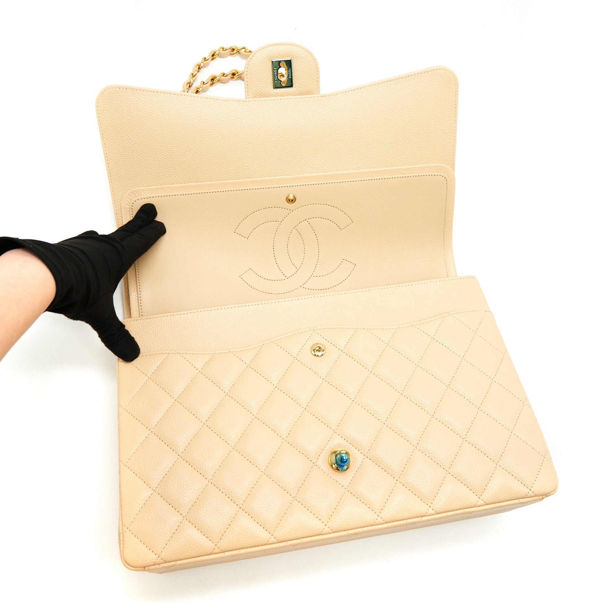 Chanel Maxi Classic Double Flap Bag Caviar beige GHW