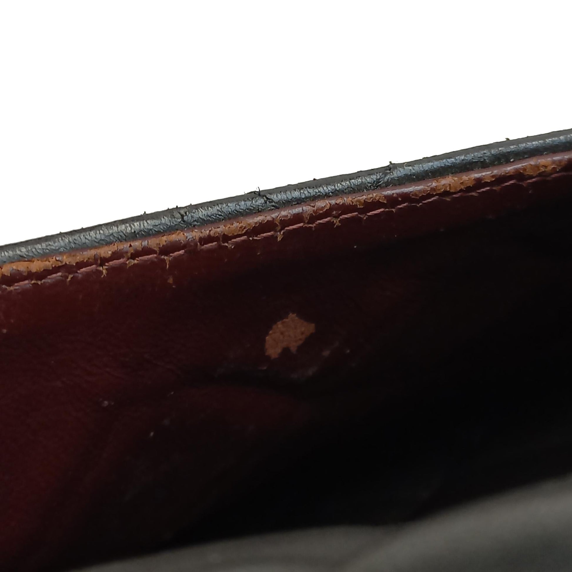 Condition Notes: Exterior Front Out Of Shape, Scratched. Exterior Back Scratched, Worn. Exterior Bottom Cut Stitching, Scratched. Exterior Handle Discolored. Exterior Pocket Discolored, Peeling. Exterior Pocket stained with Other. Exterior Corners Discolored, Scratched. Exterior Side Cut Stitching, Peeling, Worn. Exterior Top Discolored, Peeling. Interior Lining Discolored, Scratched. Interior Pocket Discolored, Scratched. Lock Rusty/Tarnished, Scratched. Embellishment Scratched. Practical Attachment Scratched.