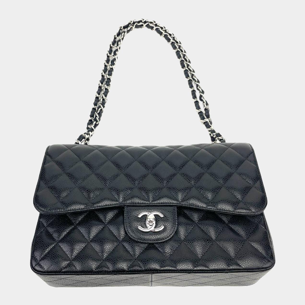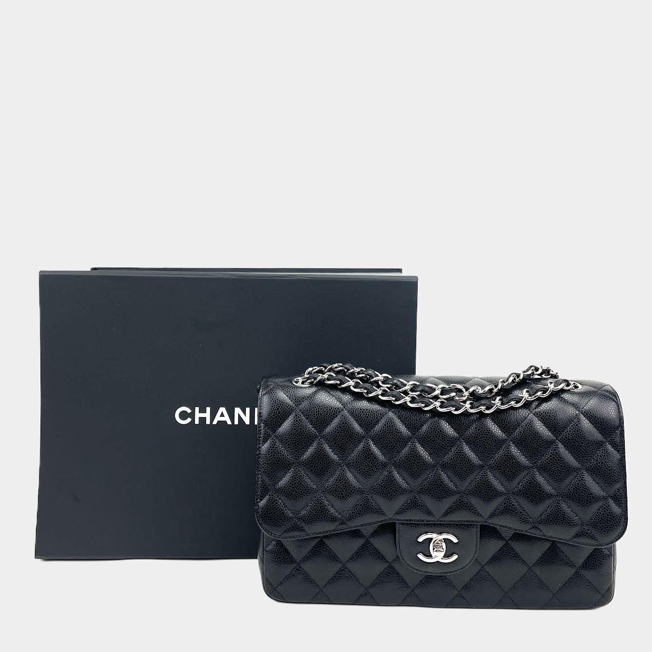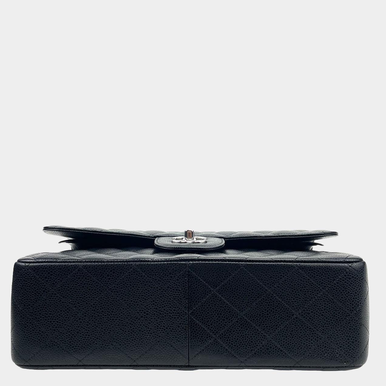 CHANEL 2018-2019 Jumbo Double Flap Bag Black Caviar Leather