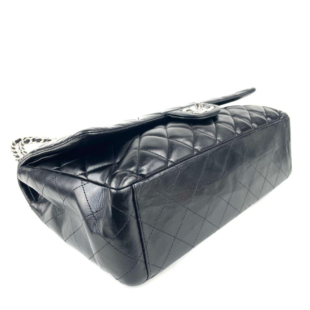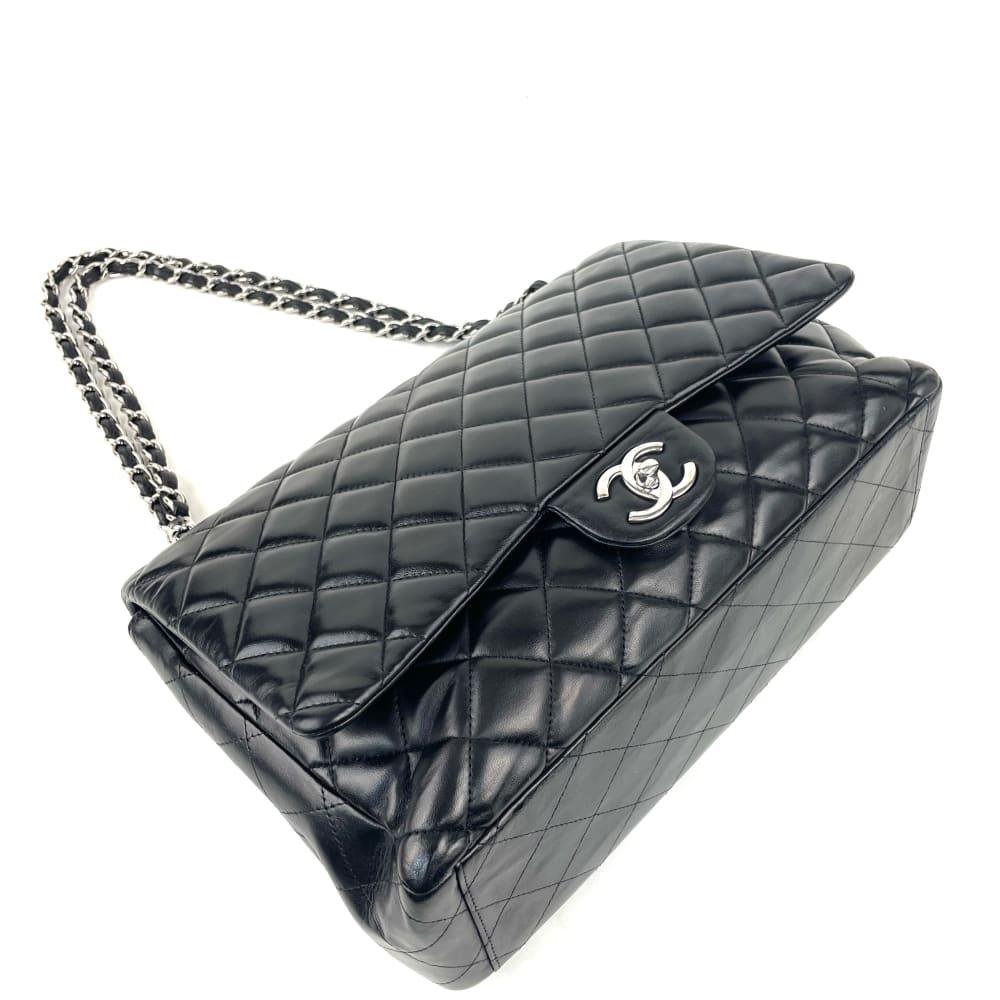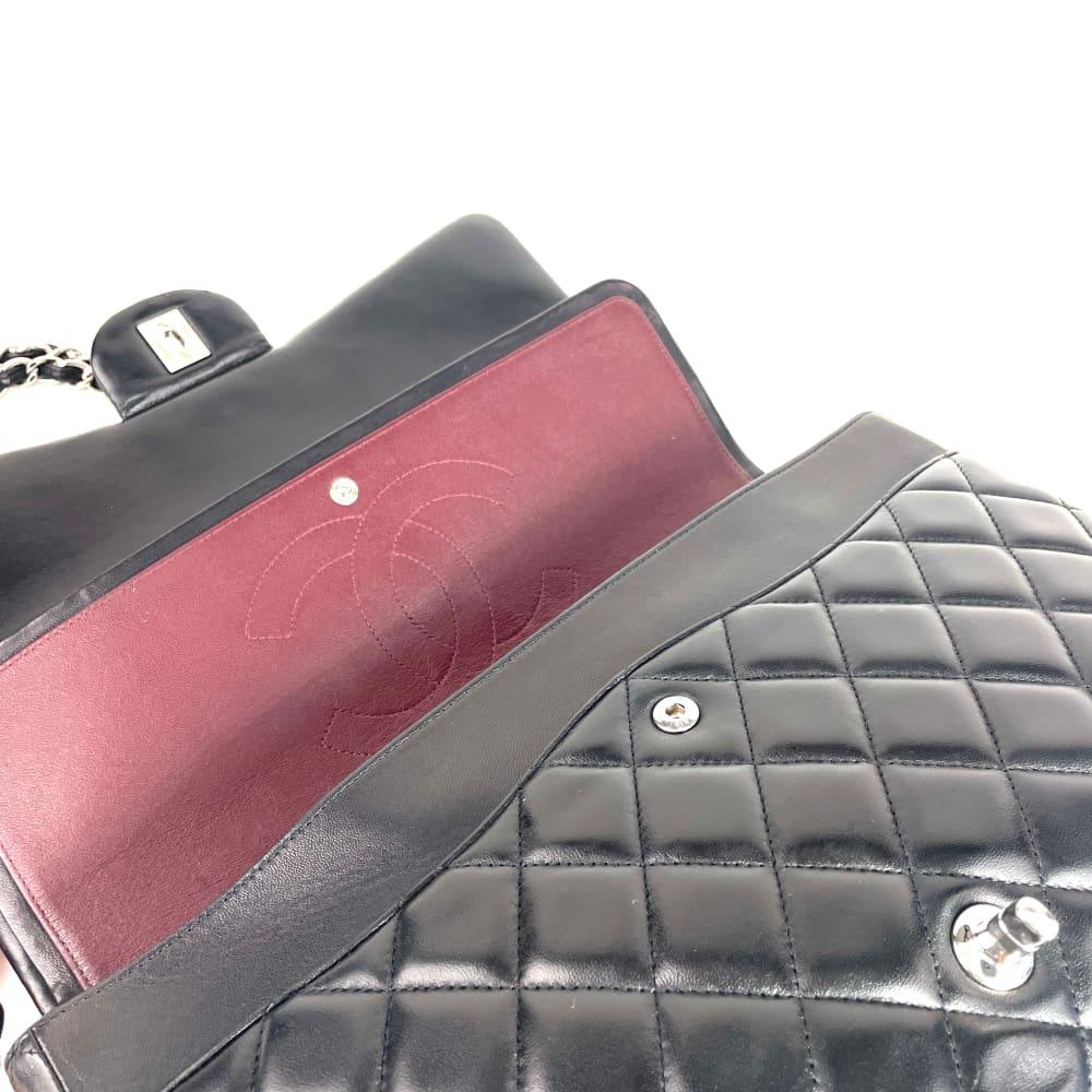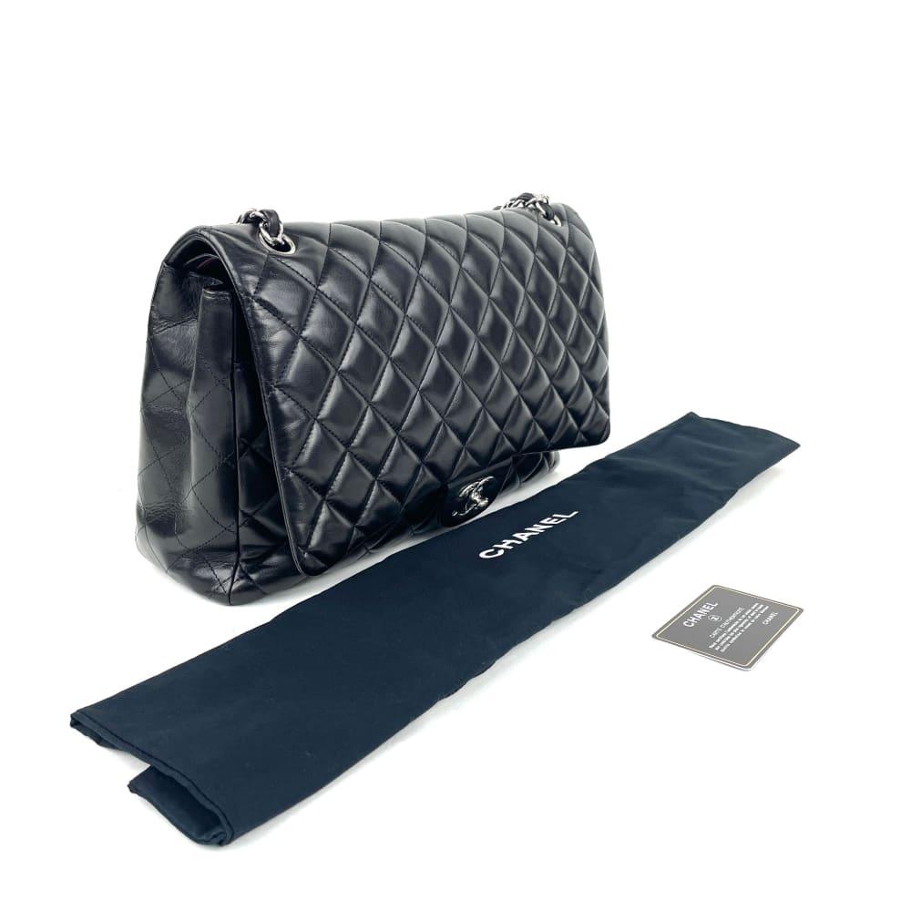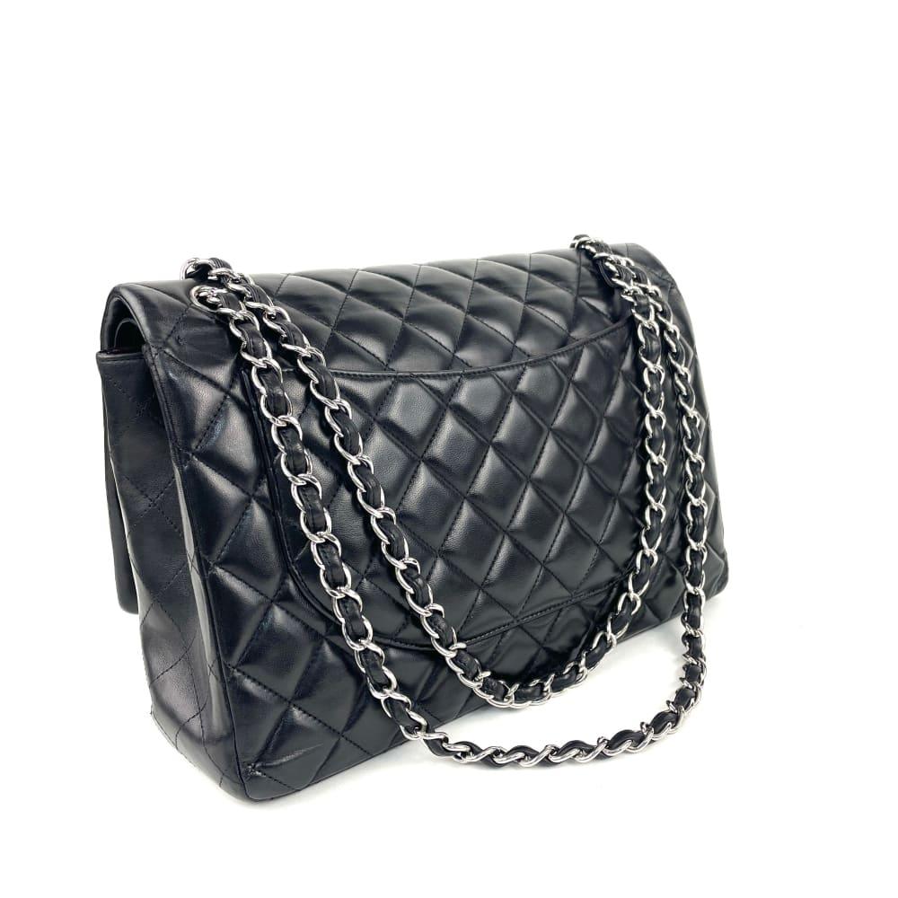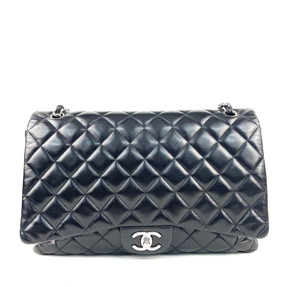 CHANEL Maxi Double Flap Bag Black Lambskin Leather