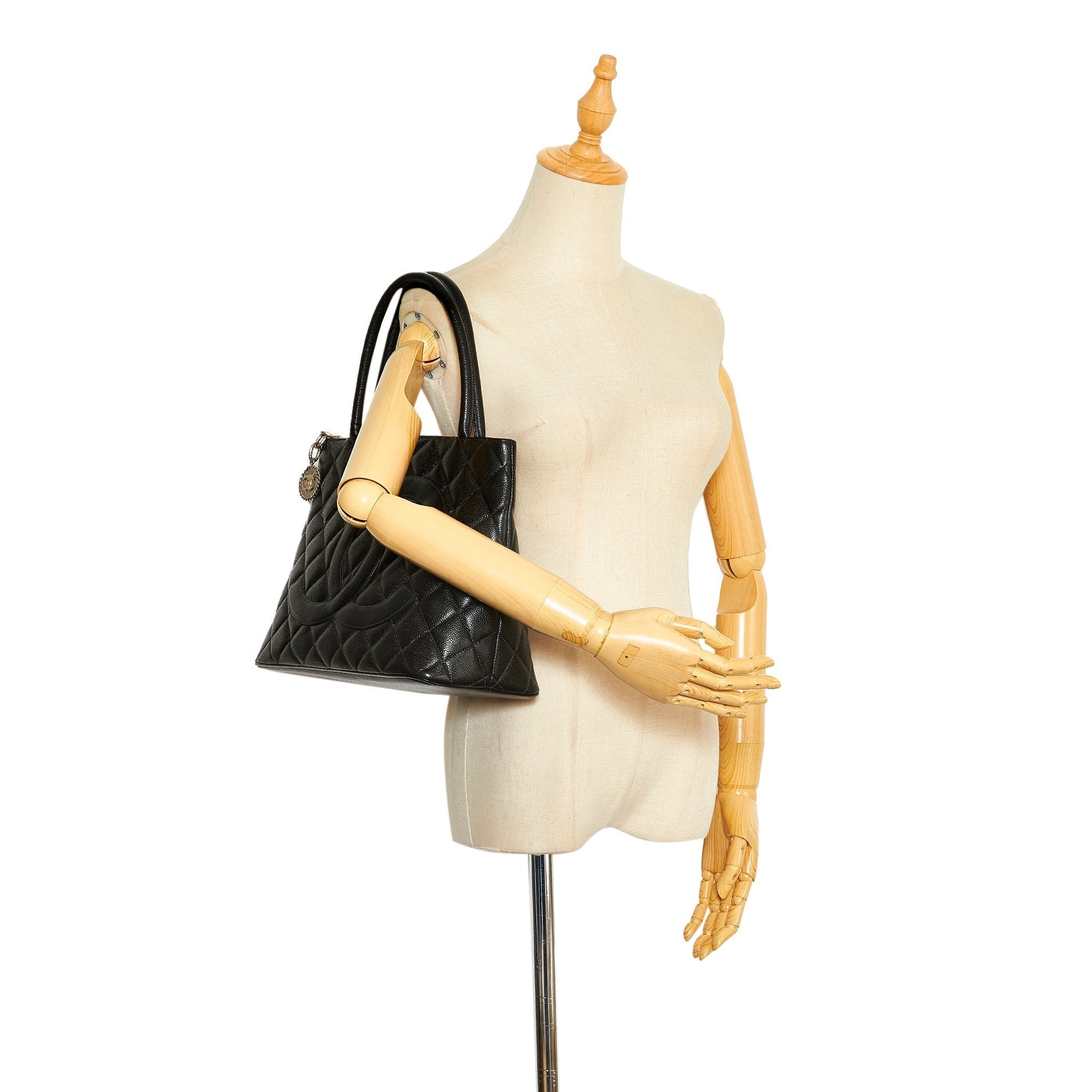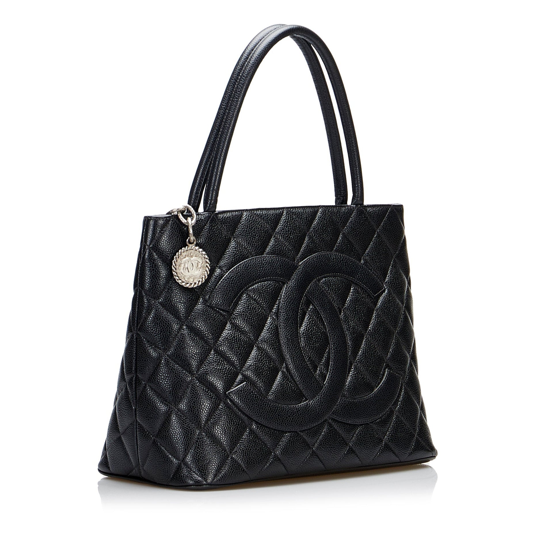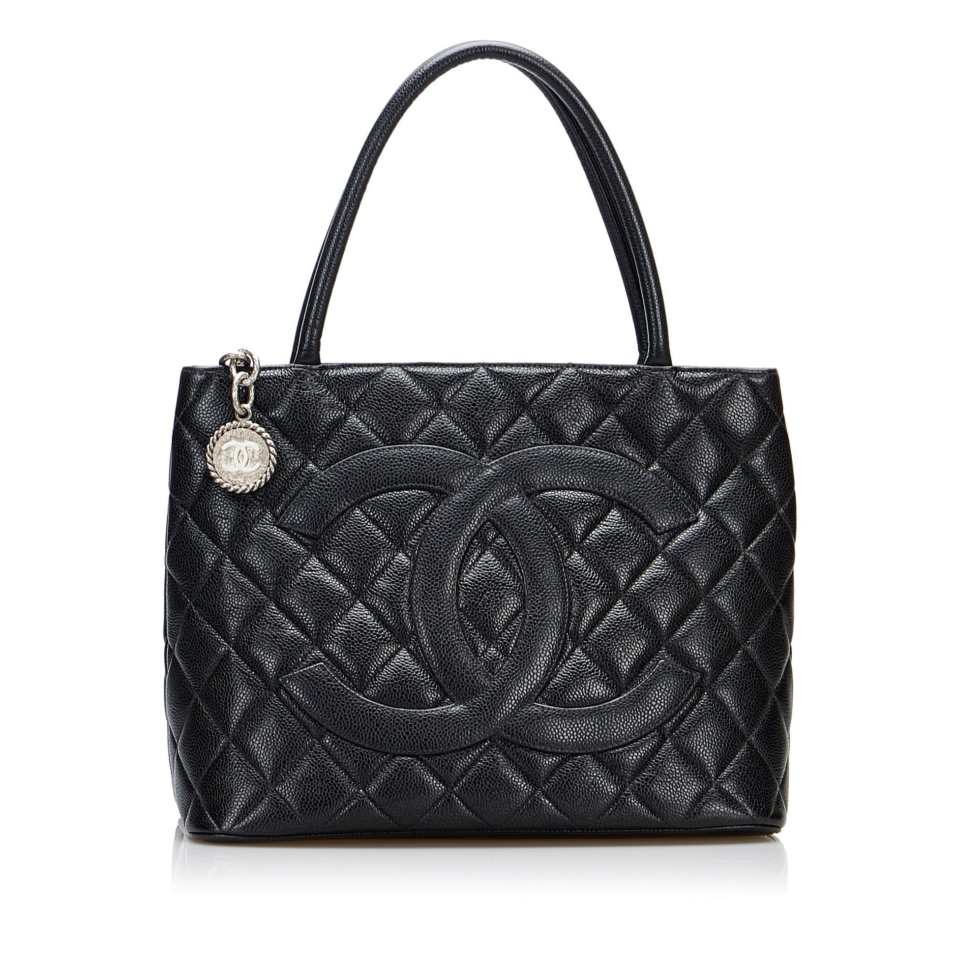 Chanel Medallion Tote Bag Black Caviar Silver