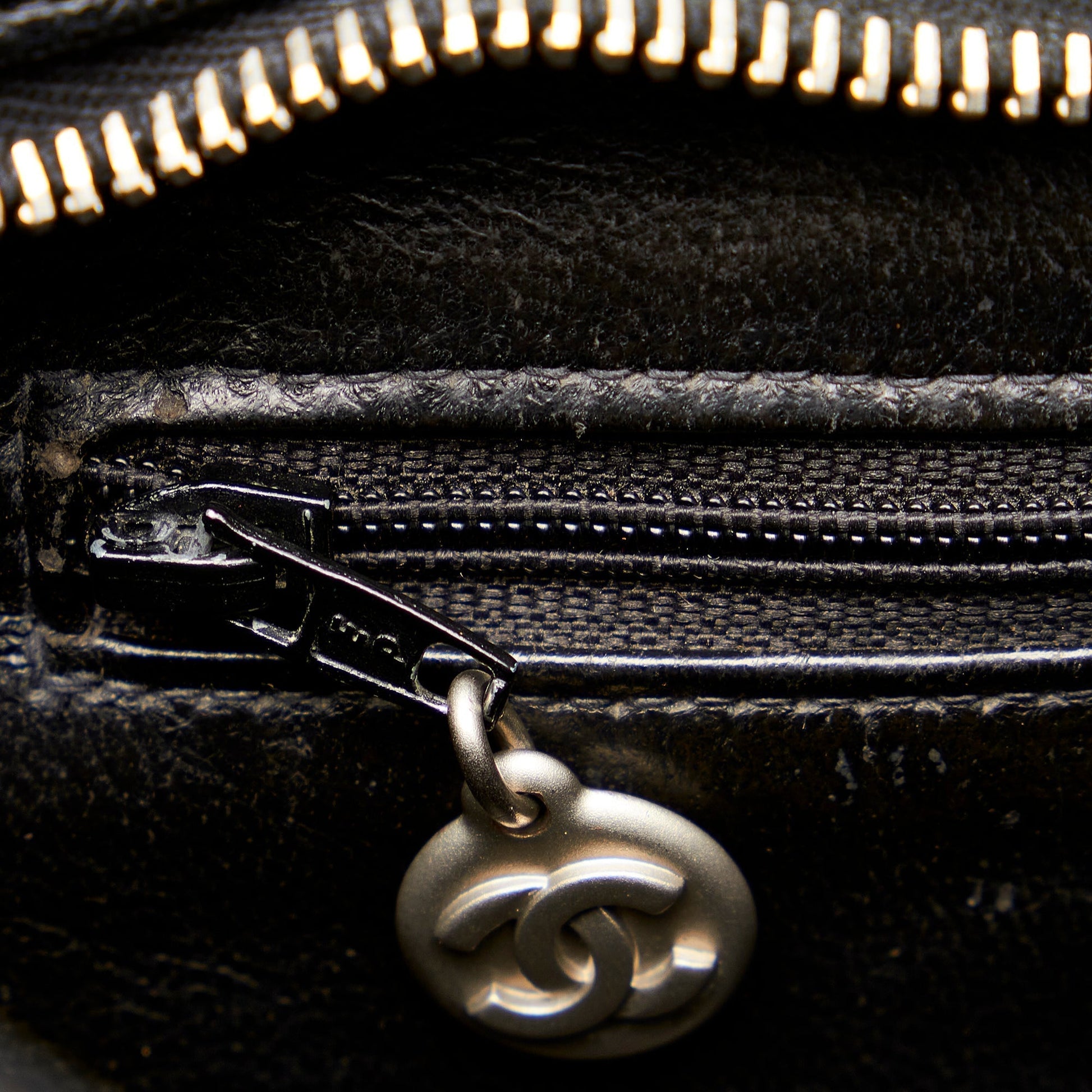 This cool Chanel Medallion Tote Bag is made of black quilted caviar leather. The Bag features a CC logo leather trim on the front and a slip pocket on the back, and closes via a zipper with a silver Tag. Inside the Bag there is a compartment with a zipper. The Bag is best worn in the hand or on the arm.
