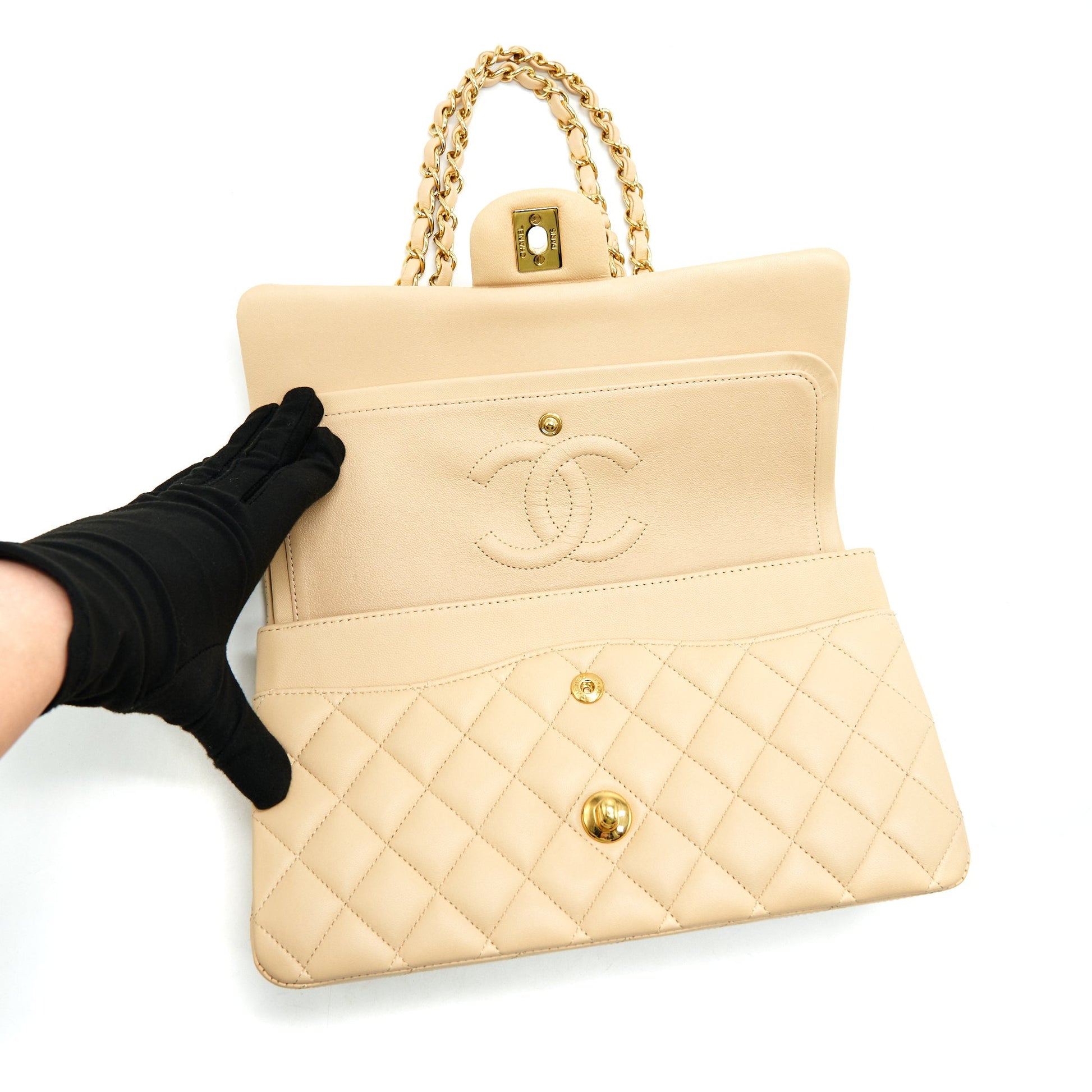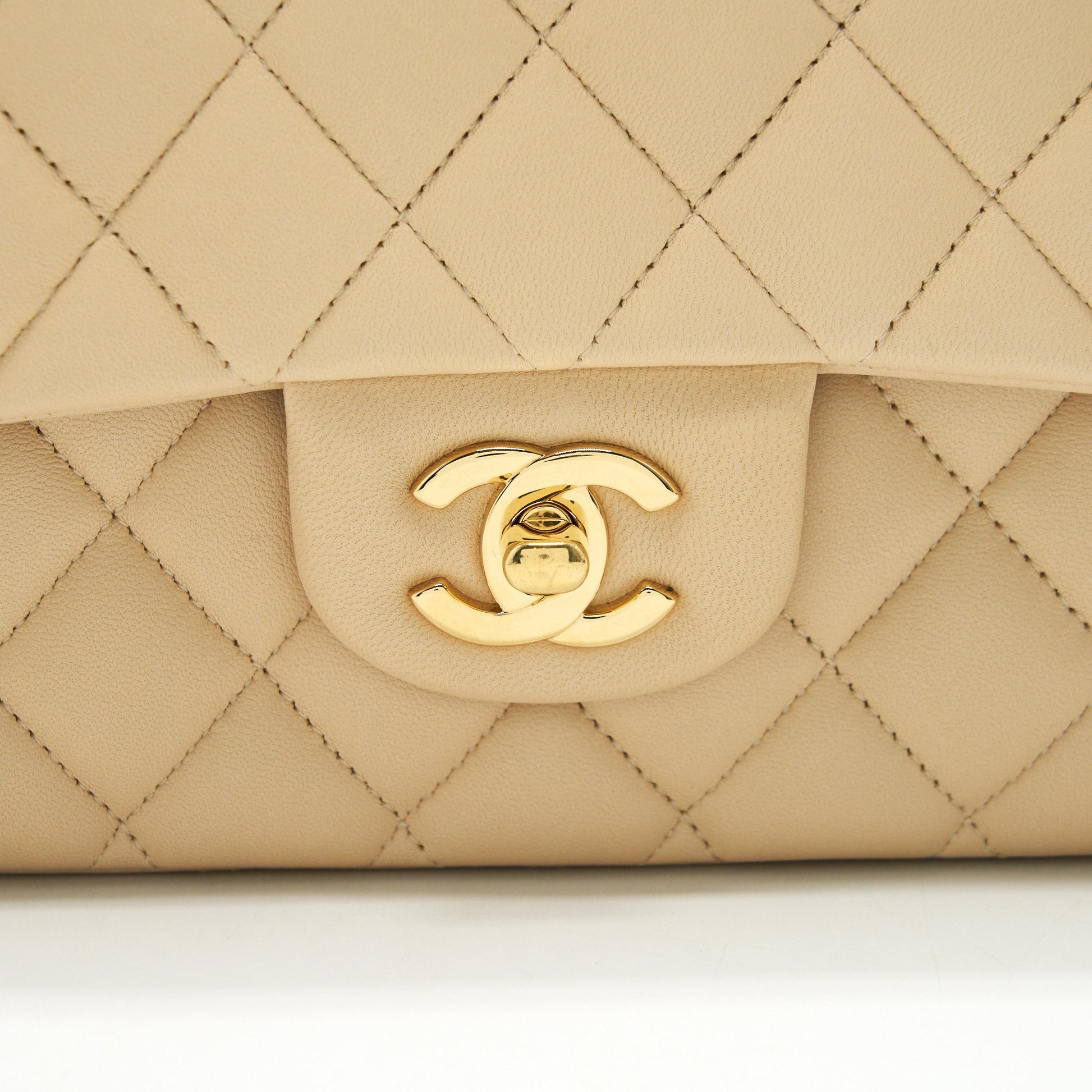 CHANEL MEDIUM CLASSIC DOUBLE FLAP LAMBSKIN BEIGE WITH GHW