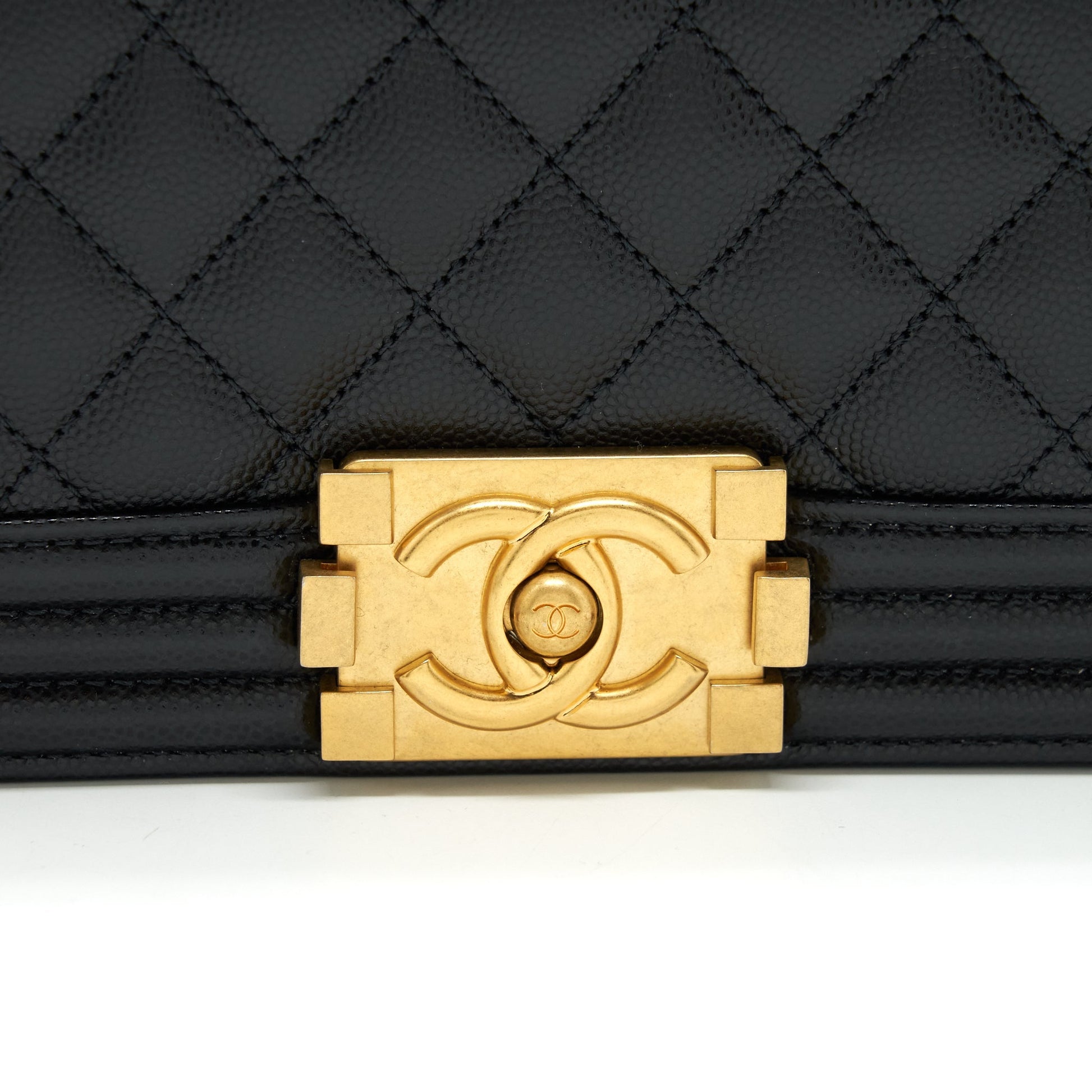 Chanel Medium Boy Bag Caviar Black With Brushed GHW (Microchip)
