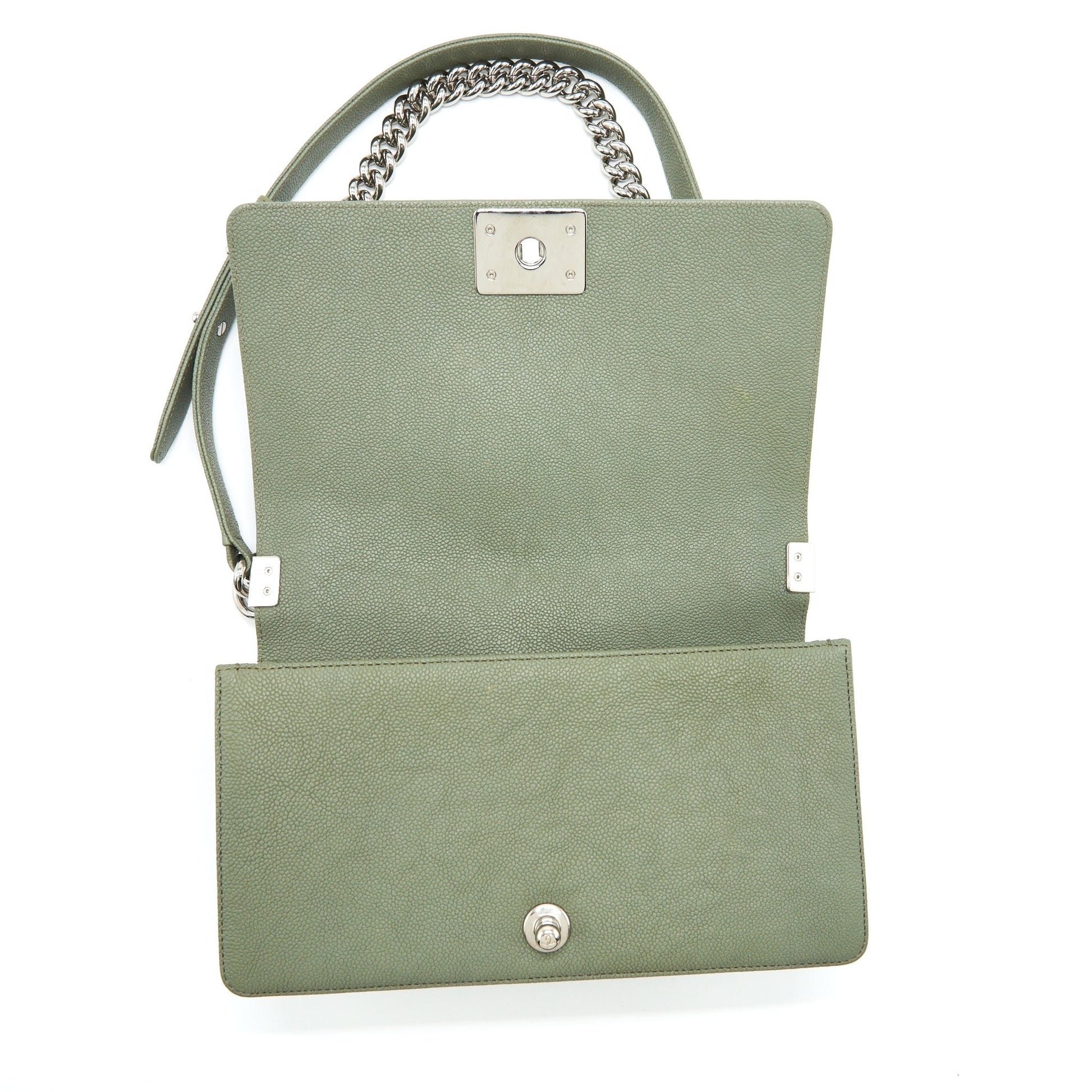 Chanel Medium Boy Bag Caviar Light Green SHW