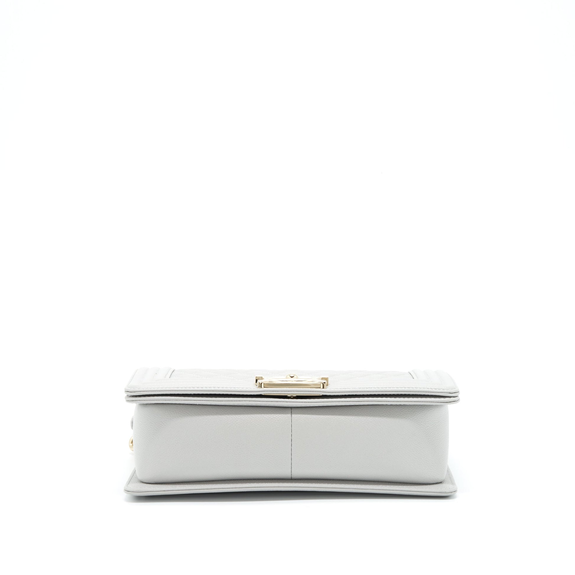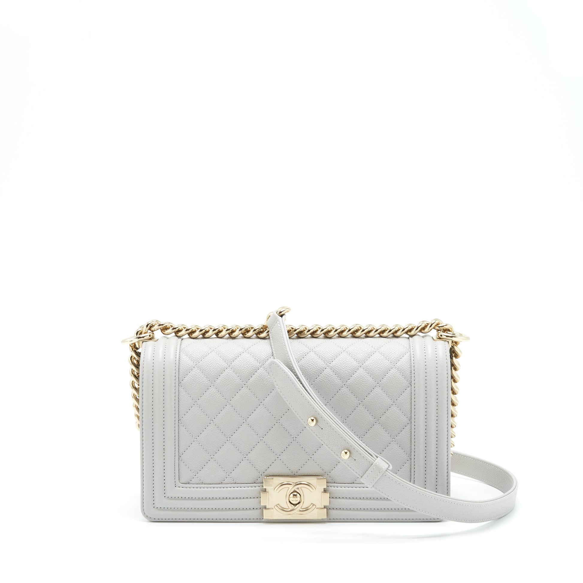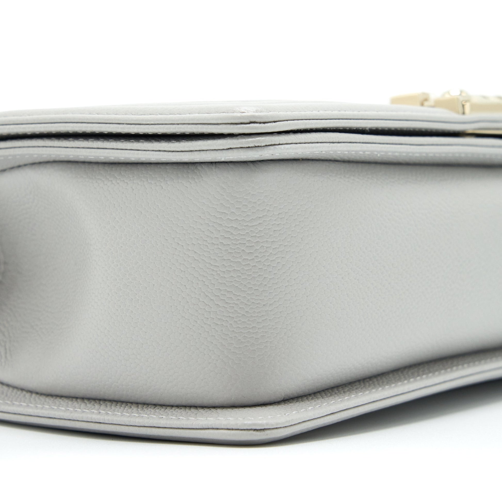 Chanel Medium Boy Bag Caviar Light Grey SHW (Microchip)