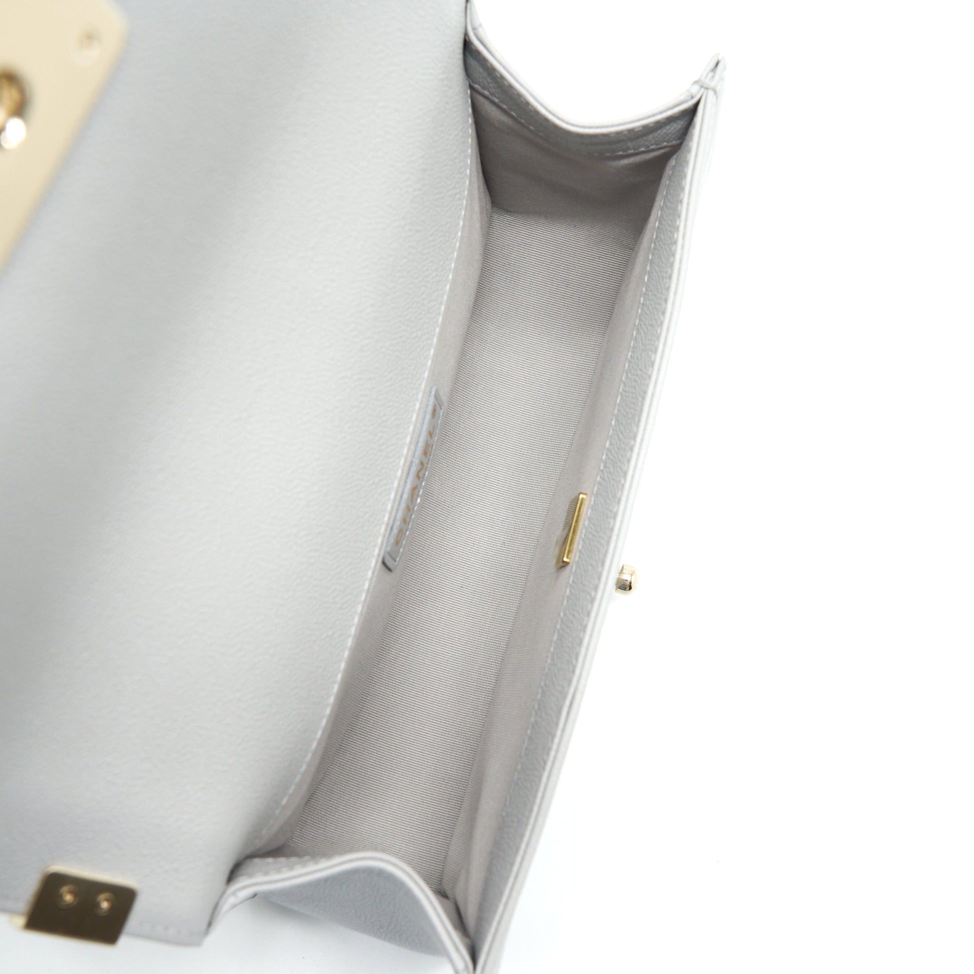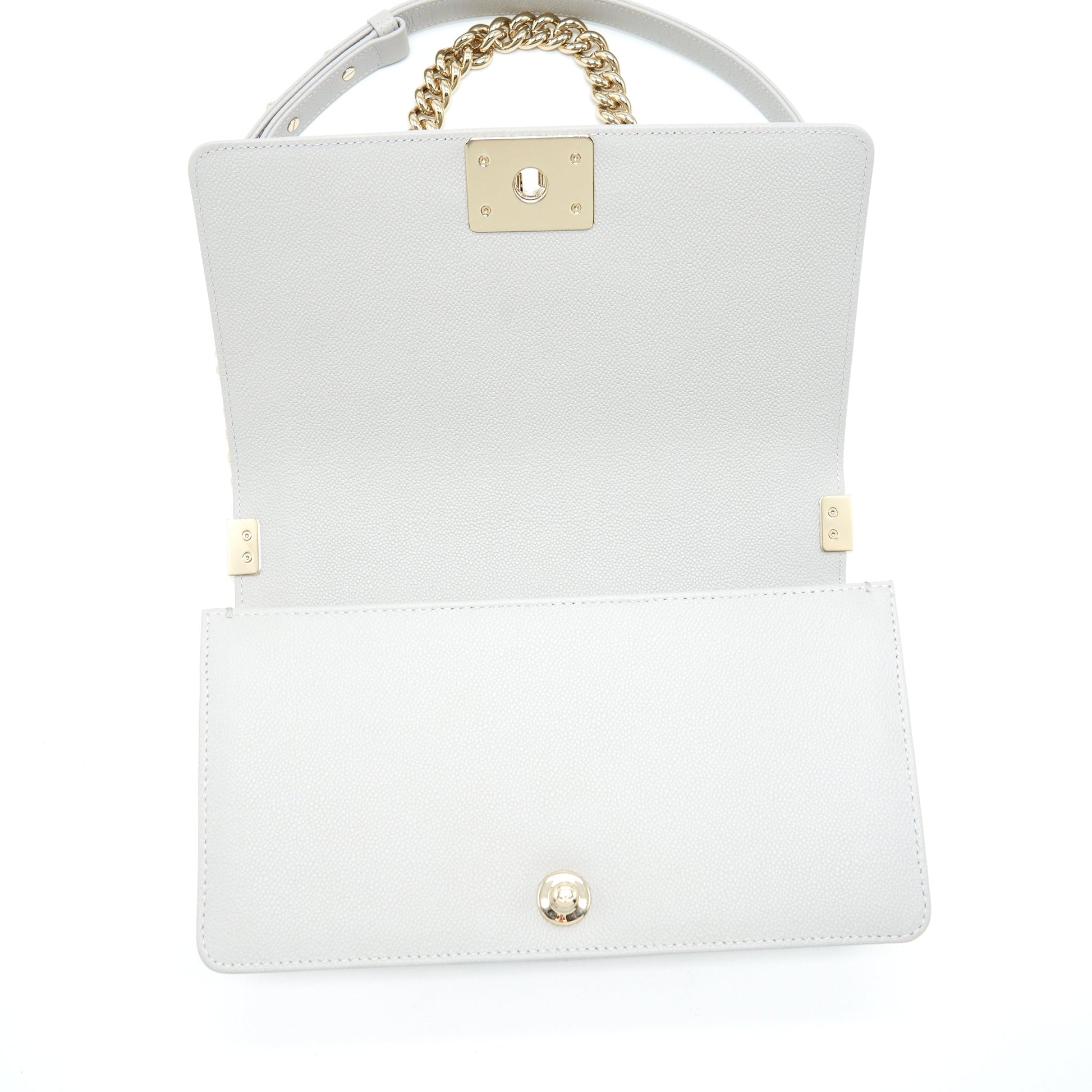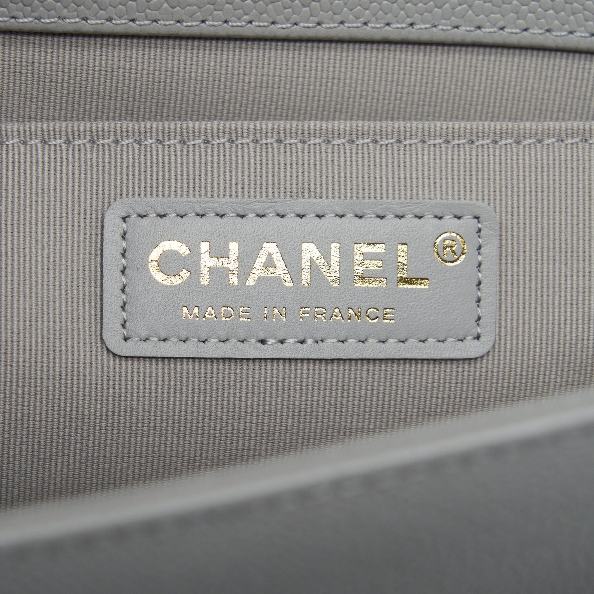 Chanel Medium Boy Bag Caviar Light Grey SHW (Microchip)