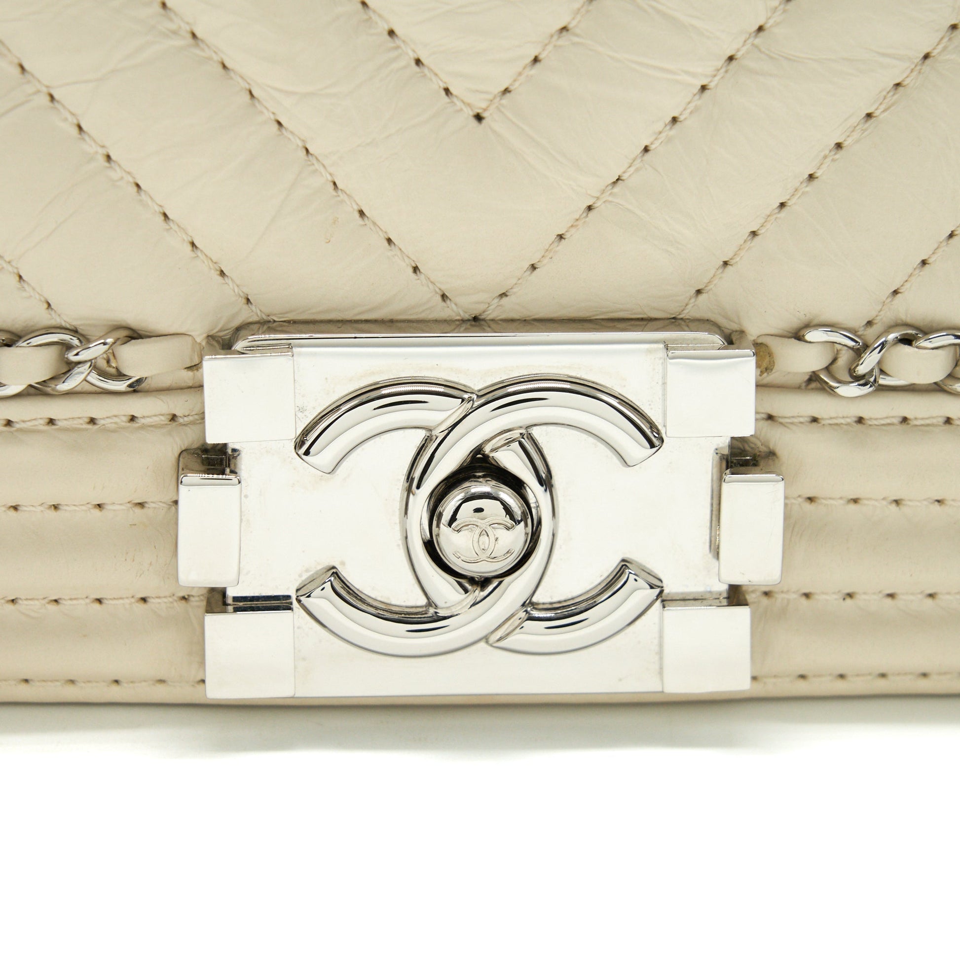 Chanel Medium Boy Bag Chevron Limited Calfskin Ivory SHW