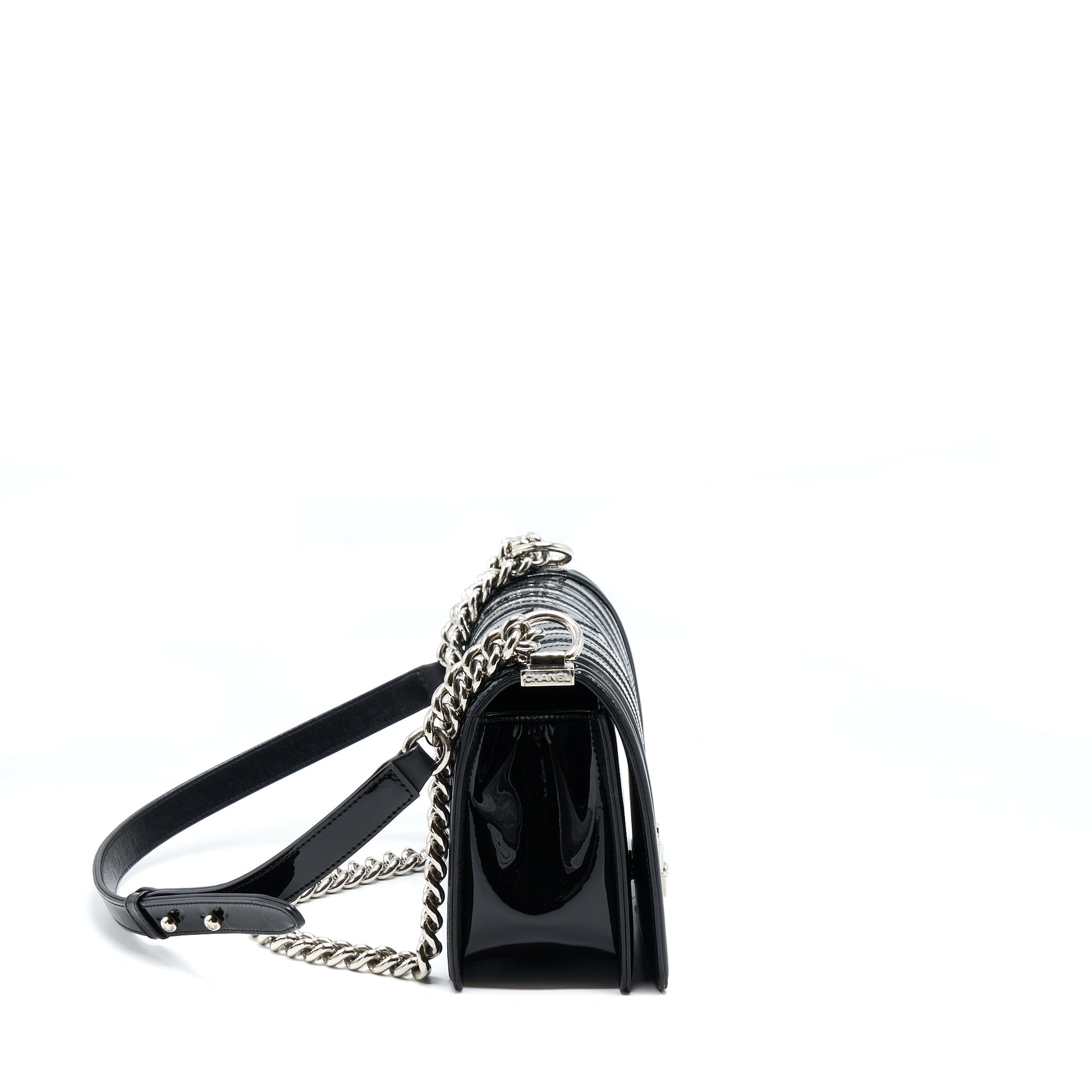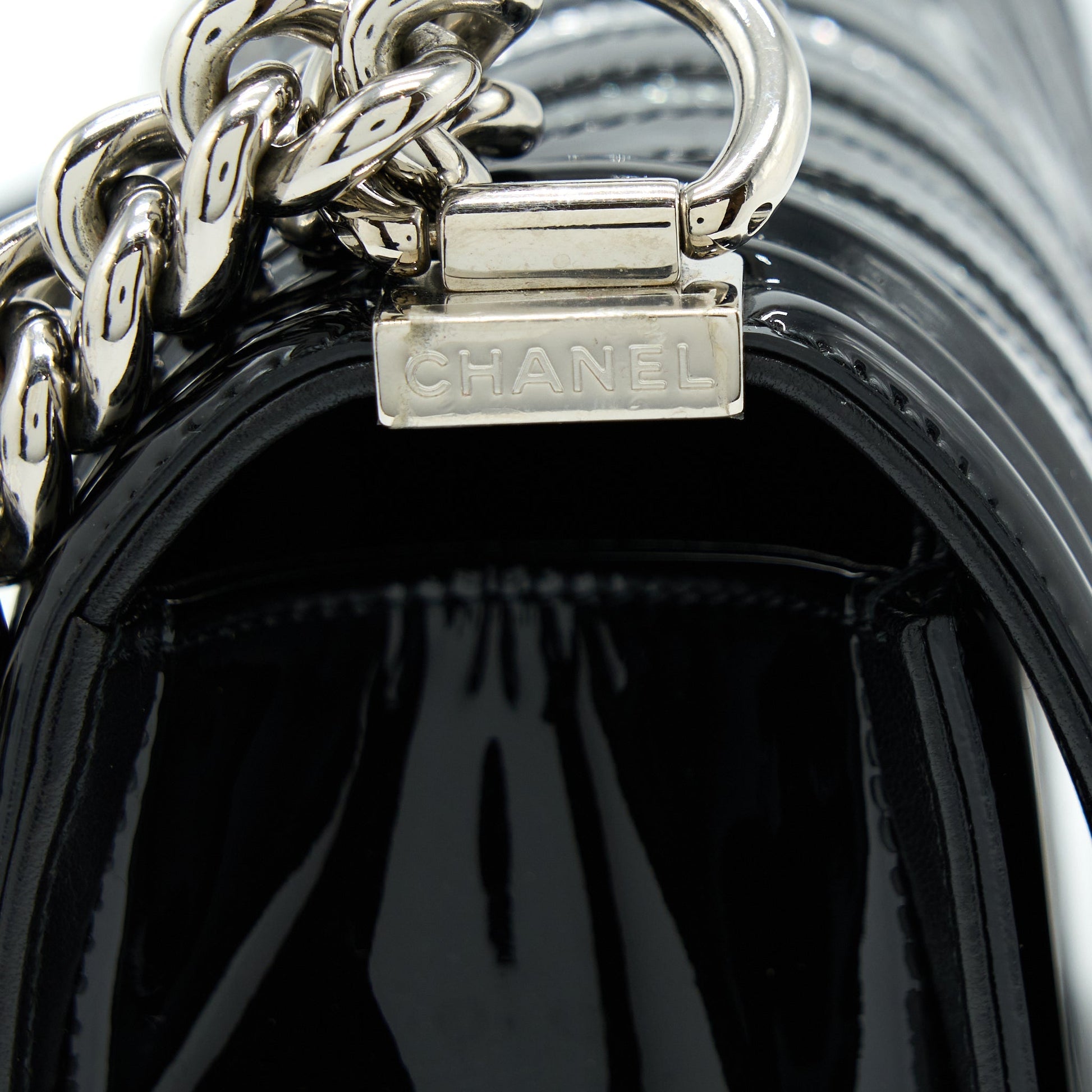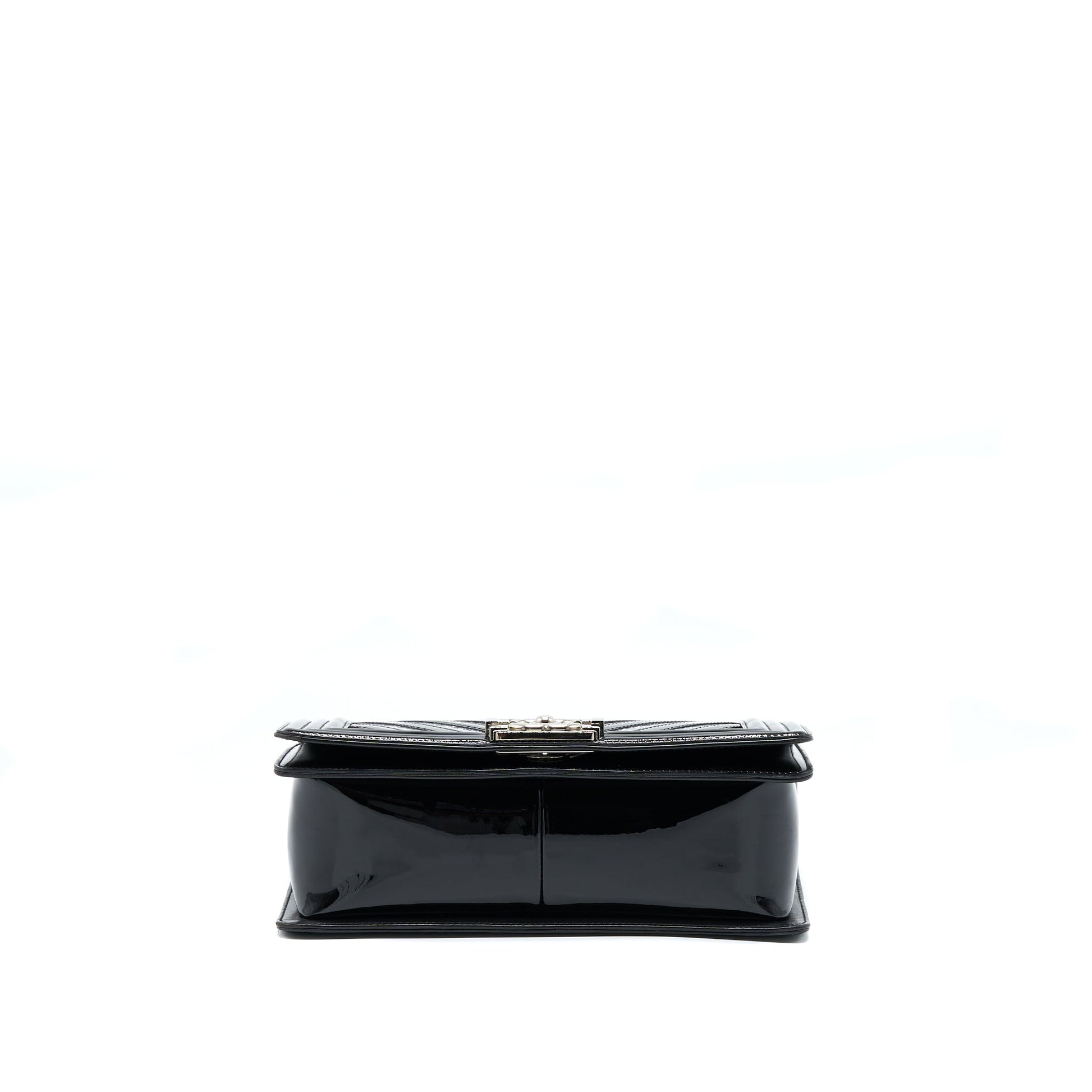 Chanel Medium Boy Bag Chevron Limited Patent Black SHW