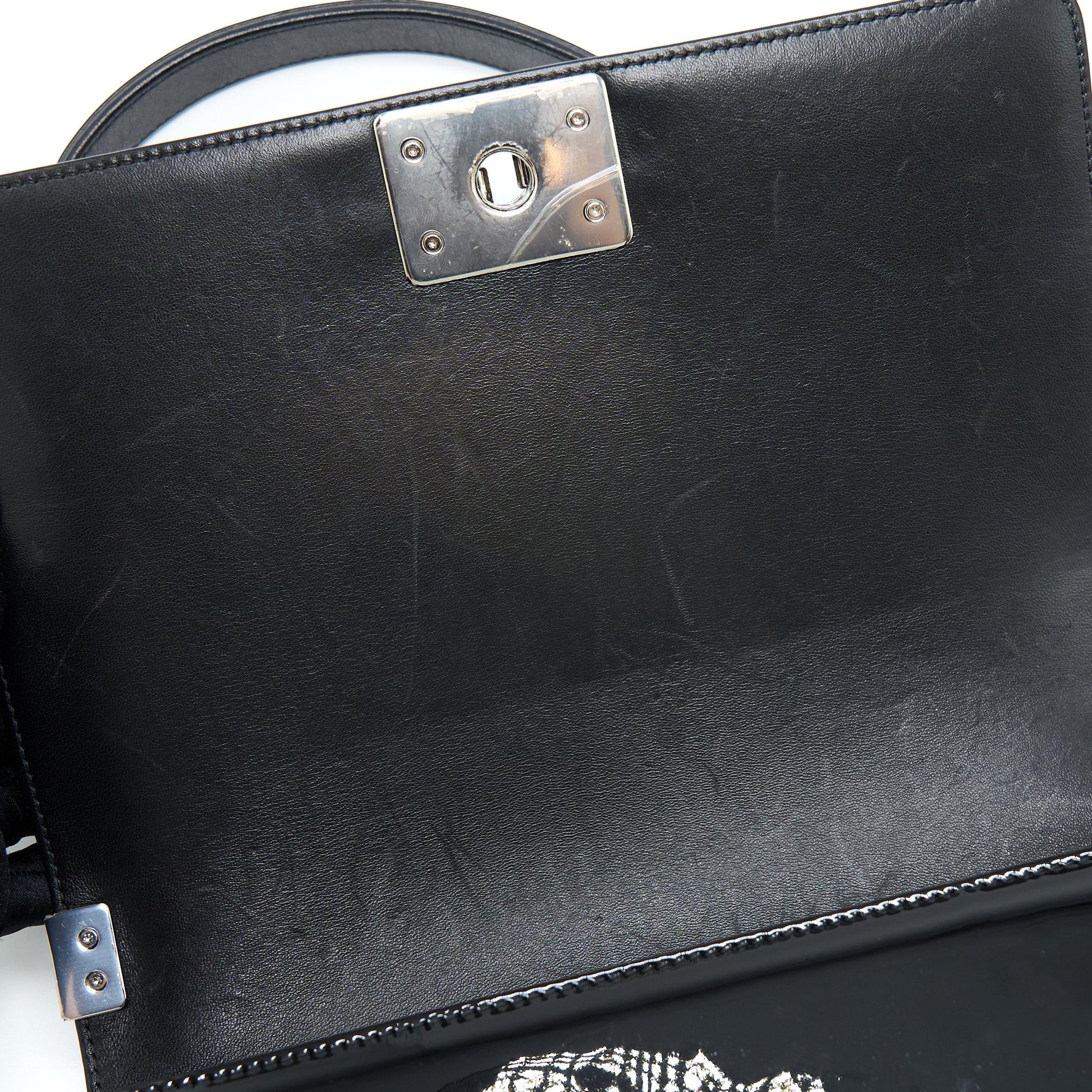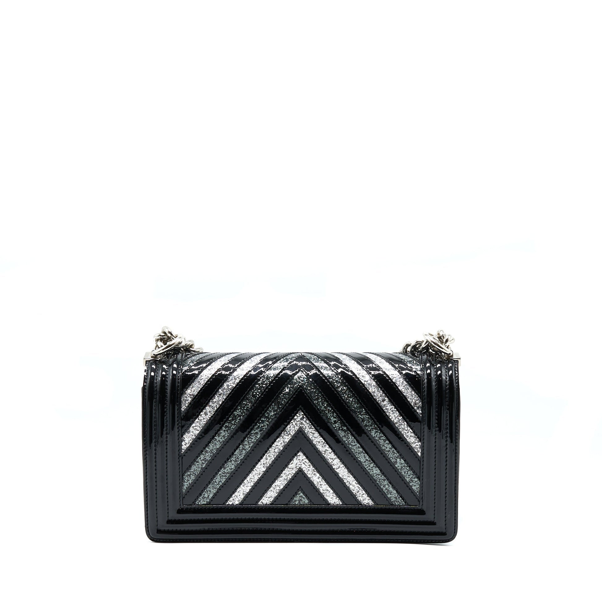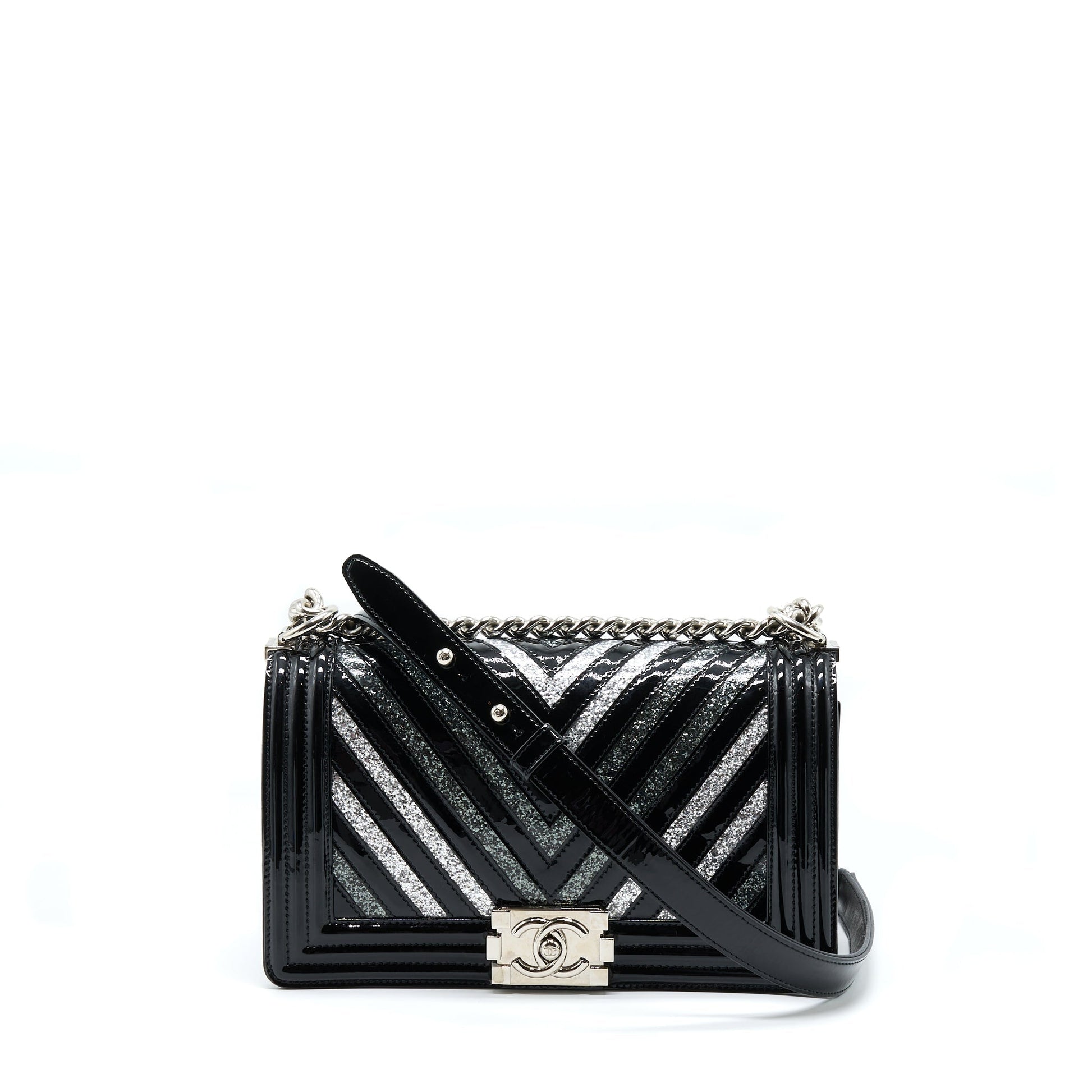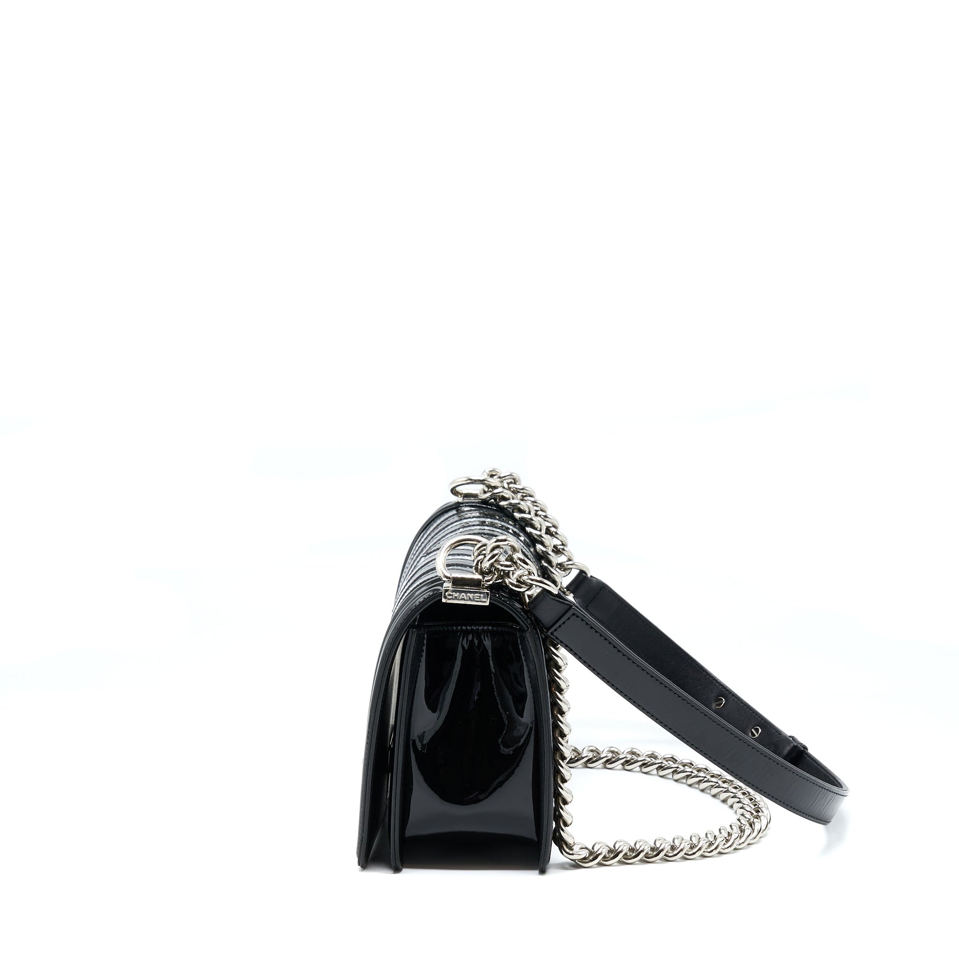 Chanel Medium Boy Bag Chevron Limited Patent Black SHW